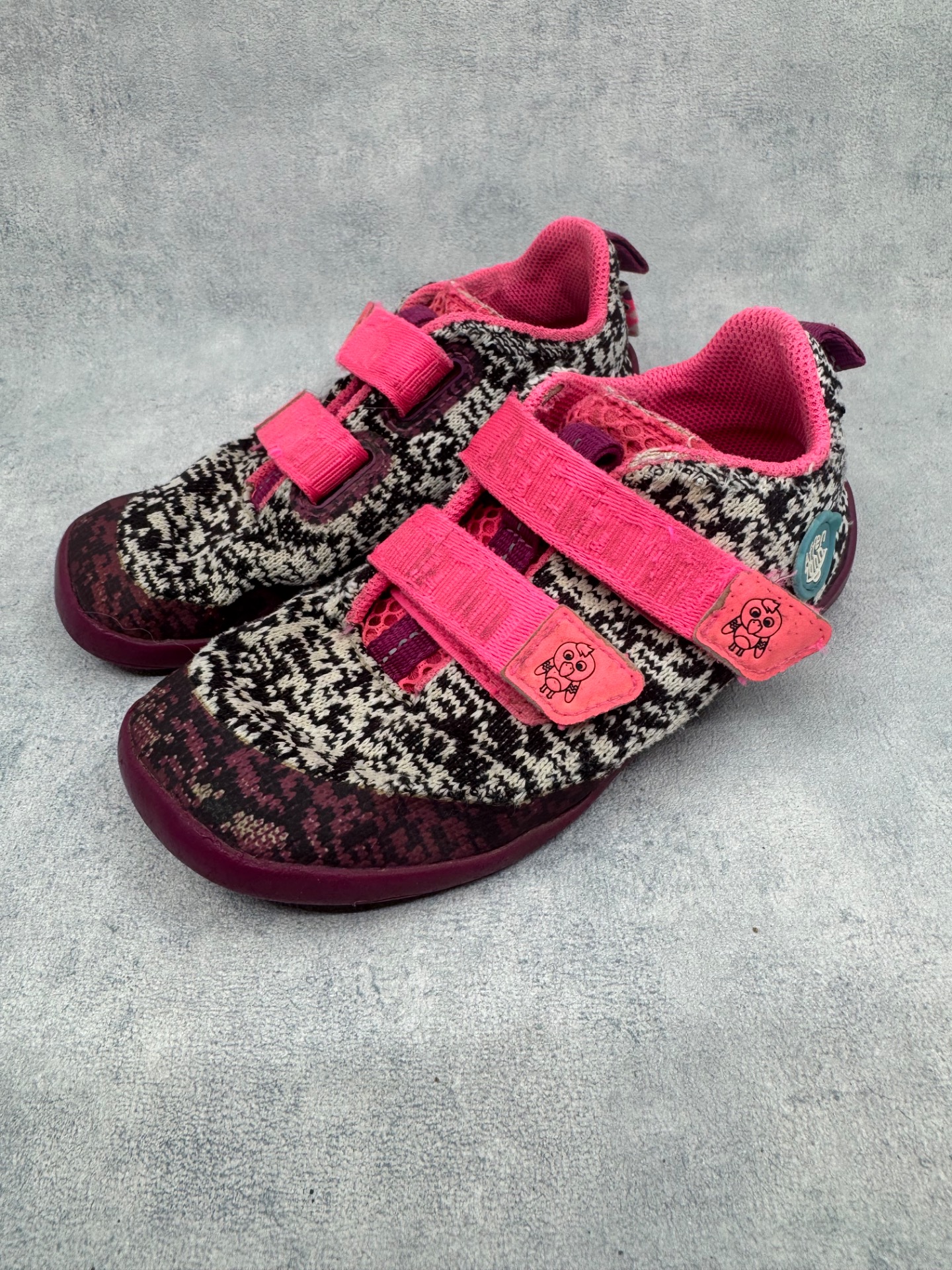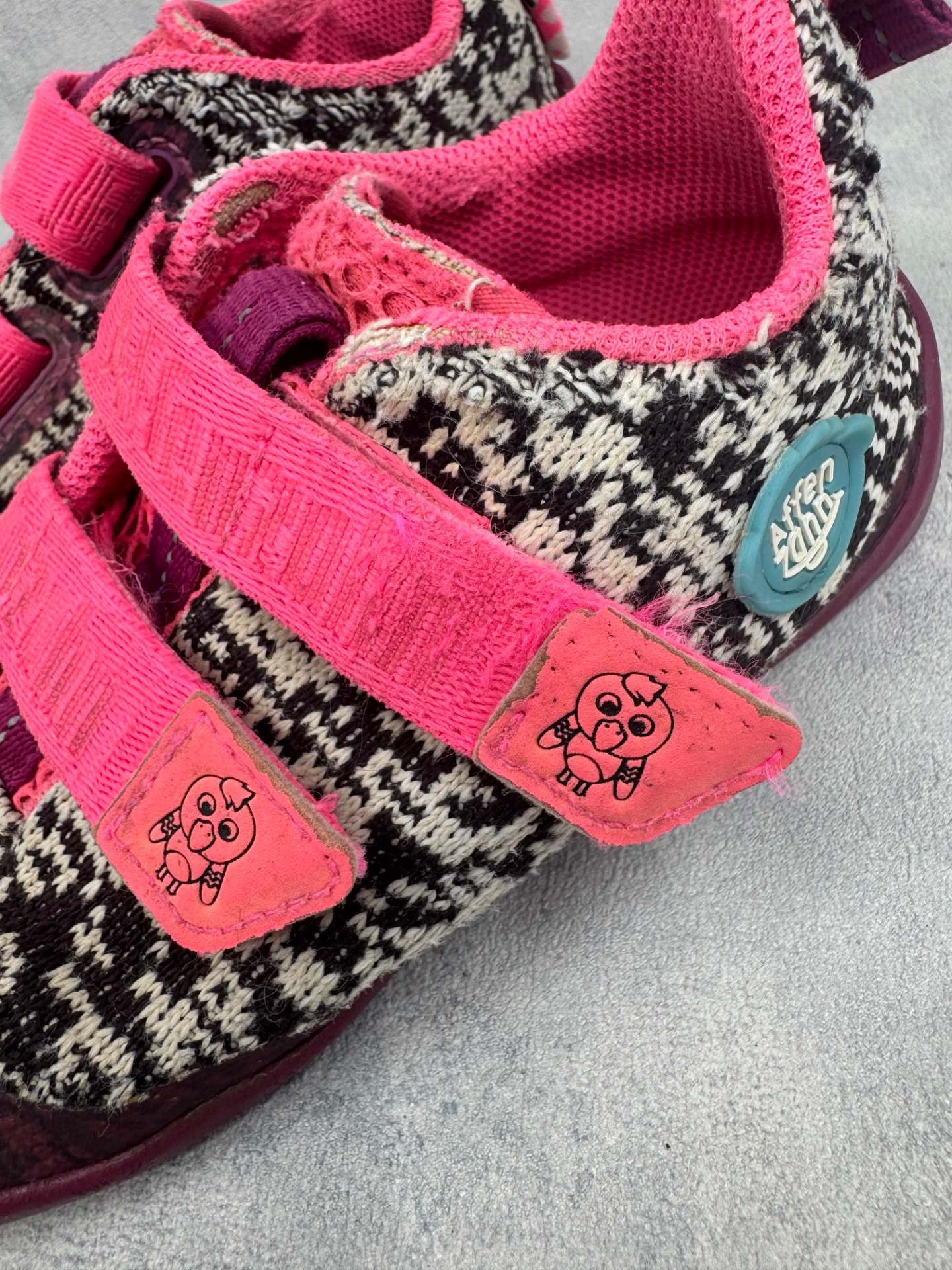Hyväkuntoiset Affenzahnin paljasjalkakengät. Tarrat pitää hyvin. Pientä kulumaa kenkien sekä pohjissa. Yleisilme kengissä erittäin siisti. Todella joustava pohja.