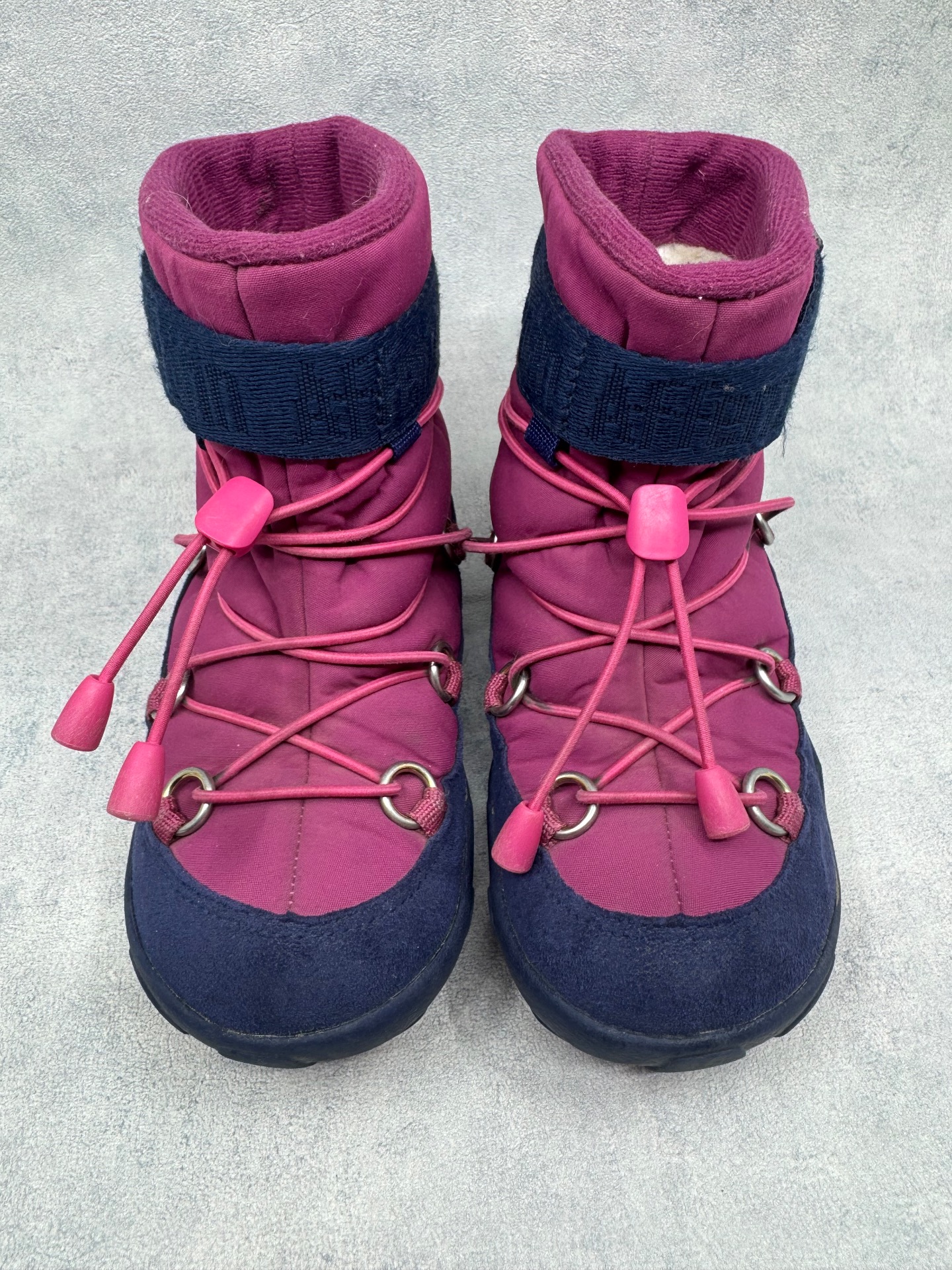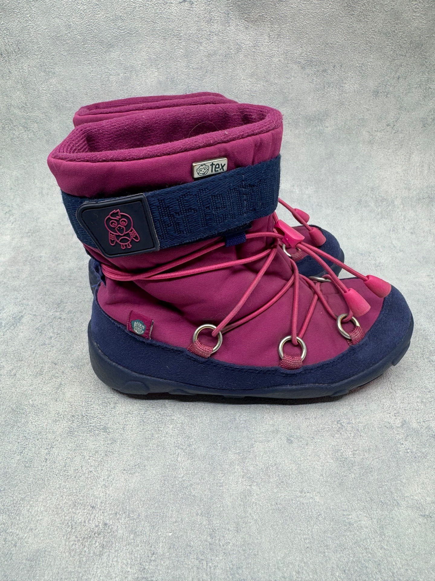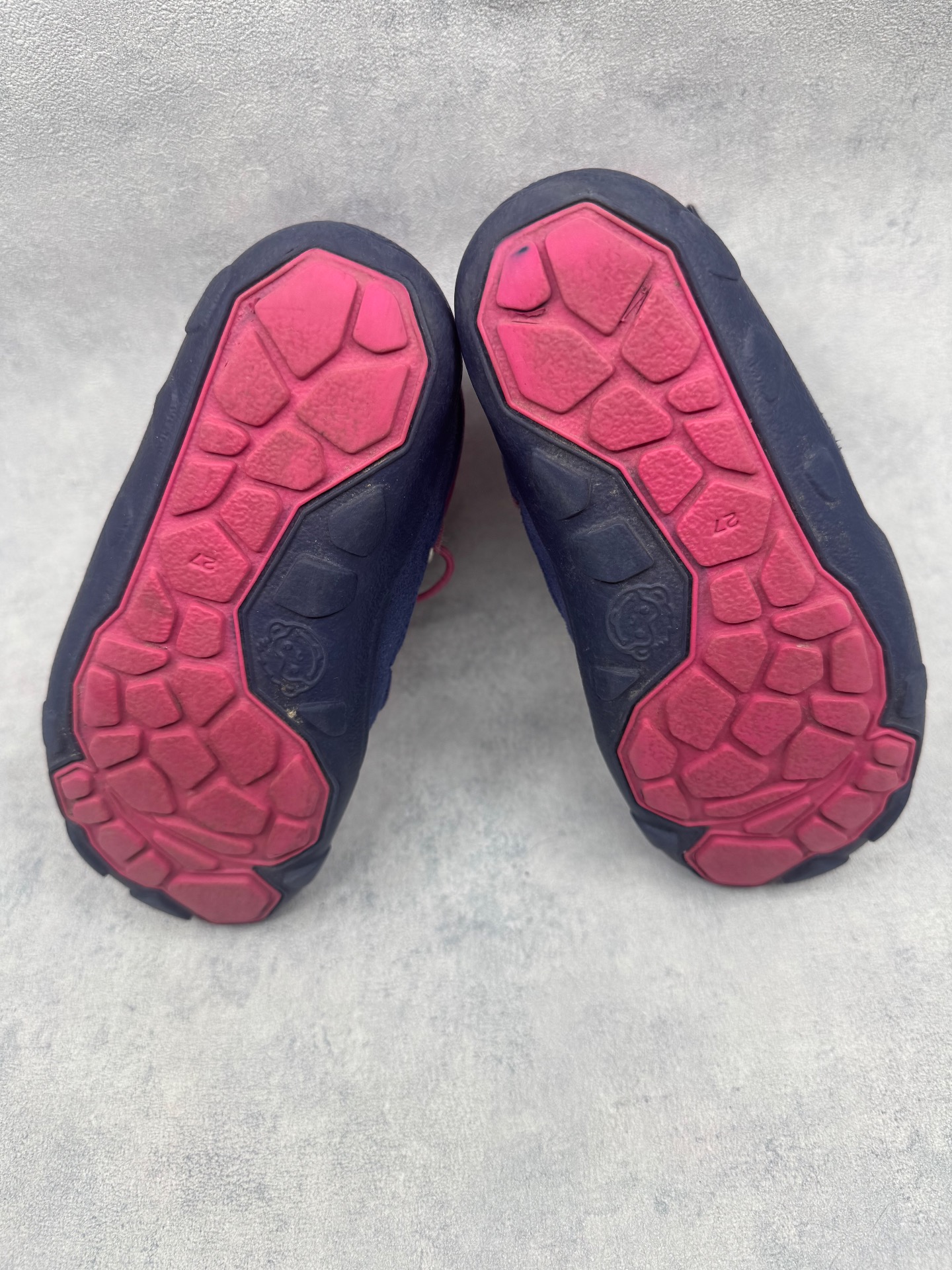 Erittäin hyväkuntoiset Affenzahnin paljasjalkakengät. Sisällä lämmin vuori, hyvässä kunnossa. Aavistus tummentumia pinnassa, yleisilmeeltään erittäin siistit kengät. Tarrat pitää erinomaisesti ja kengät on testattu juoksevan veden alla vedenpitäviksi, pinta on. vettähylkivä. Joustava pohja.