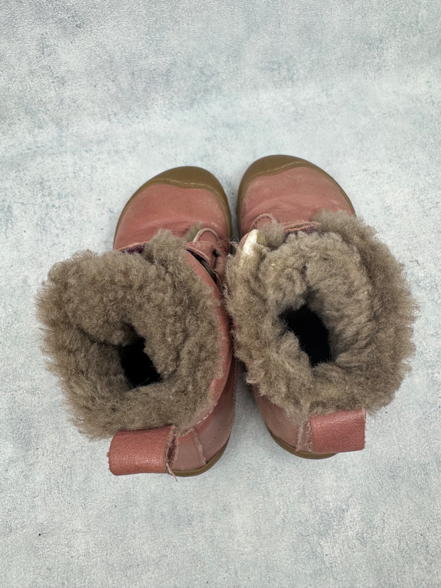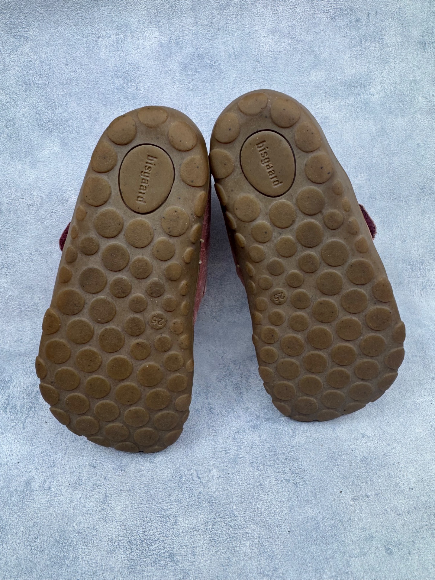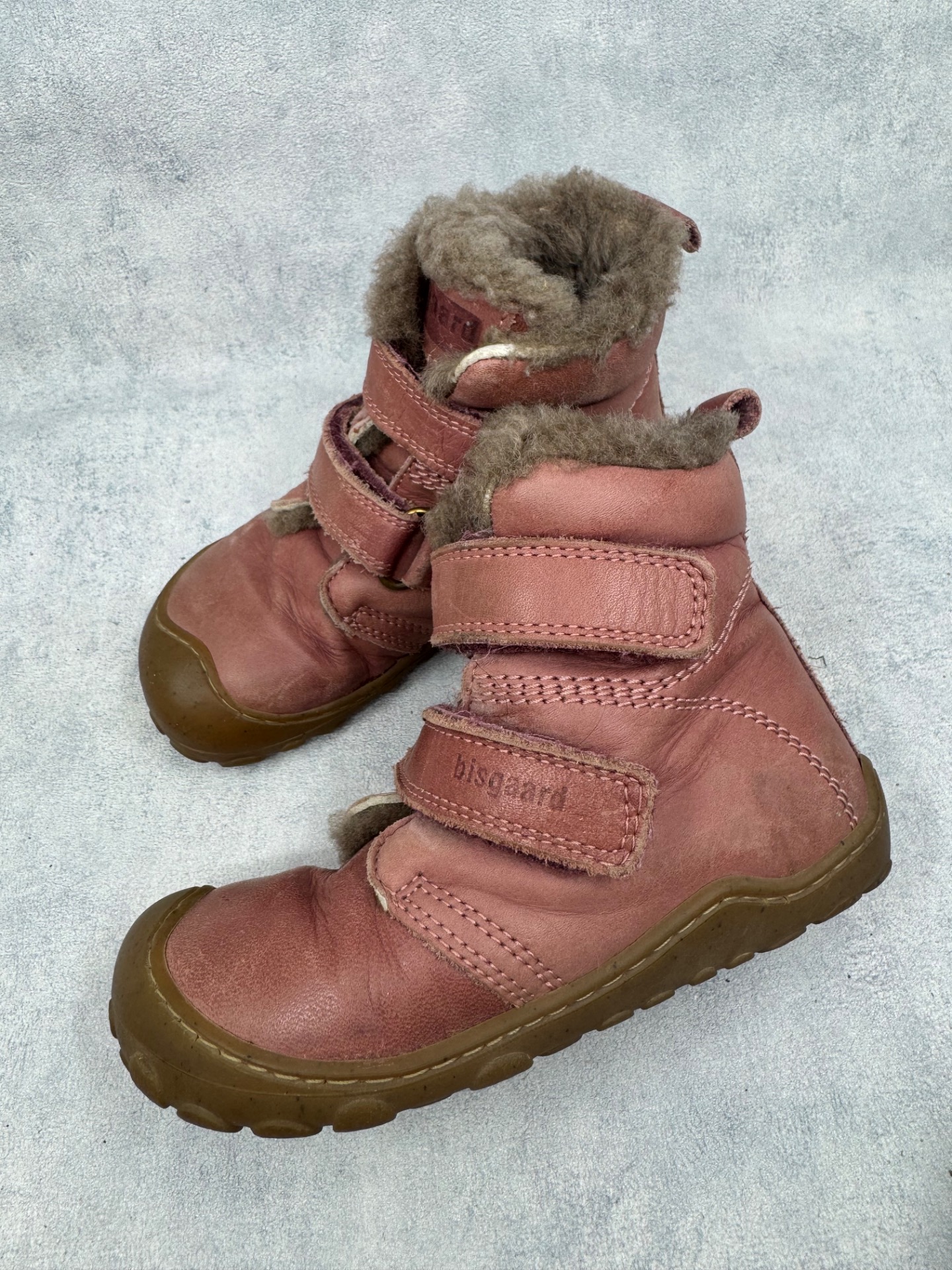 Hyväkuntoiset Bisgaardin paljasjalkakengät. Sisällä ihana, superpehmeä, aito lampaanvillainen vuori. Vuori erinomaisessa kunnossa ja ovat varmasti lämpimät kengät. Pinta nahkaa. Tarrat pitävät erinomaisesti ja vaikkei kengissä ole merkintää vedenpitävyydestä, nahka hylkii luontaisesti vettä erinomaisesti ja kengät onkin testattu vedenpitäviksi juoksevan veden alla. Sisäsyrjissä pientä käytönjälkeä kts. kuva. Joustava pohja.