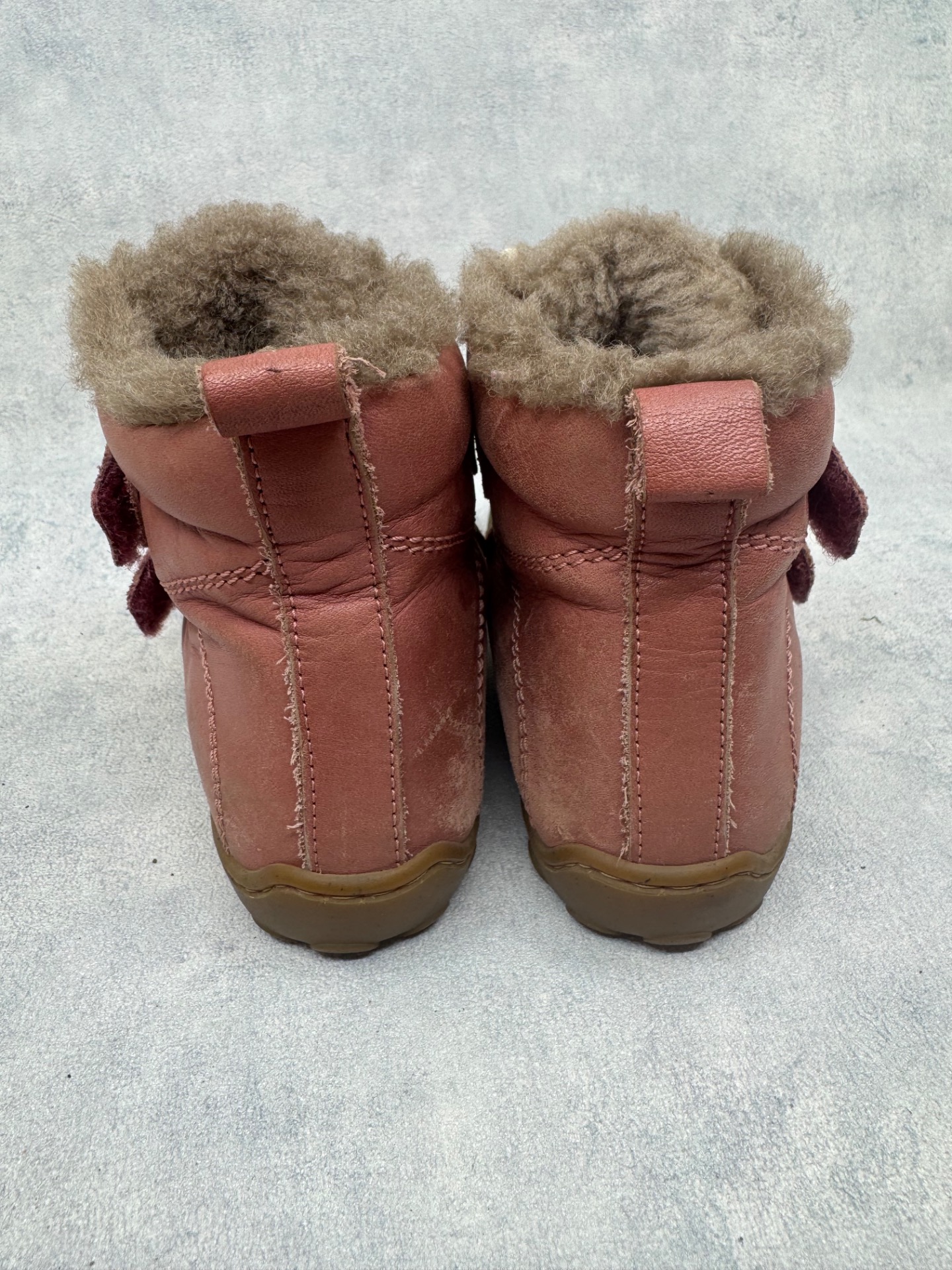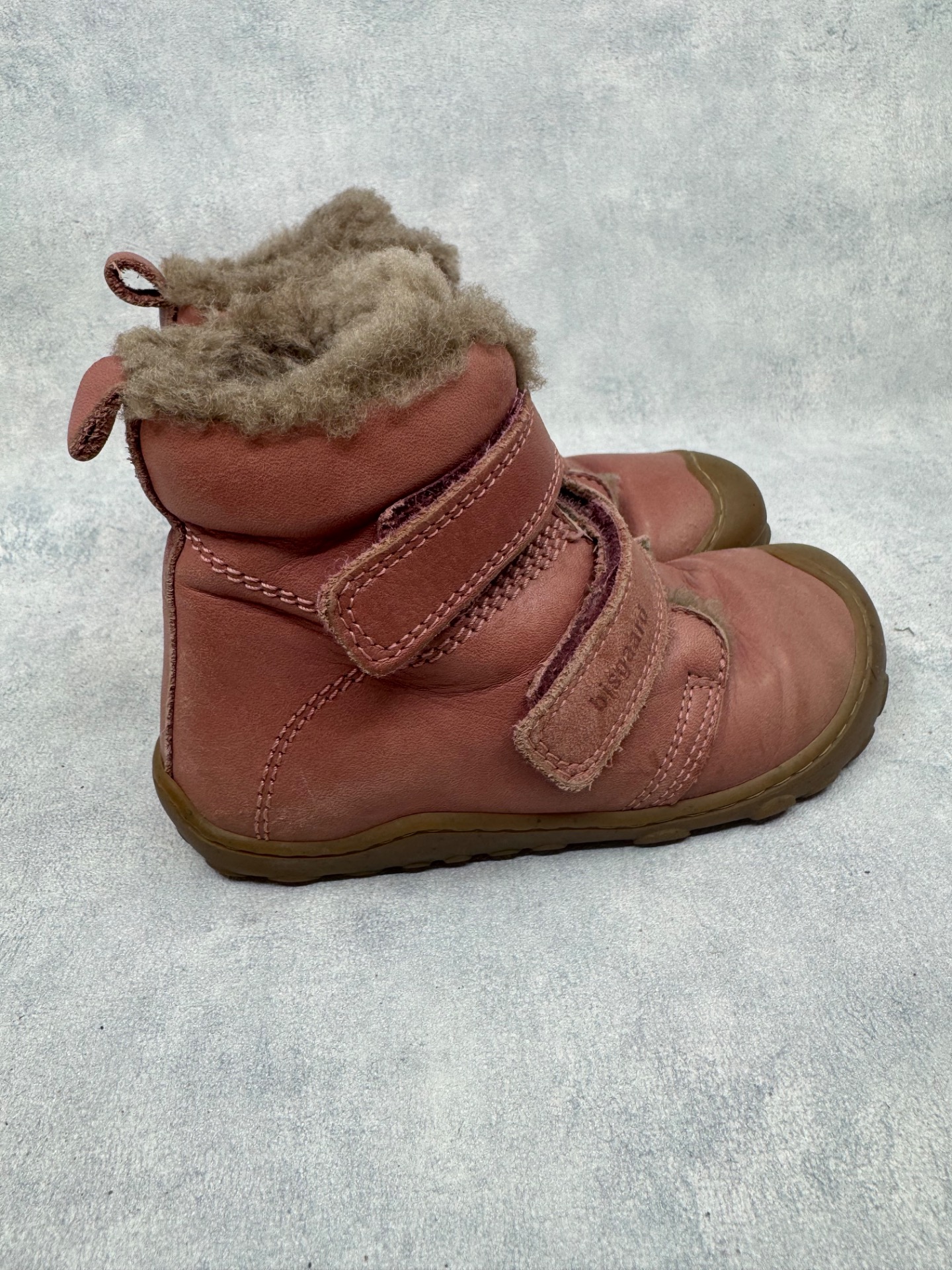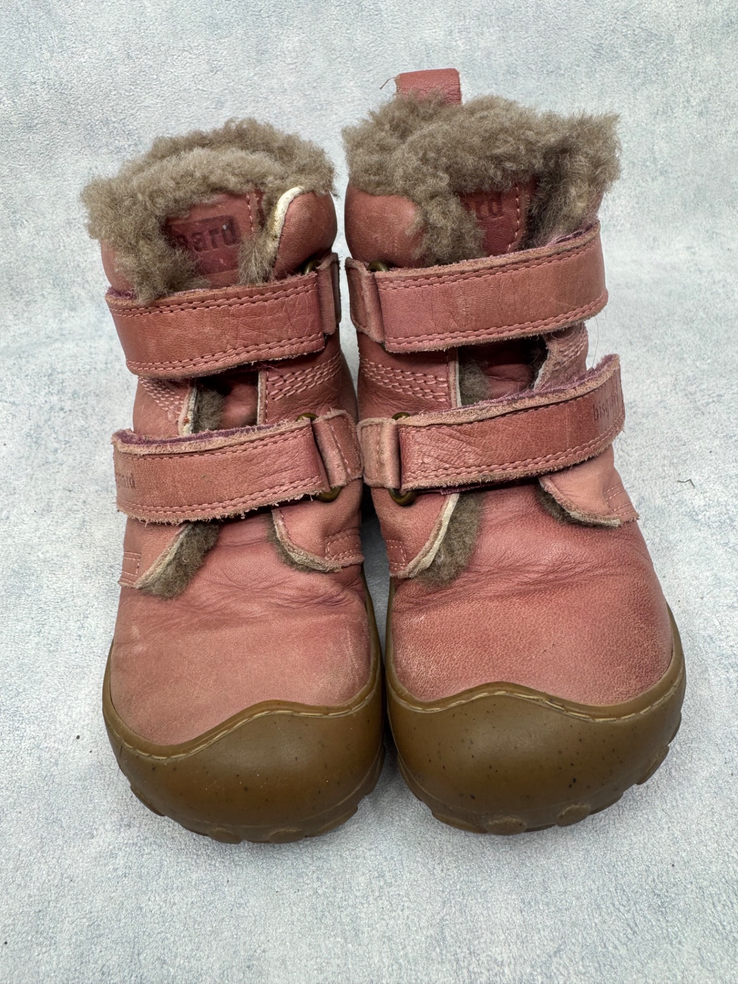 Hyväkuntoiset Bisgaardin paljasjalkakengät. Sisällä ihana, superpehmeä, aito lampaanvillainen vuori. Vuori erinomaisessa kunnossa ja ovat varmasti lämpimät kengät. Pinta nahkaa. Tarrat pitävät erinomaisesti ja vaikkei kengissä ole merkintää vedenpitävyydestä, nahka hylkii luontaisesti vettä erinomaisesti ja kengät onkin testattu vedenpitäviksi juoksevan veden alla. Sisäsyrjissä pientä käytönjälkeä kts. kuva. Joustava pohja.