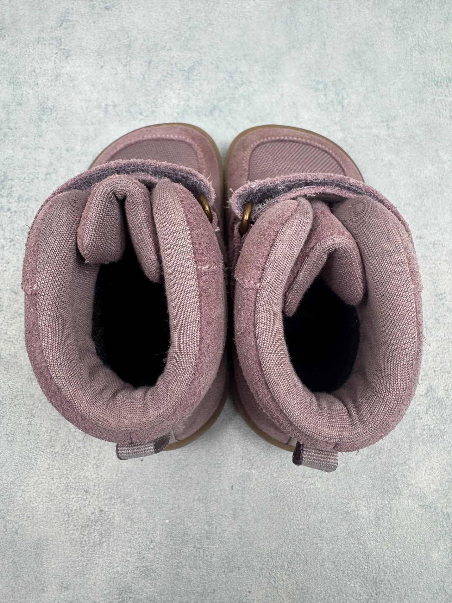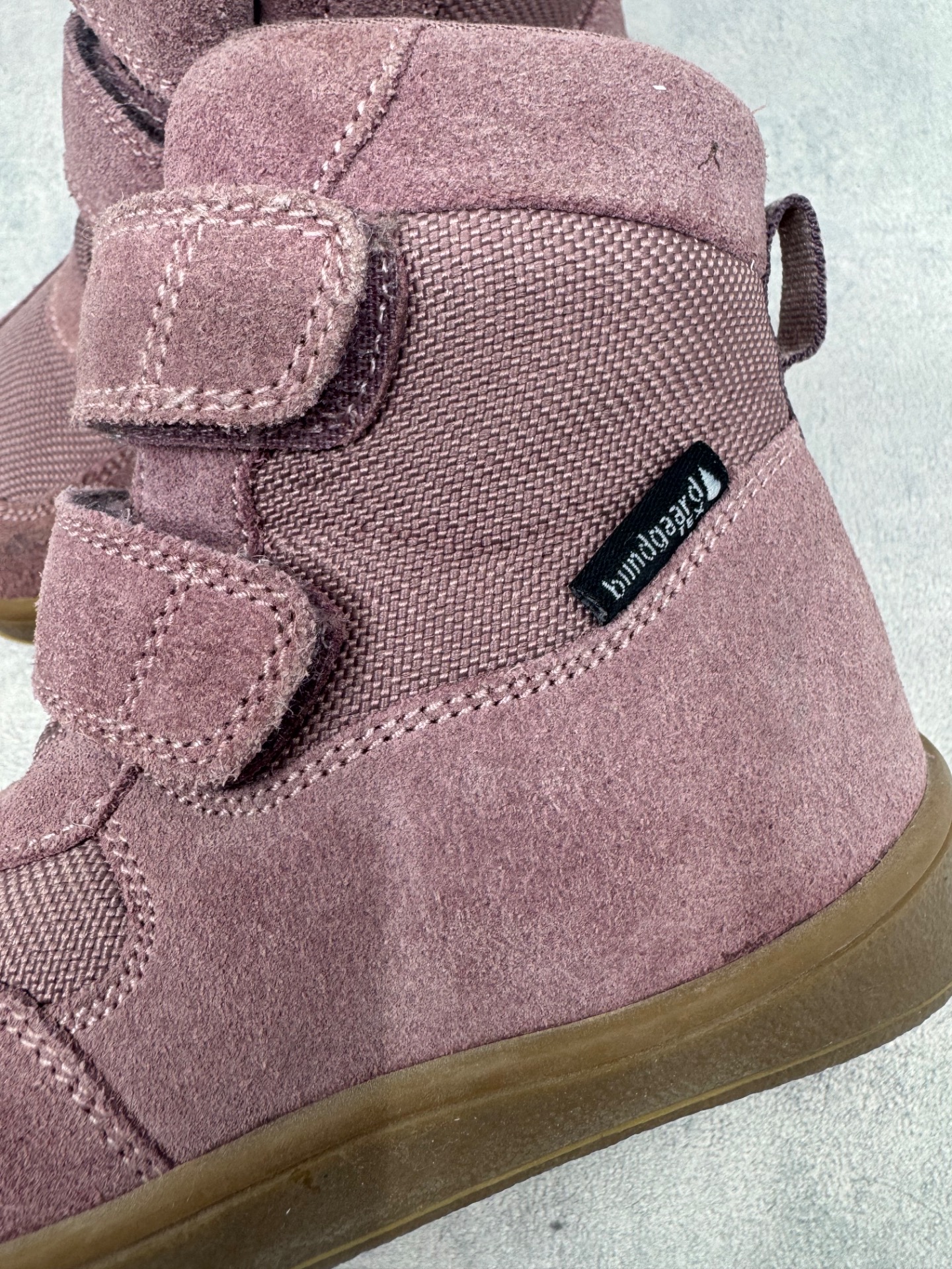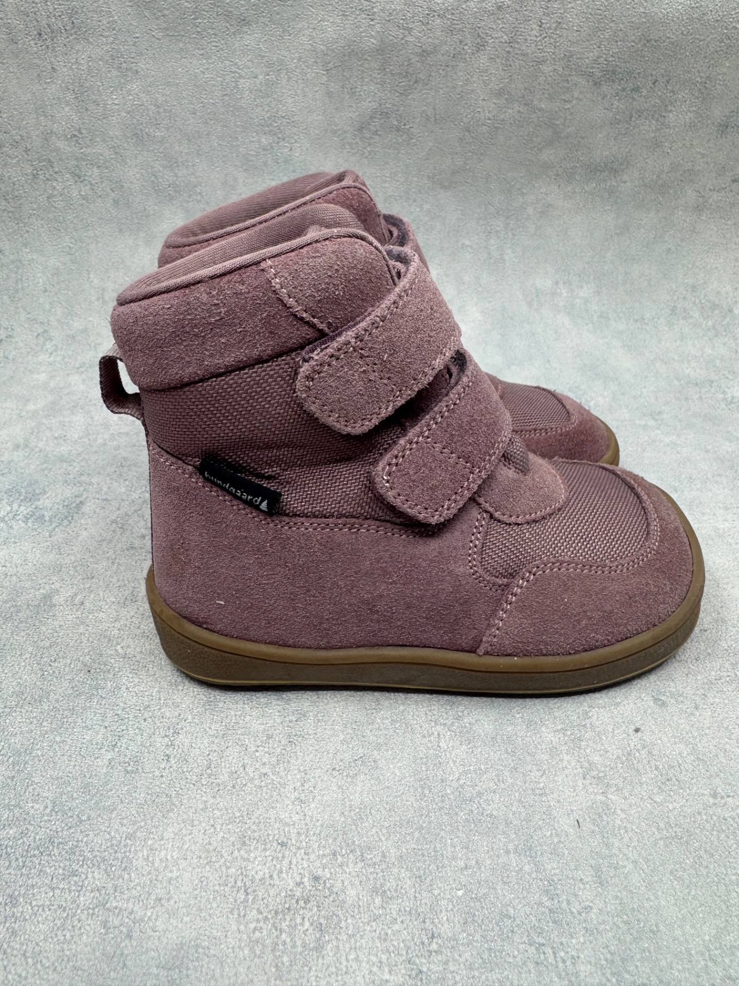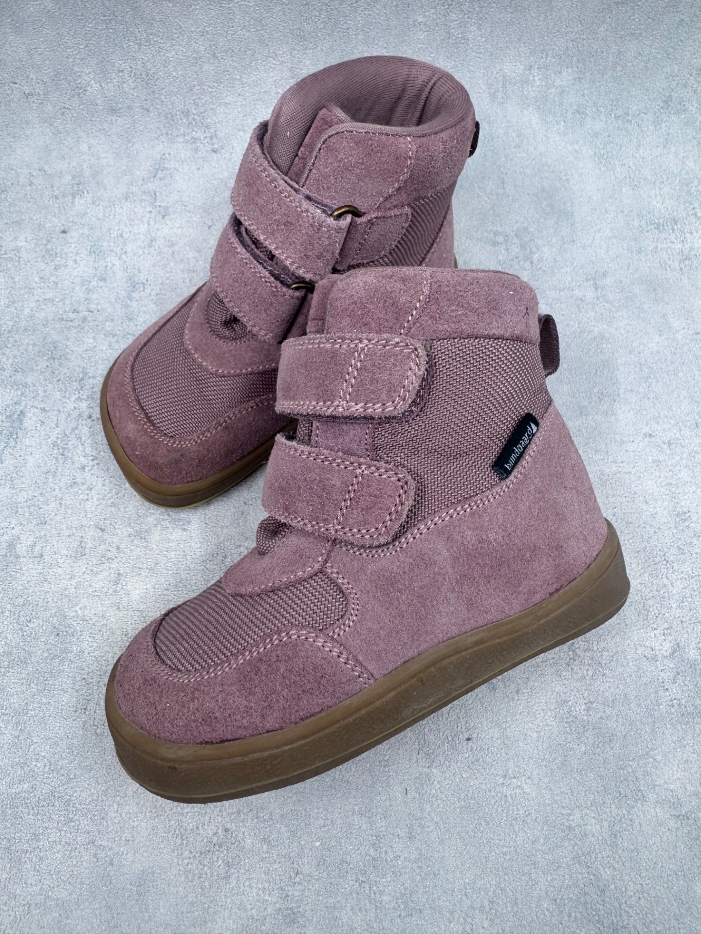 Erittäin hyväkuntoiset, lähes uudenveroiset Bundgaardin paljasjalkakengät. Sisällä ohut vuori, joten kengät sopivat mainiosti niin talven leudoille päiville kuin välikauteen. Kengissä ei ole kulumaa, tarrat pitävät erinomaisesti ja vedenpitävä Tex kalvo pitää pienet jalat kuivina, kengät on testattu vedenpitäviksi juoksevan veden alla. Joustava pohja. Kengissä on erilliset villapohjalliset