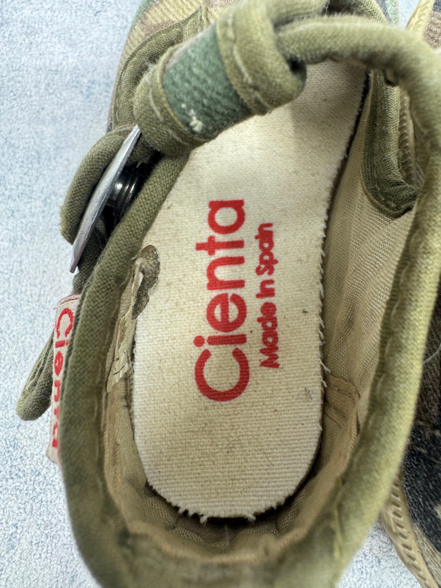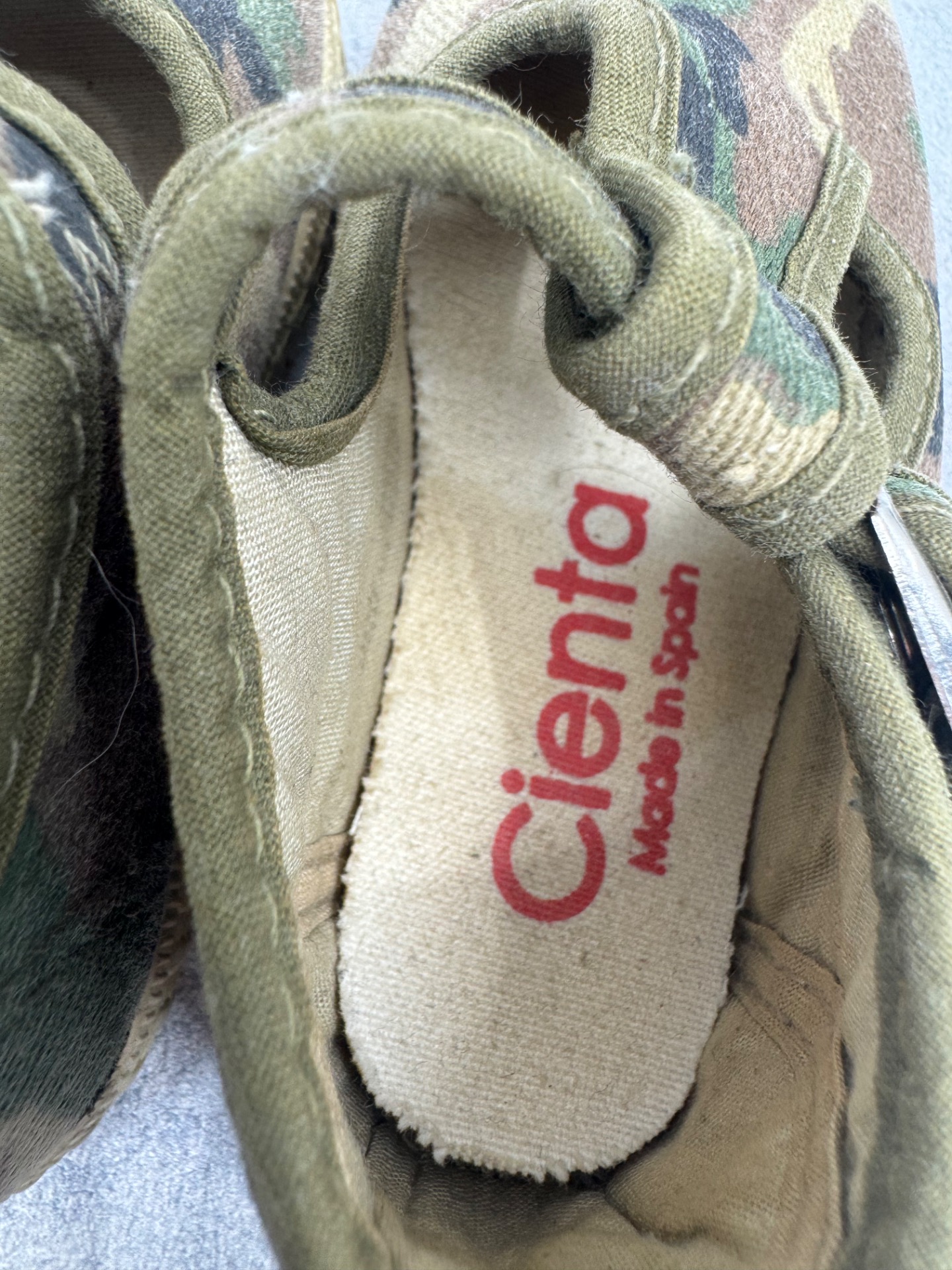 Hyväkuntoiset Cientan kangaskengät. Kulumaa