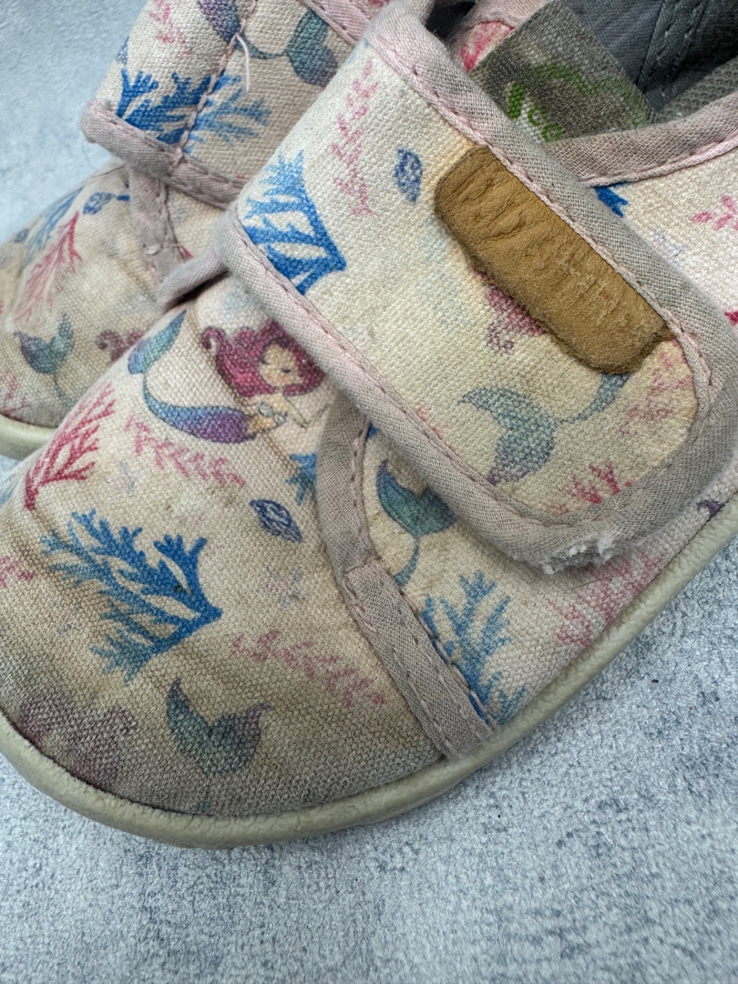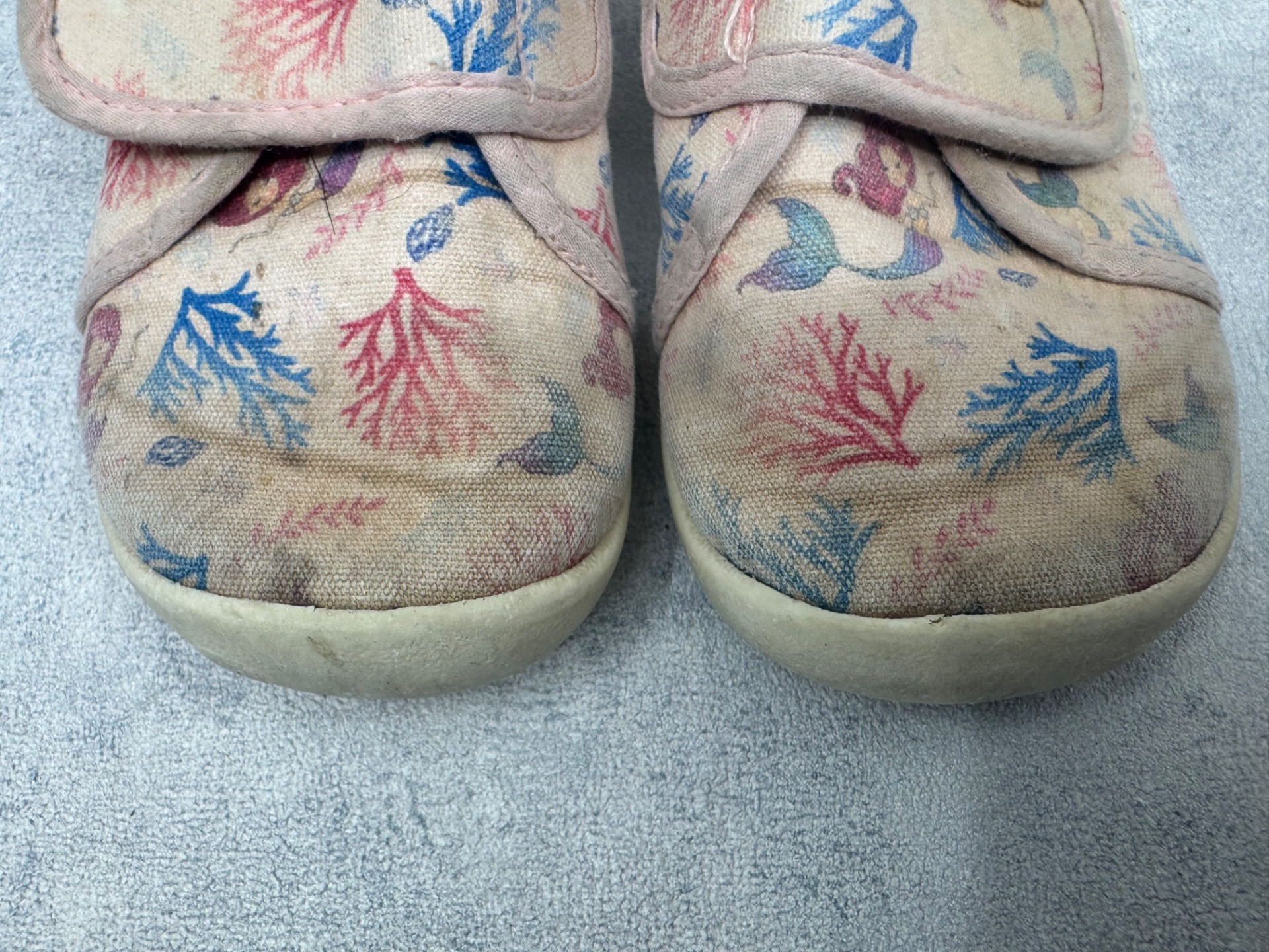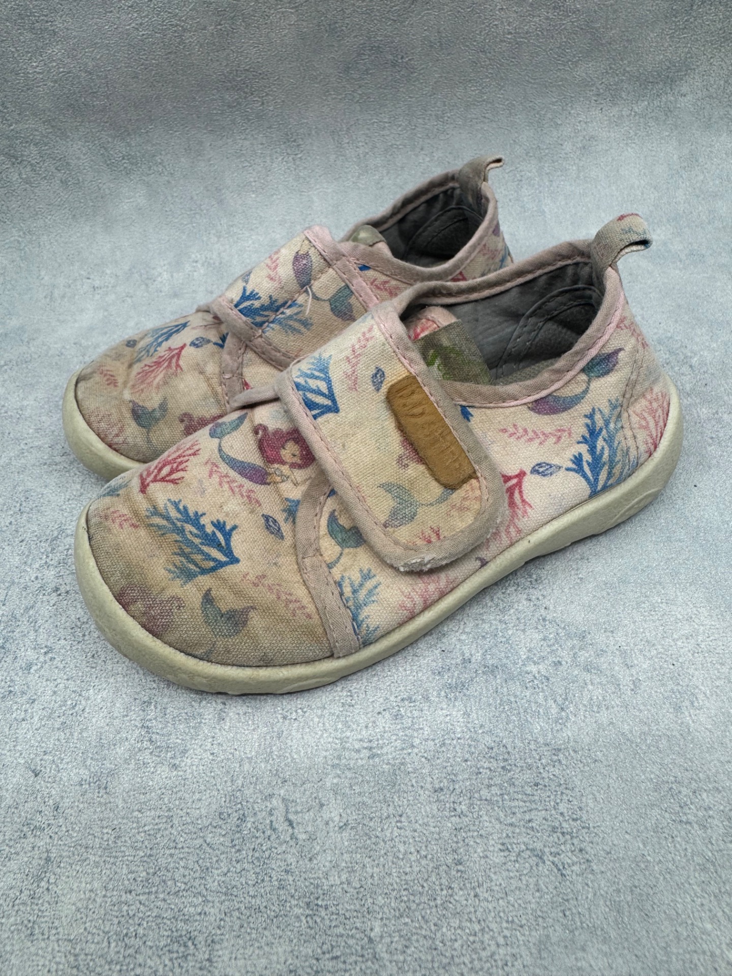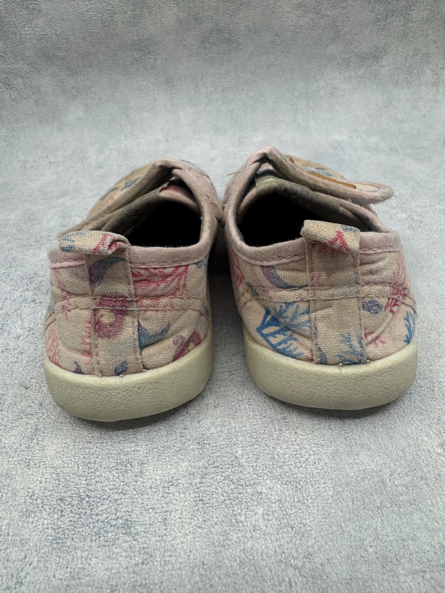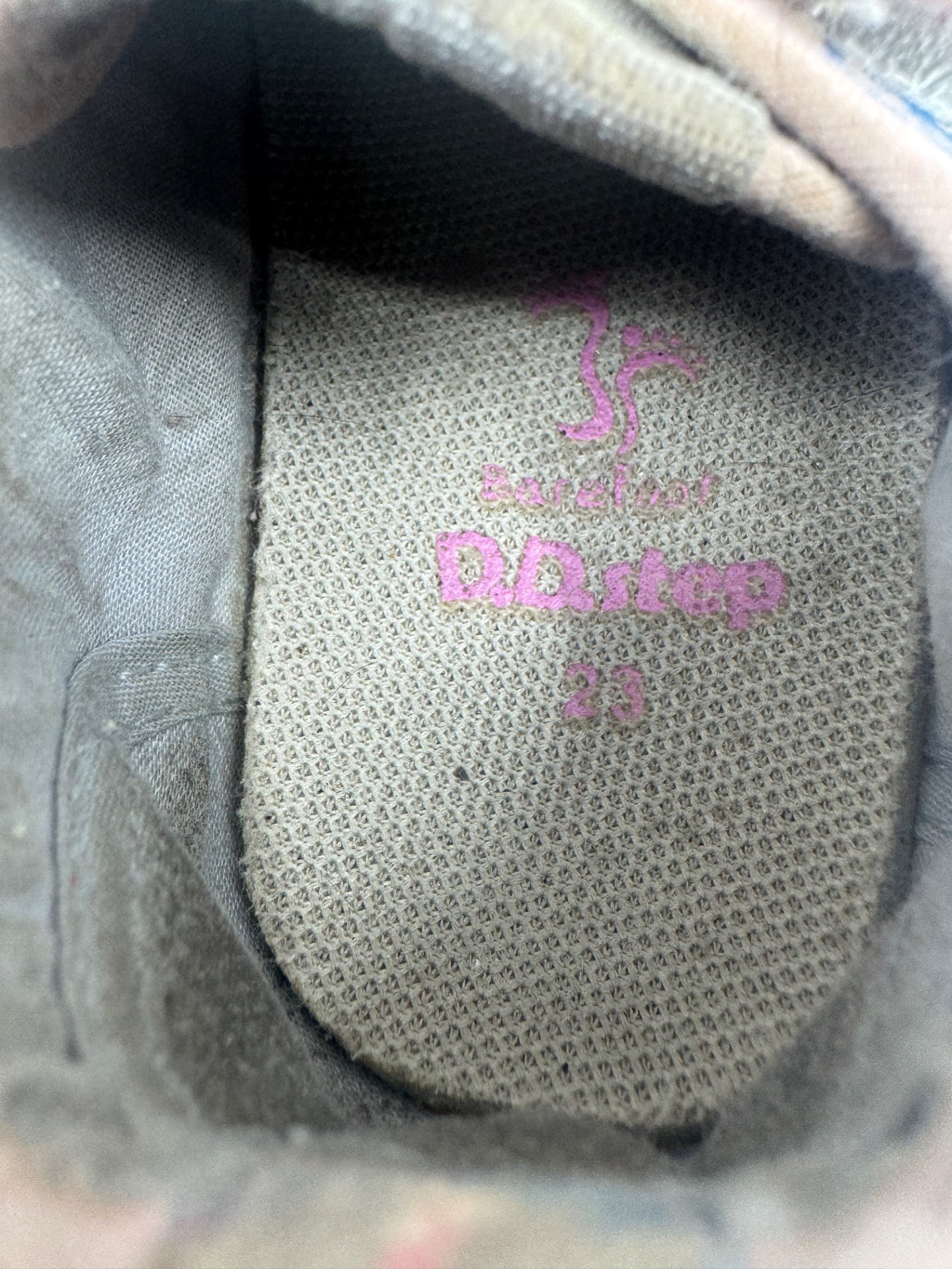Hyväkuntoiset D.D Step kangaskengät/paljasjalkakengät. Aavistus tummentumaa kenkien päällä, sekä pohjissa kulumsa kantapäiden kohdalla. Yleisilmeeltään kengät ovat oikein siistit ja tarrat pitää erinomaisesti. Kevyet, mukavat kengät joustavalla pohjalla.