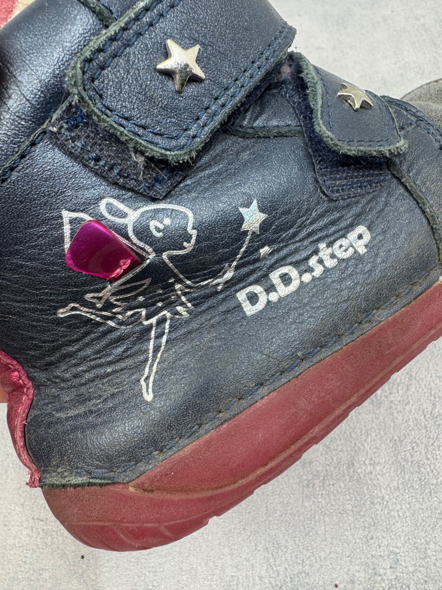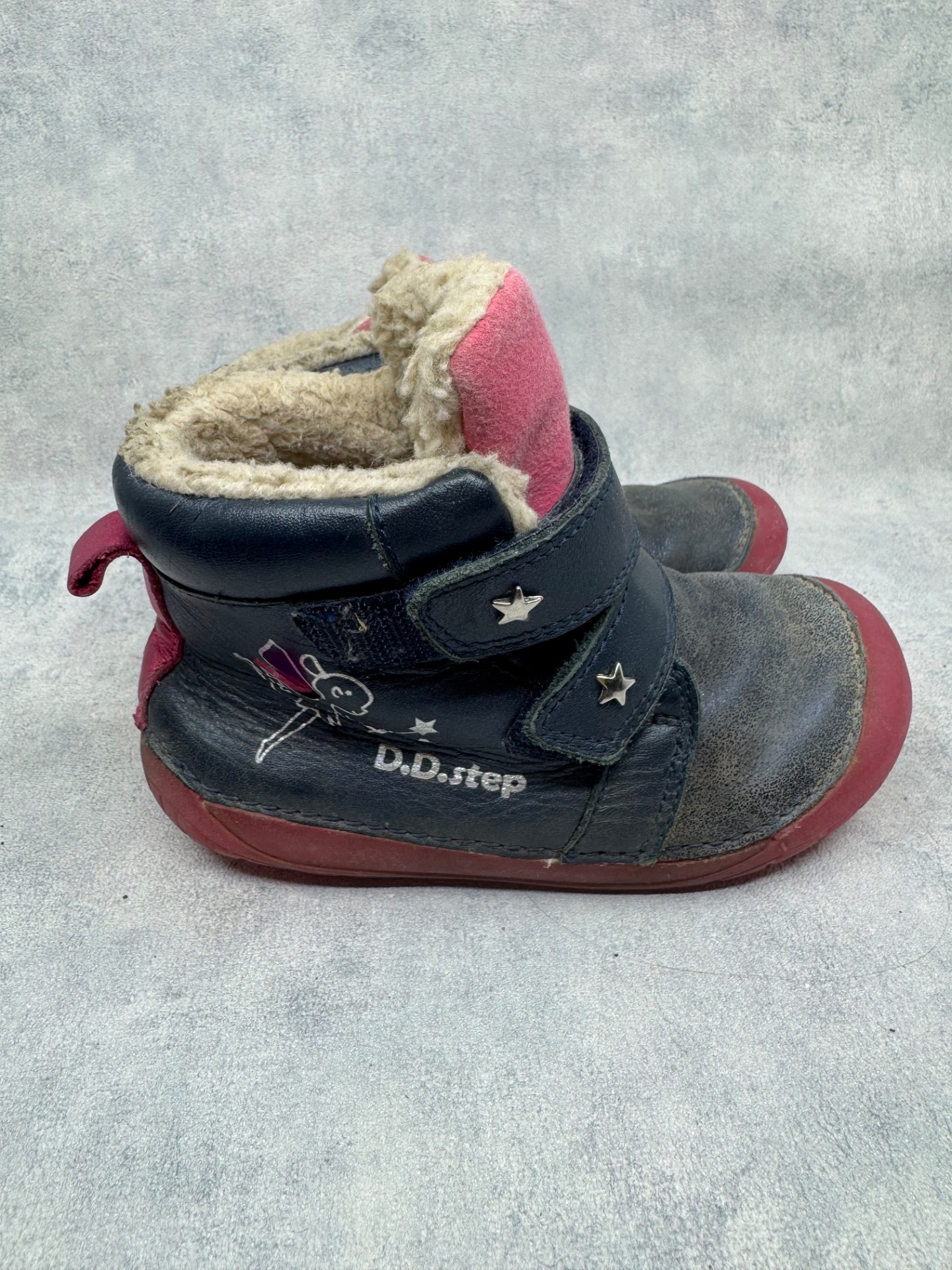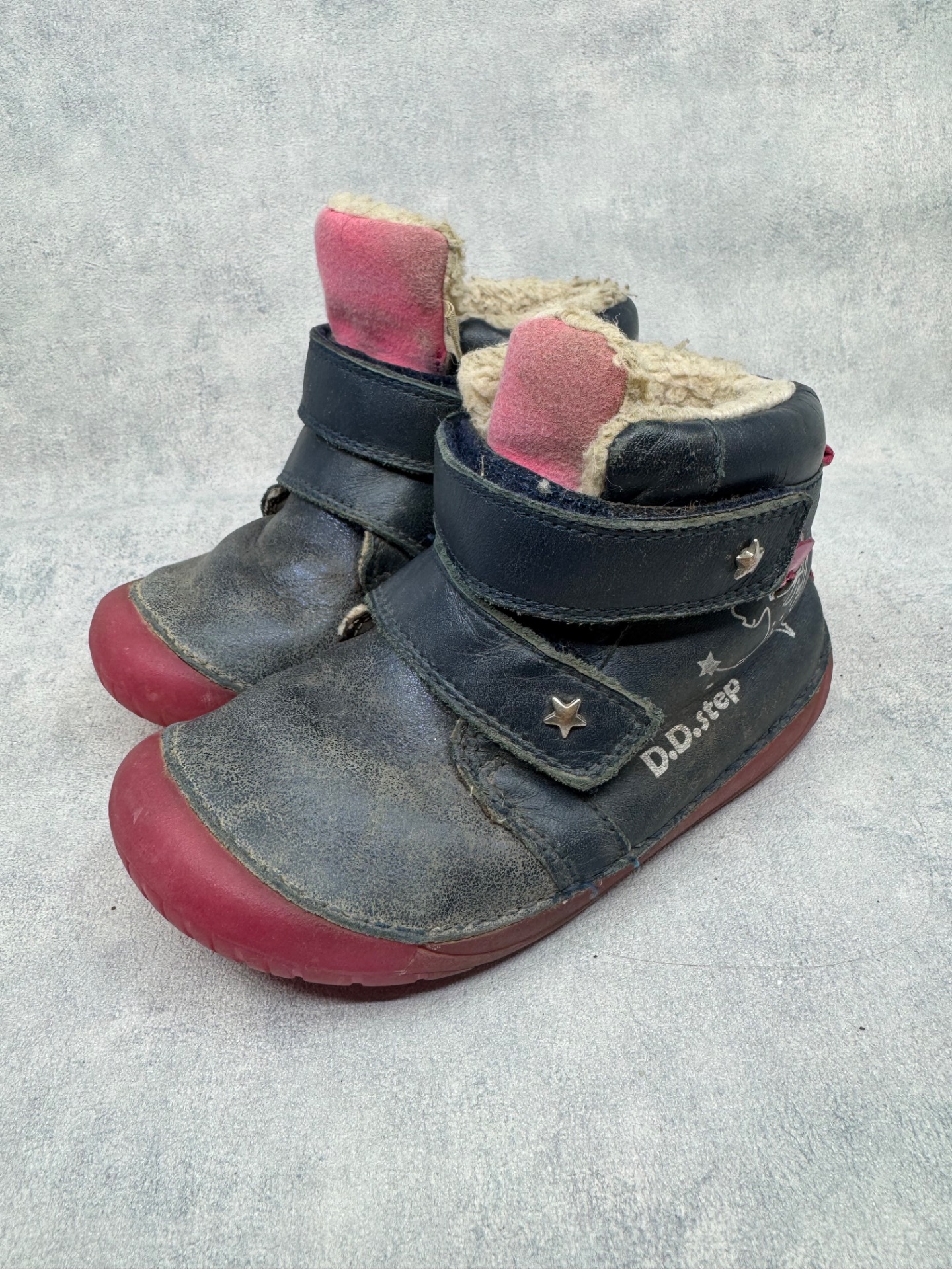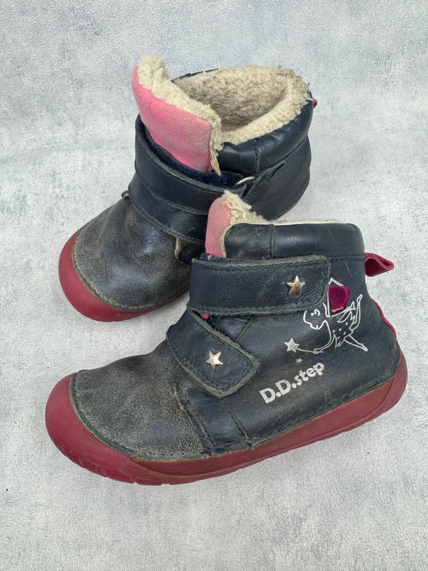 Hyväkuntoiset D.D Step paljasjalkakengät. Pinta nahkaa, kärjissä haalistumaa. Sisällä lämmin vuori, uudesta painunut mutta siisti. Tarrat pitää erinomaisesti ja vaikka kengissä ei ole merkintää vedenpitävyydestä, nahka hylkii luontaisesti vettä erinomaisesti ja kengät onkin testattu vedenpitäviksi juoksevan veden alla. Joustava pohja.