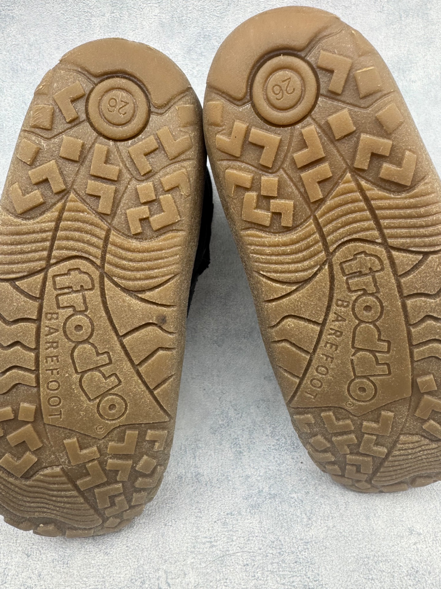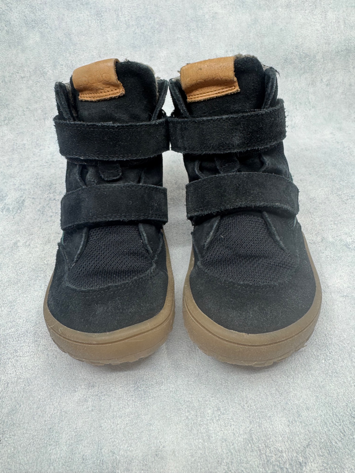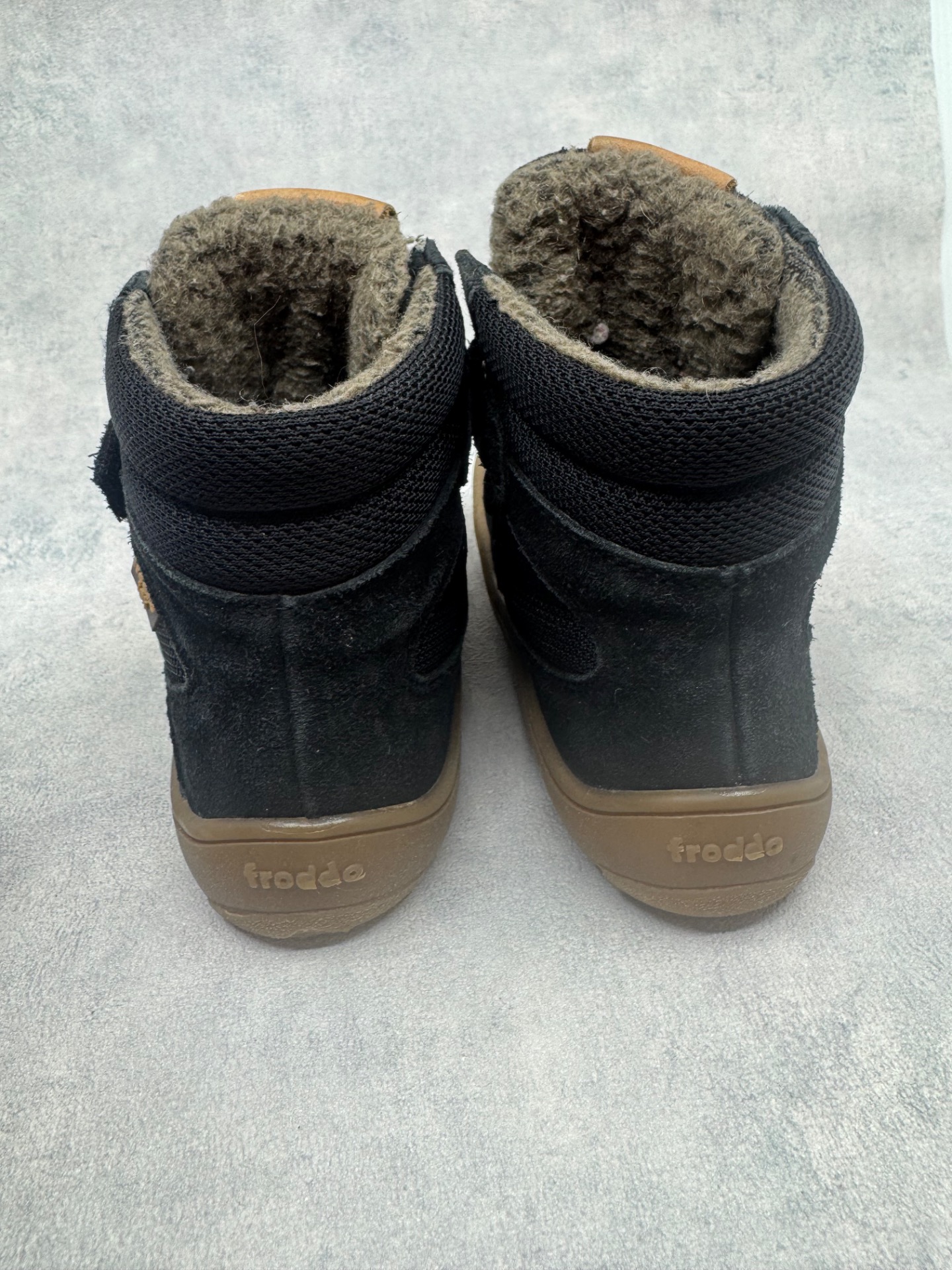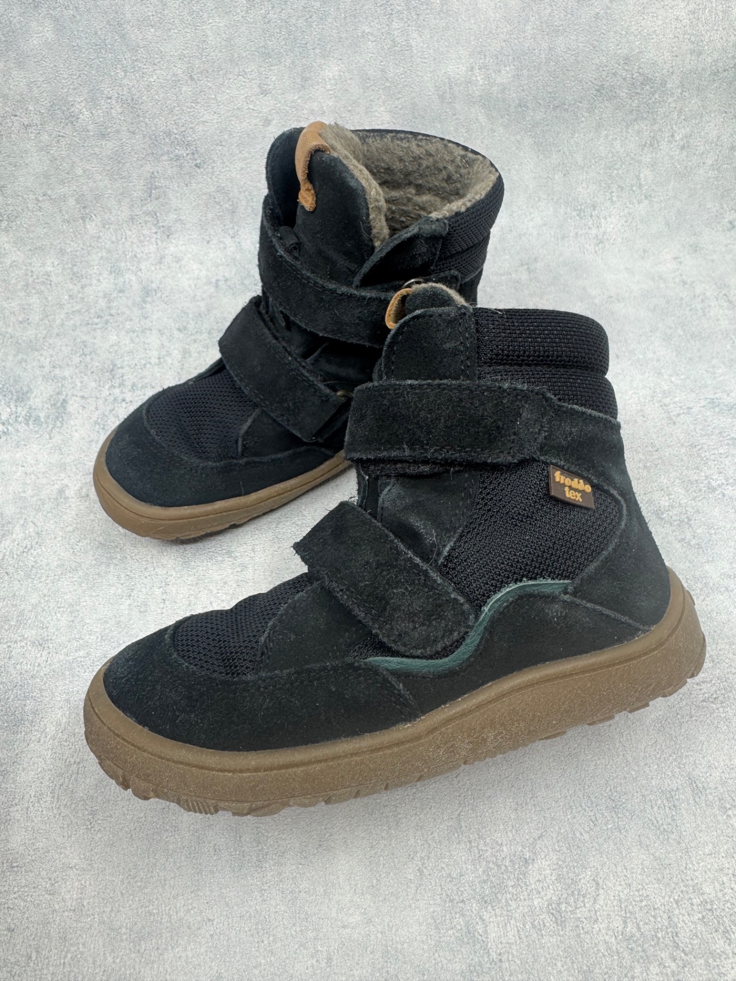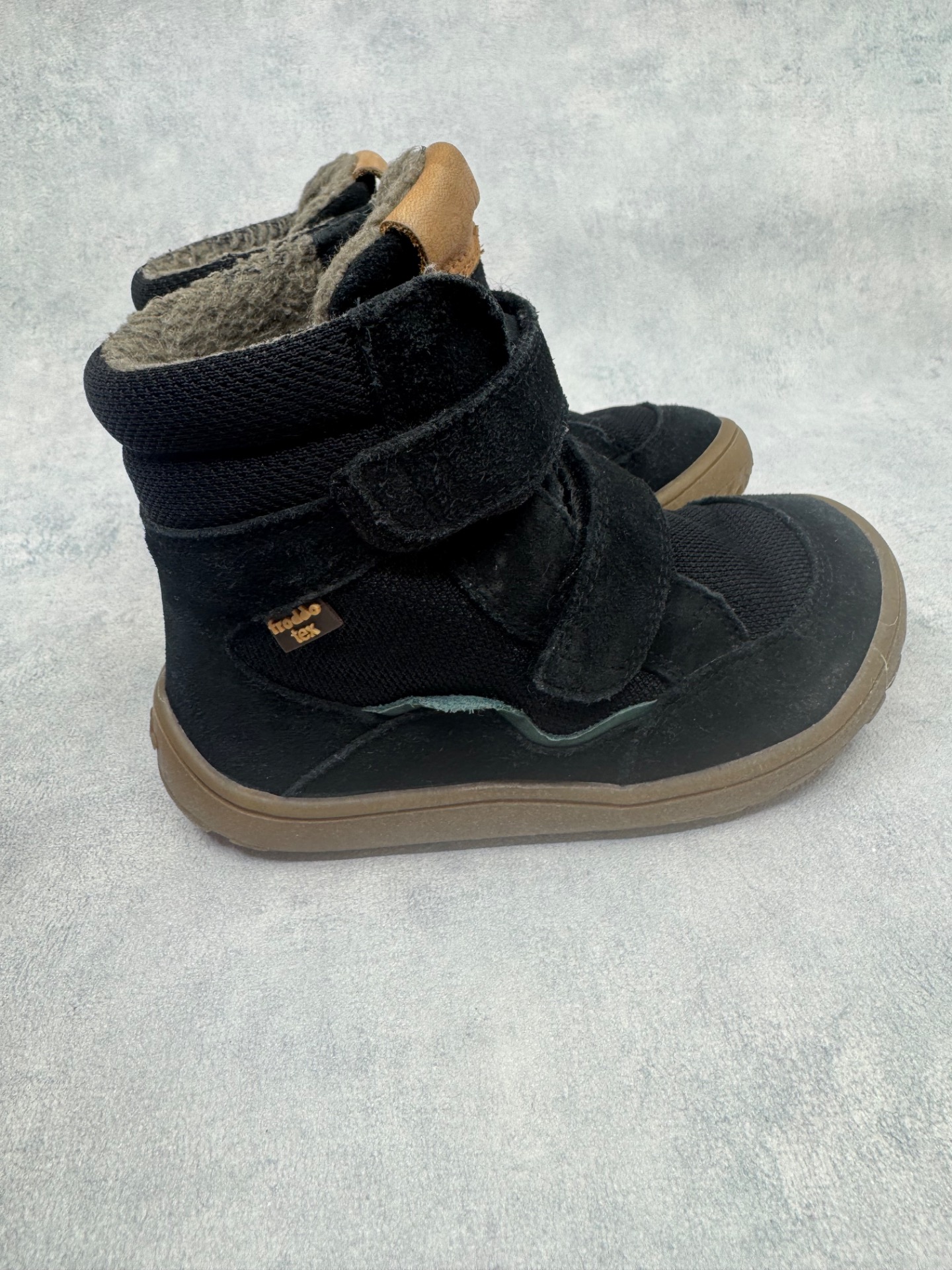 Erittäin hyväkuntoiset Froddon paljasjalkakengät. Sisällä ohut vuori, joten kengät sopivat mainiosti niin leutoihin talvipäiviin kuin välikauteenkin. Tarrat pitävät erinomaisesti ja kengät on testattu vedenpitäviksi juoksevan veden alla. Todella joustava pohja.