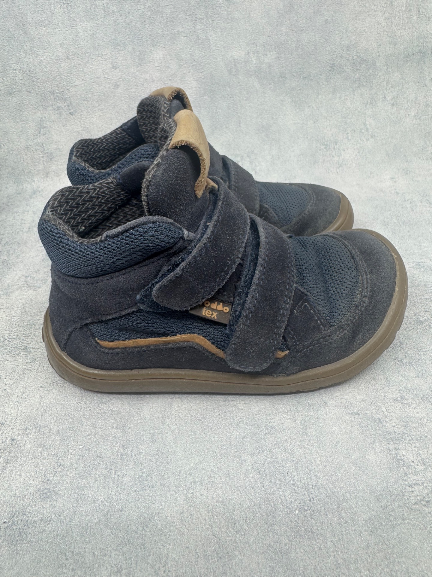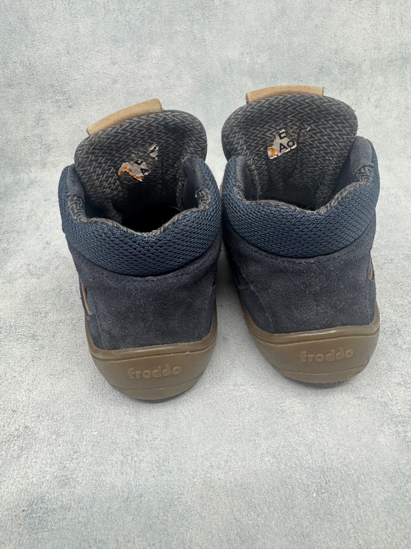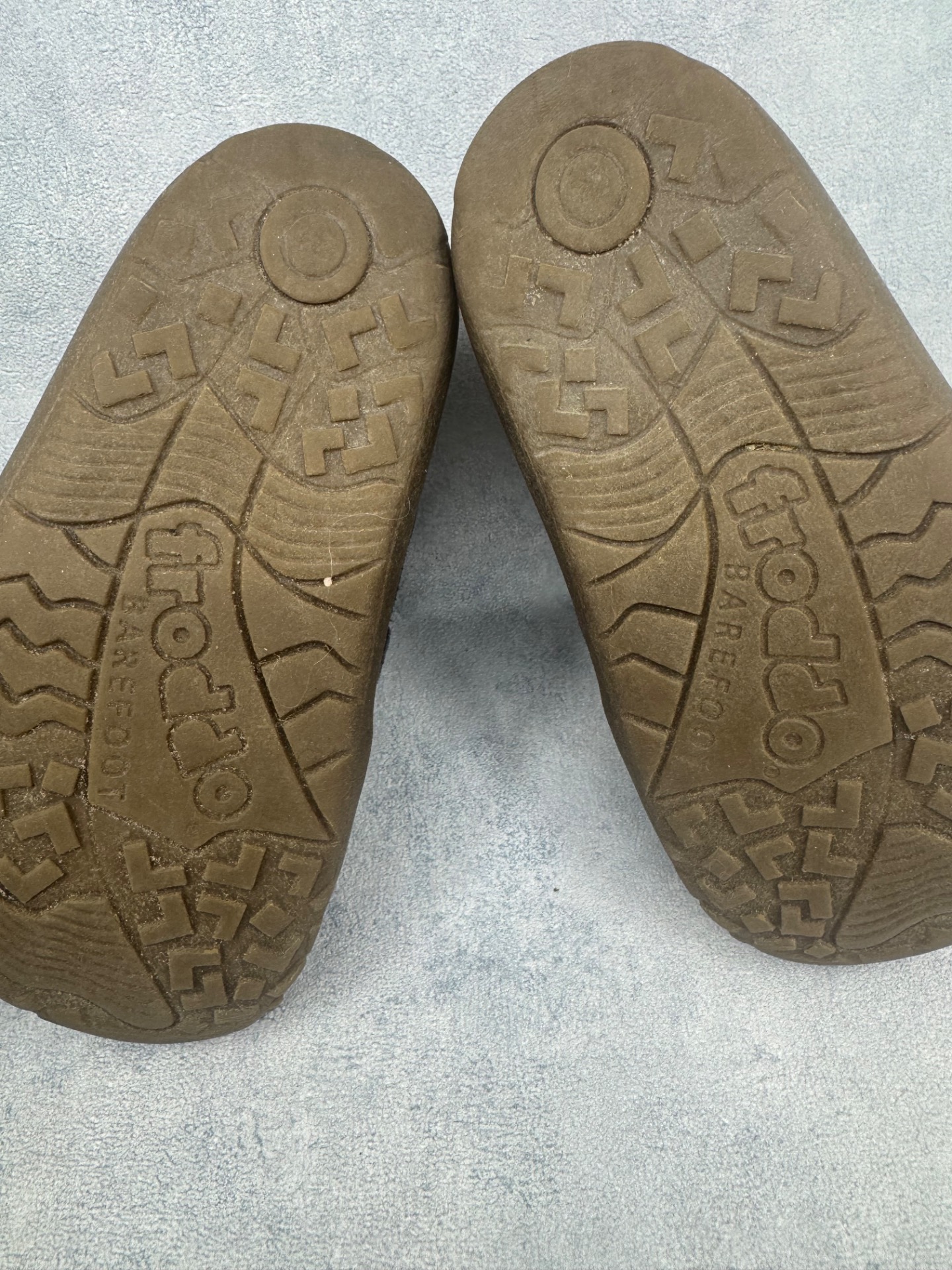 Hyväkuntoiset Froddon paljasjalkakengät. Kauttaaltaan jo käytössä haalistuneet, mutta yleisilmeeltään siistit, tarrat pitää hyvin ja kengät on testattu vedenpitäviksi juoksevan veden alla. Joustava pohja.
