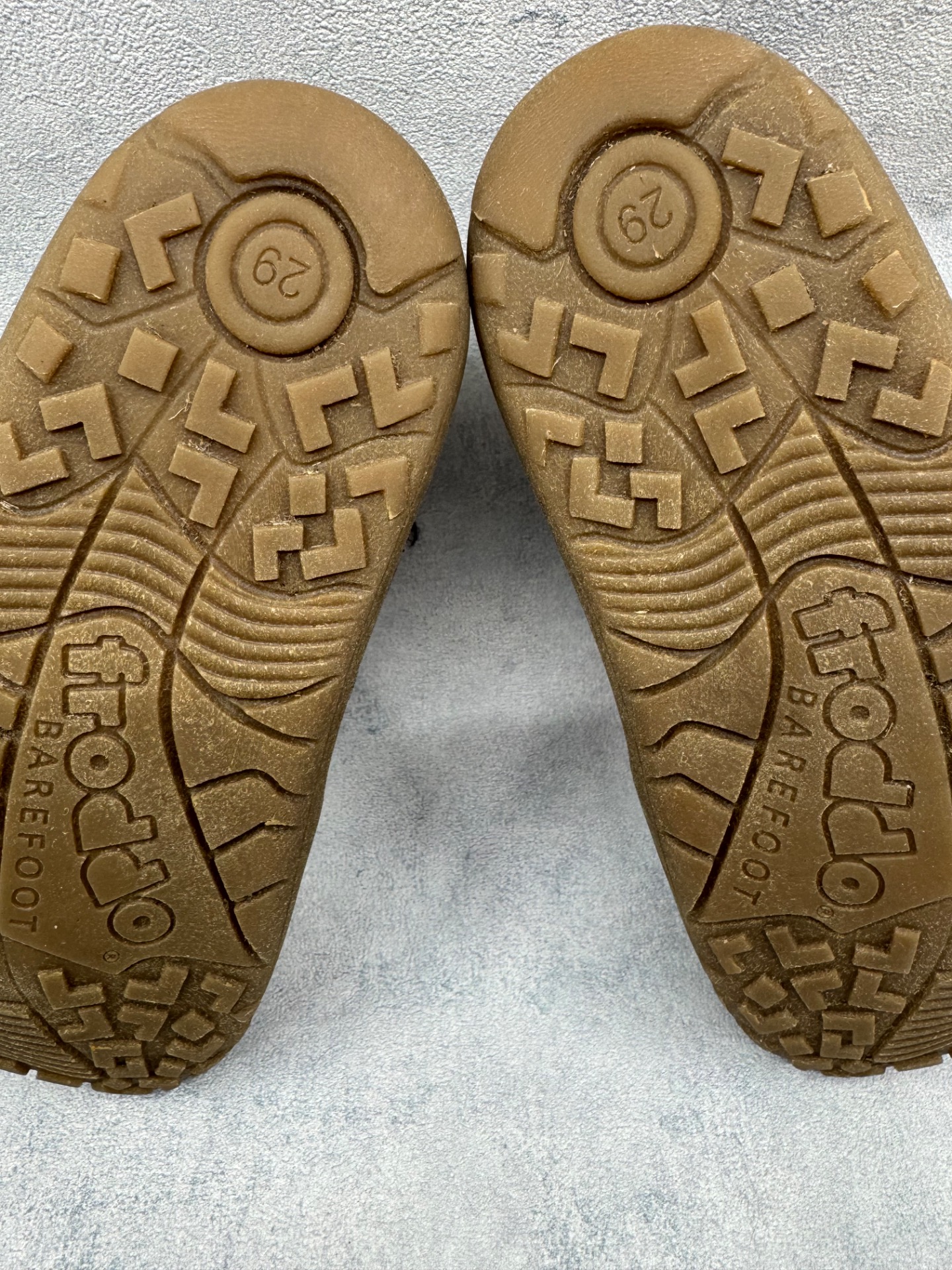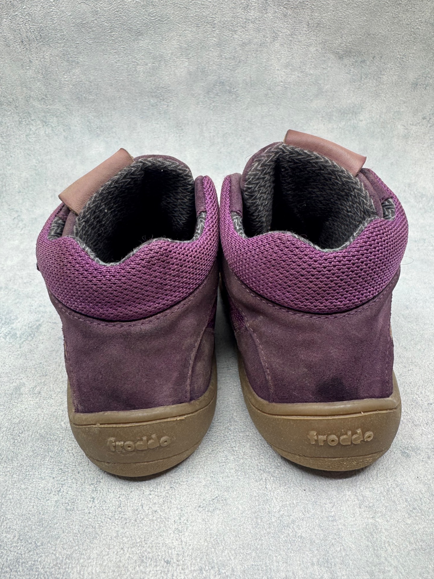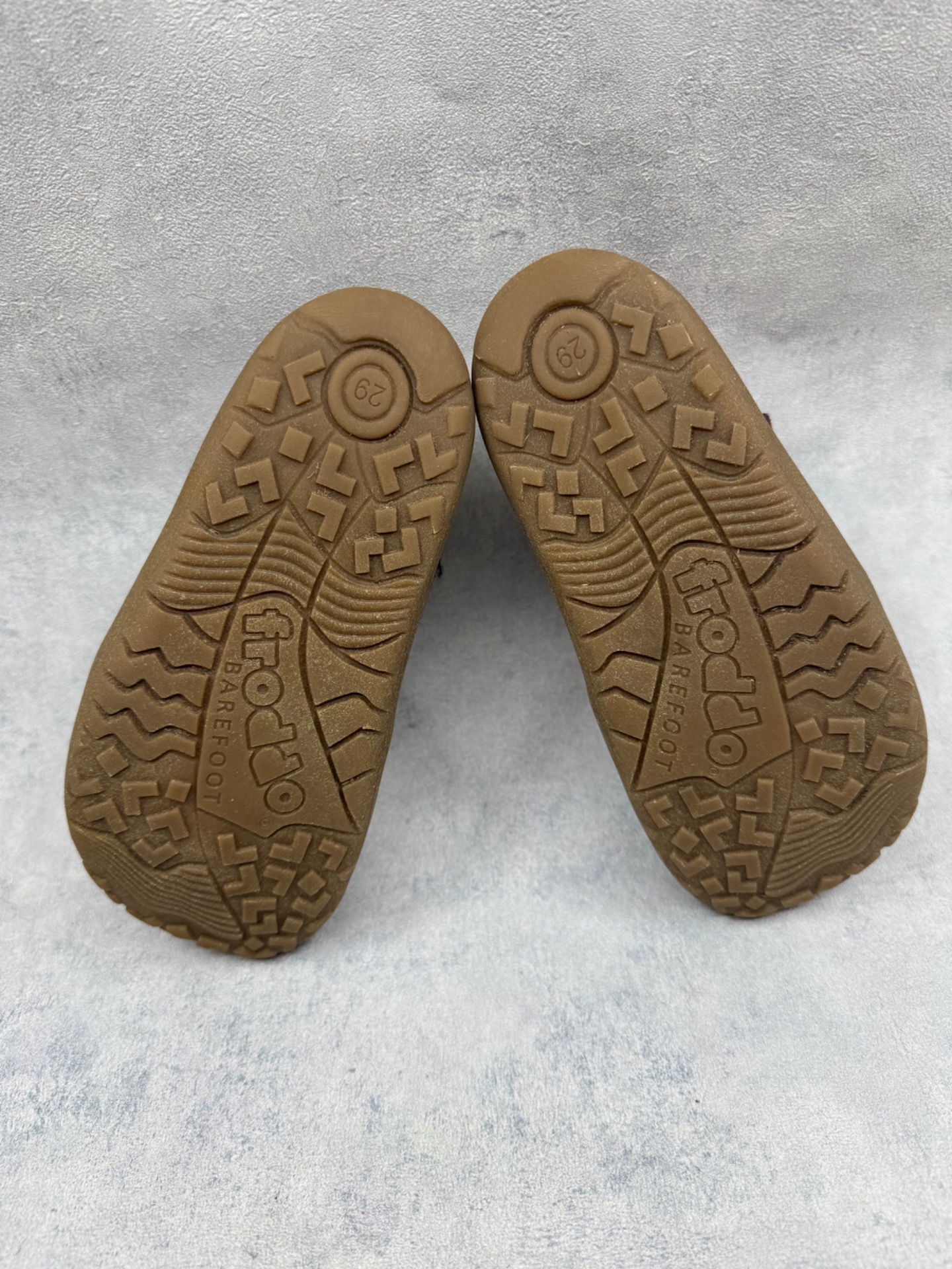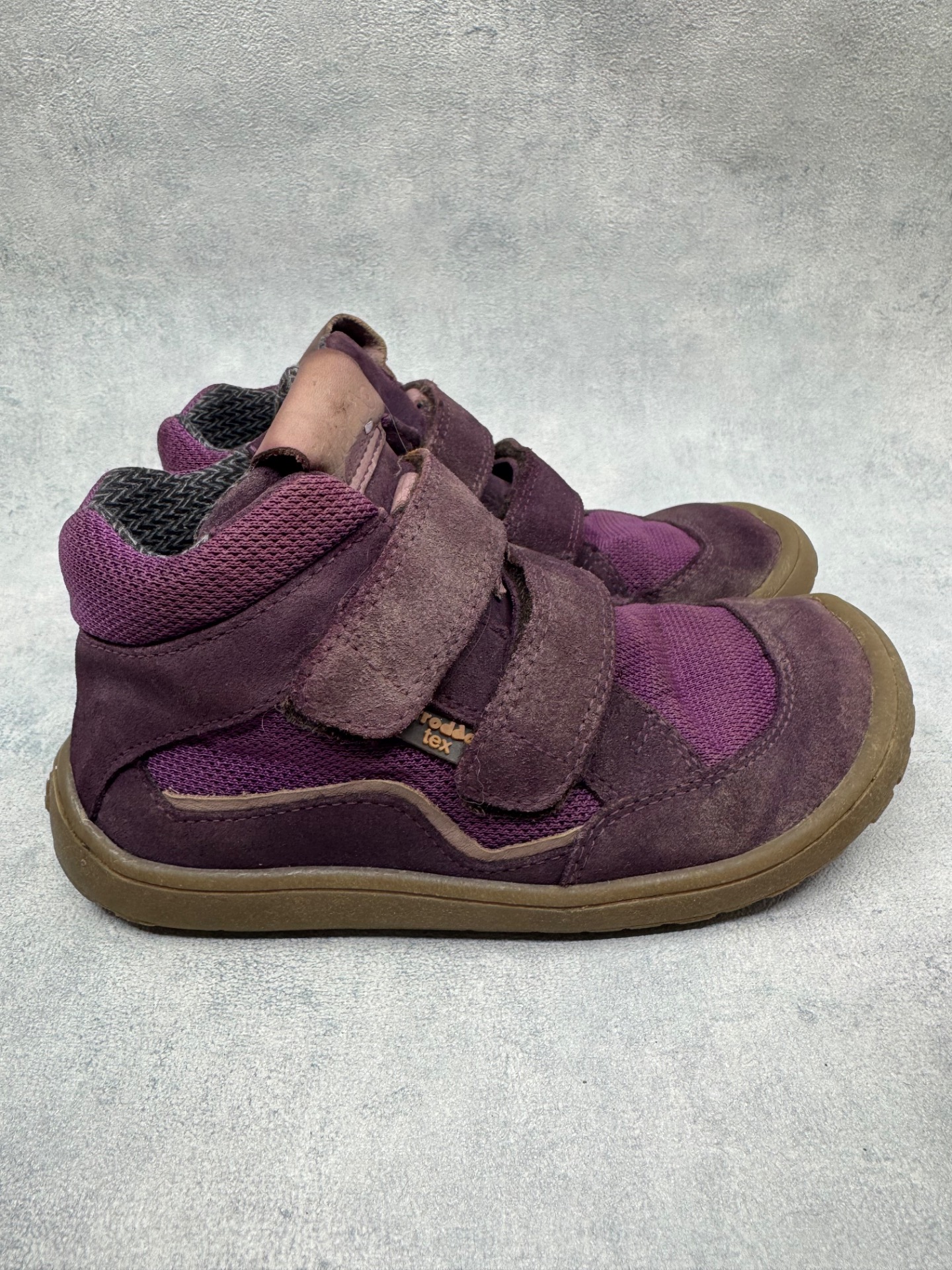 Hyväkuntoiset Froddon paljasjalkakengät. Käyttölikaa/hieman haalistuneet pinnalta paikoin, mutta muutoin erinomaisessa kunnossa, myöskään pohjissa ei ole kulumaa. Tarrat pitävät erinomaisesti ja kengät on testattu juoksevan veden alla vedenpitäviksi. Joustava pohja.