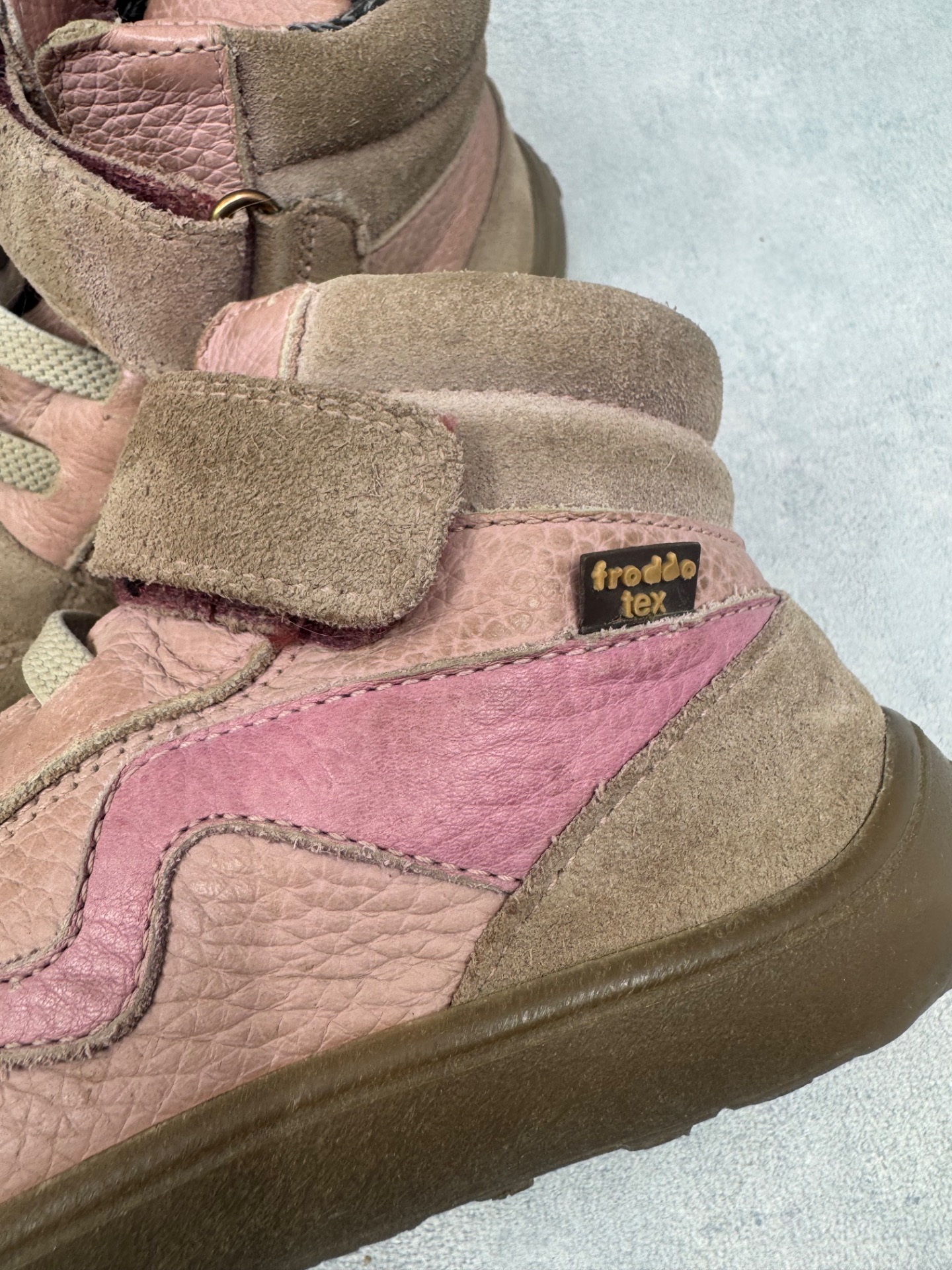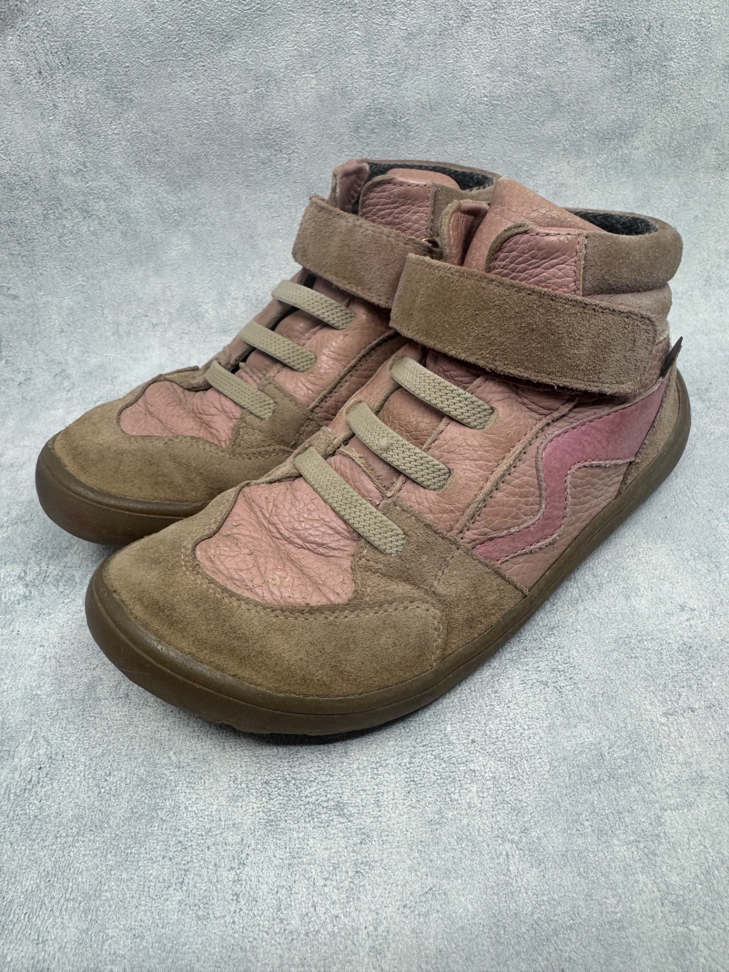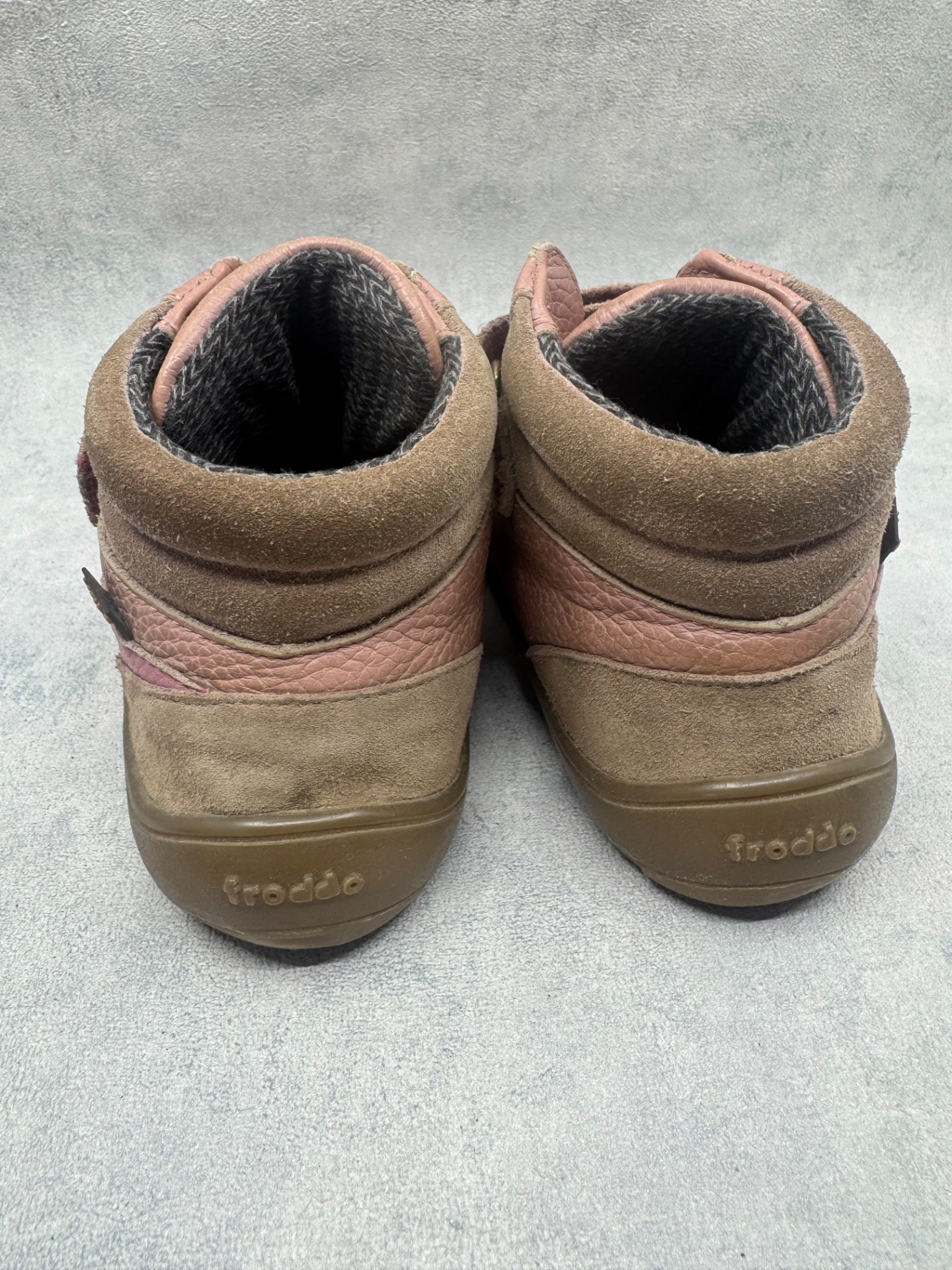 Hyväkuntoiset Froddon paljasjalkakengät. Pientä käytönjälkeä, yleisilme siisti. Tarrat pitää erinomaisesti ja kengät on testattu juoksevan veden alla vedenpitäviksi. Pohjissa hieman jo kulumaa, etenkin kantapäissä.