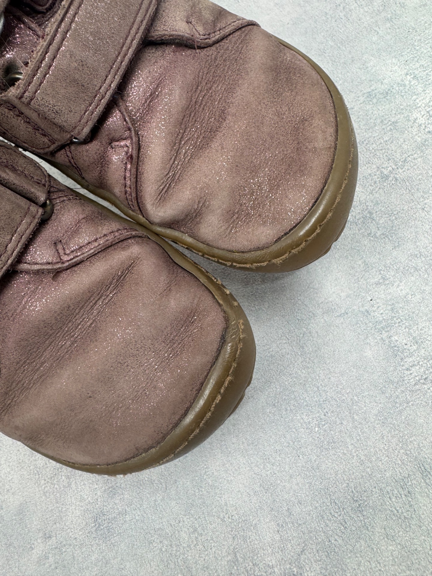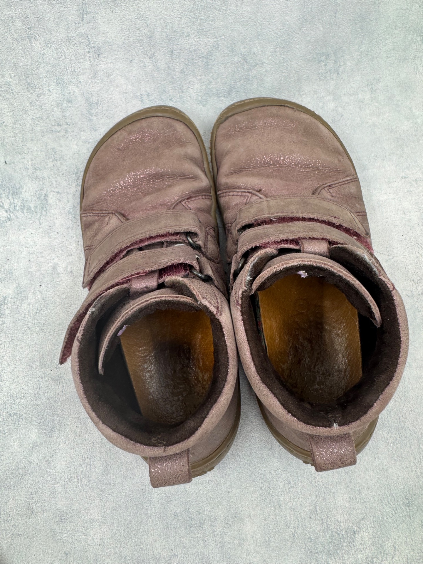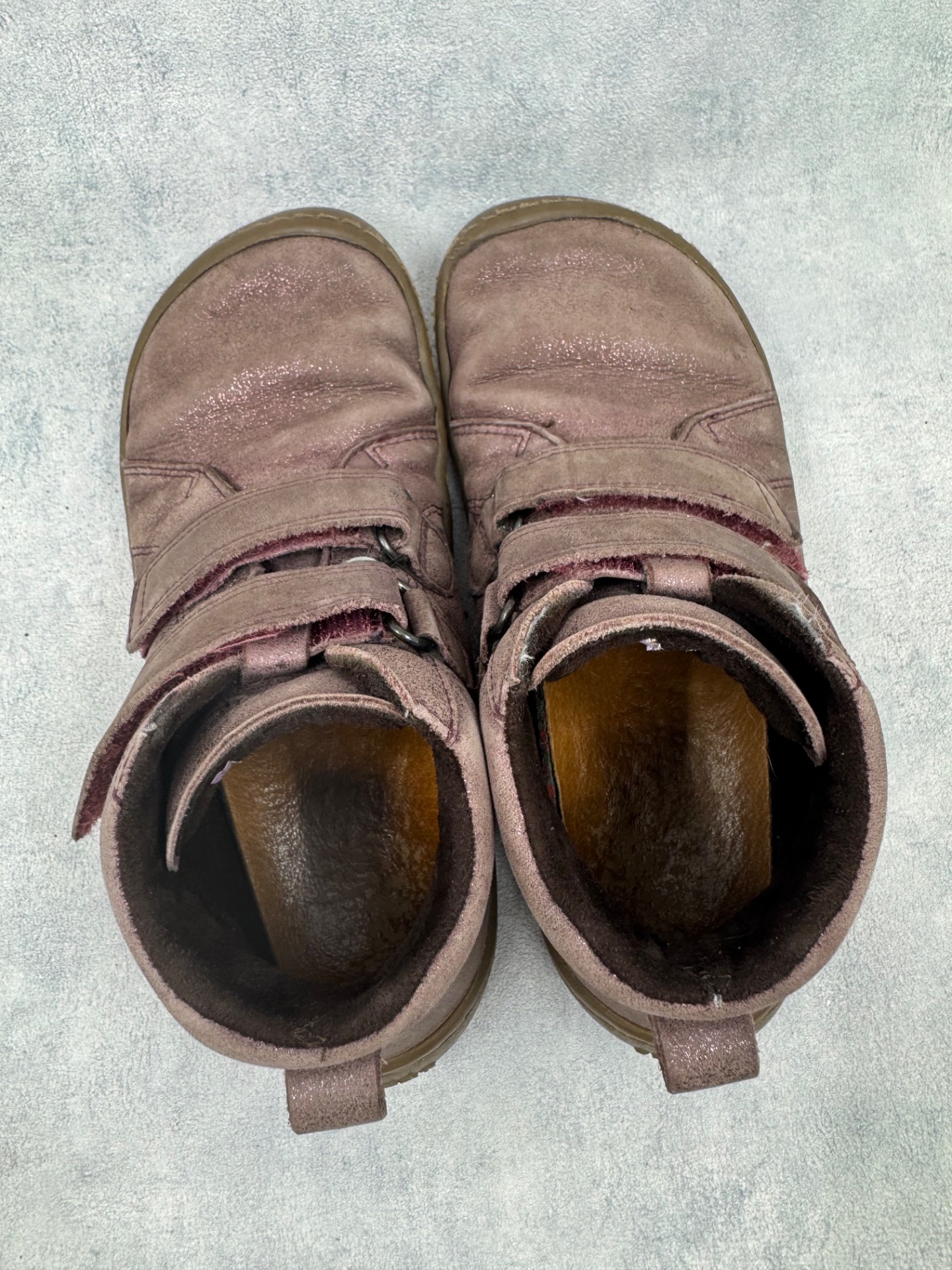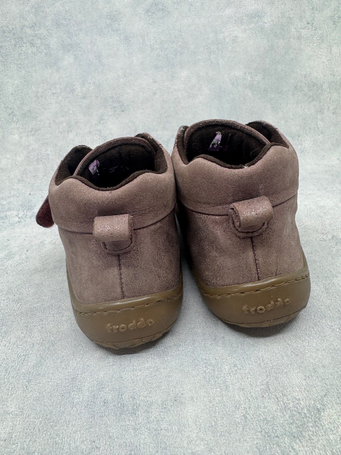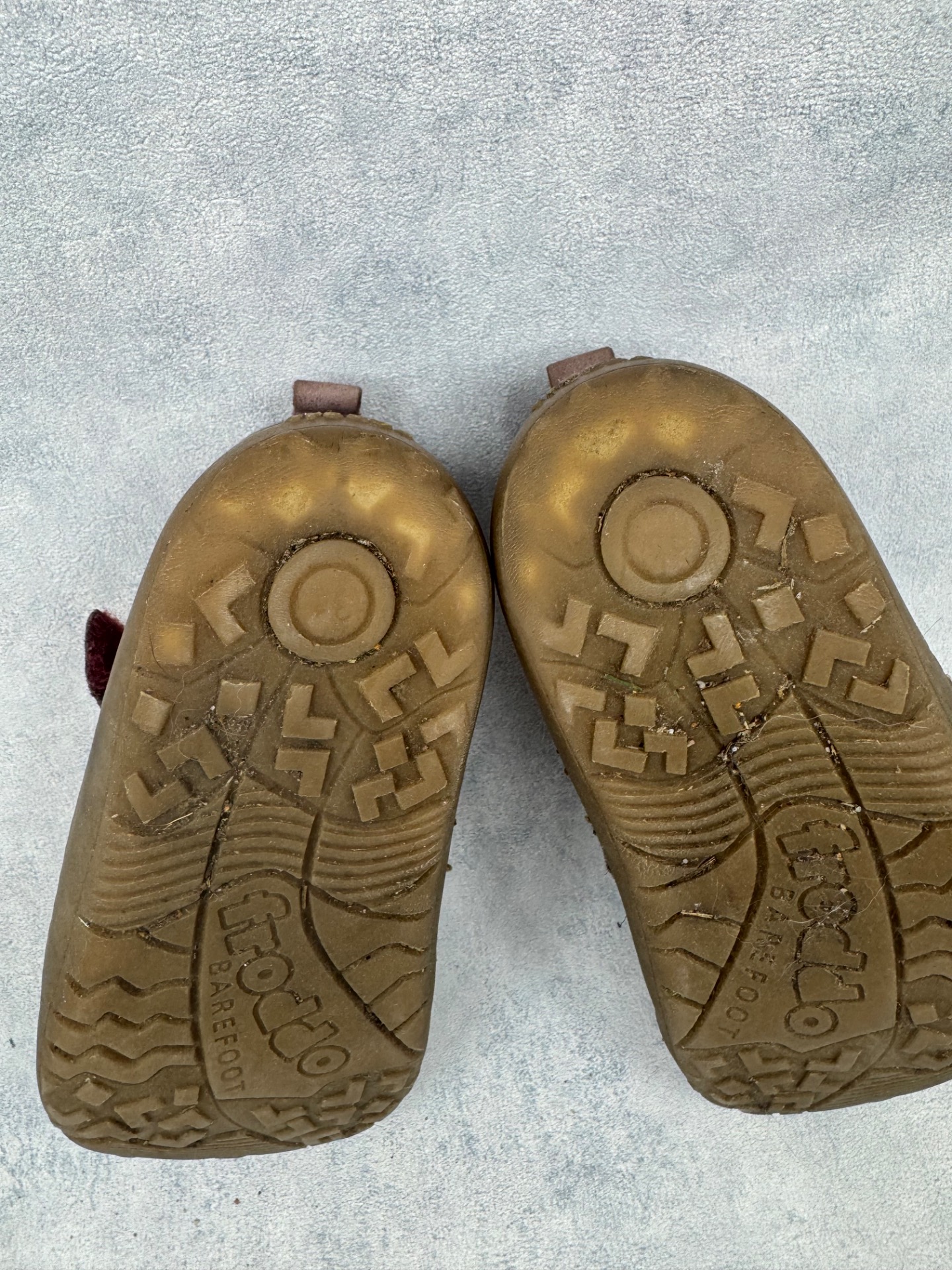 Hyväkuntoiset Froddon paljasjalkakengät. Pientä käytönjälkeä, yleisilme oikein siisti. Pohjissa kantapään kohdalla kulumaa, ei vaikuta käyttöön. Tarrat pitävät hyvin ja vaikkei kengissä ole merkintää vedenpitävyydestä, niissä on vettä hylkivä pinta, testattu vedenpitäviksi juoksevan veden alla. Joustava pohja.