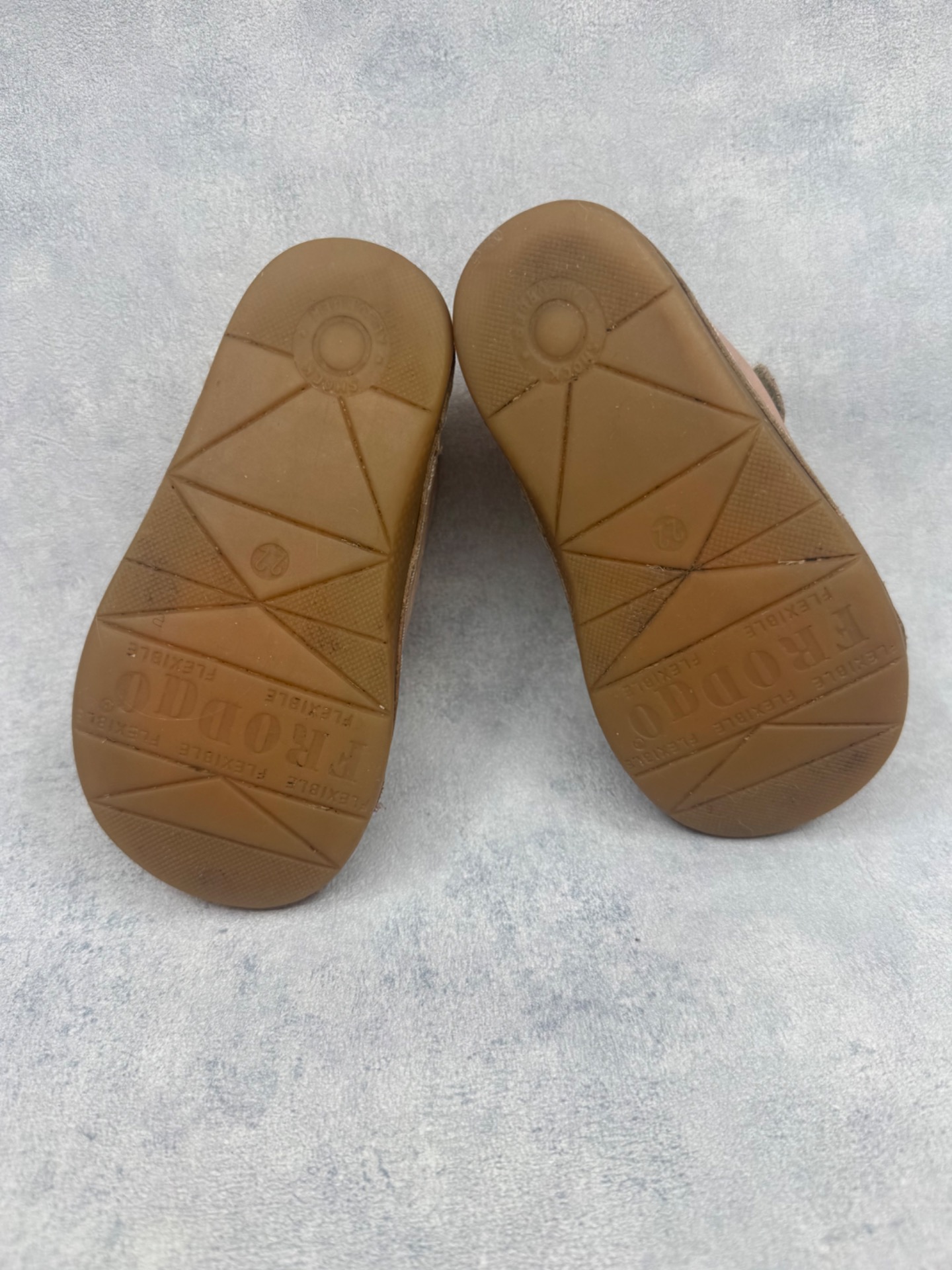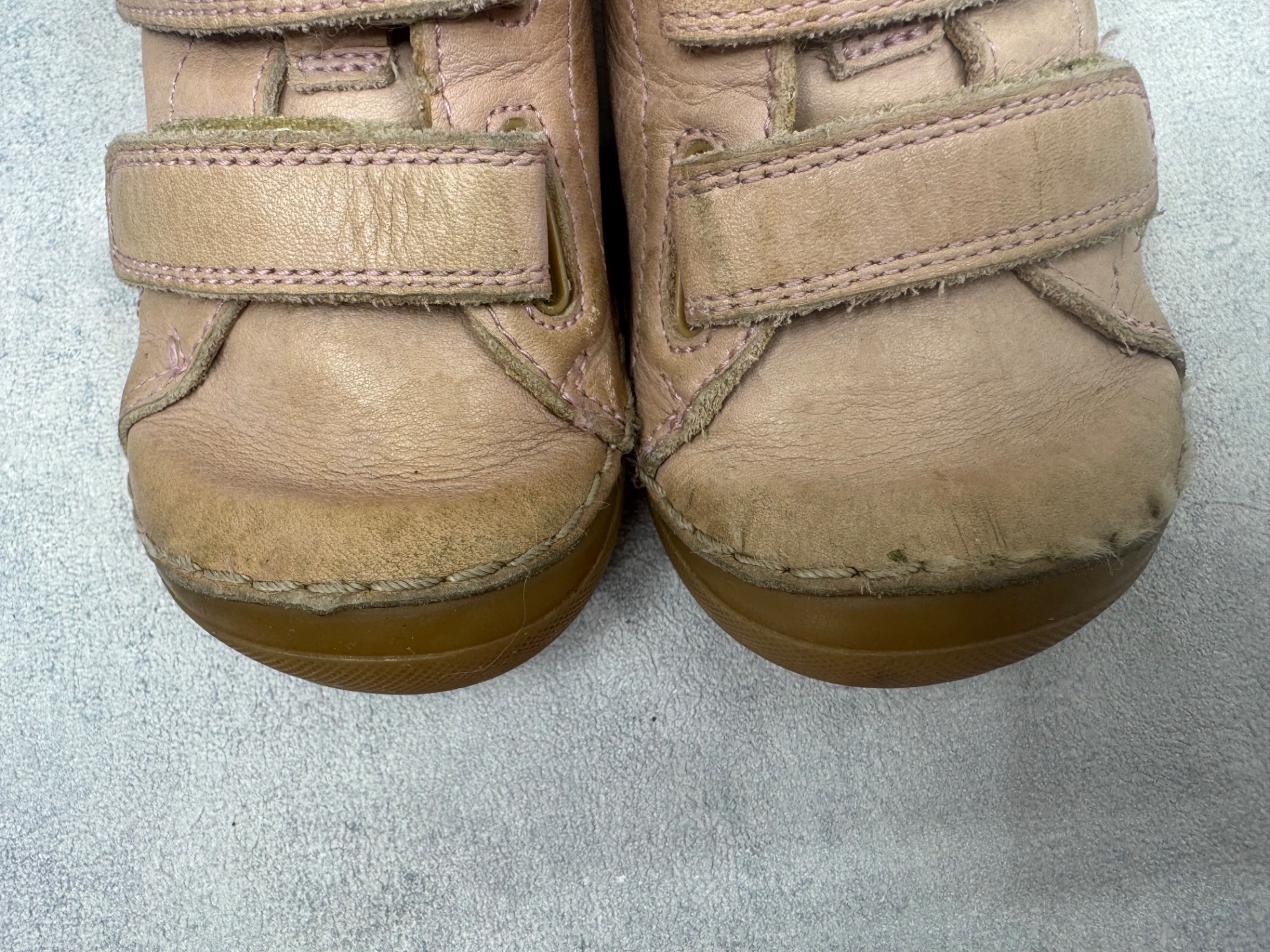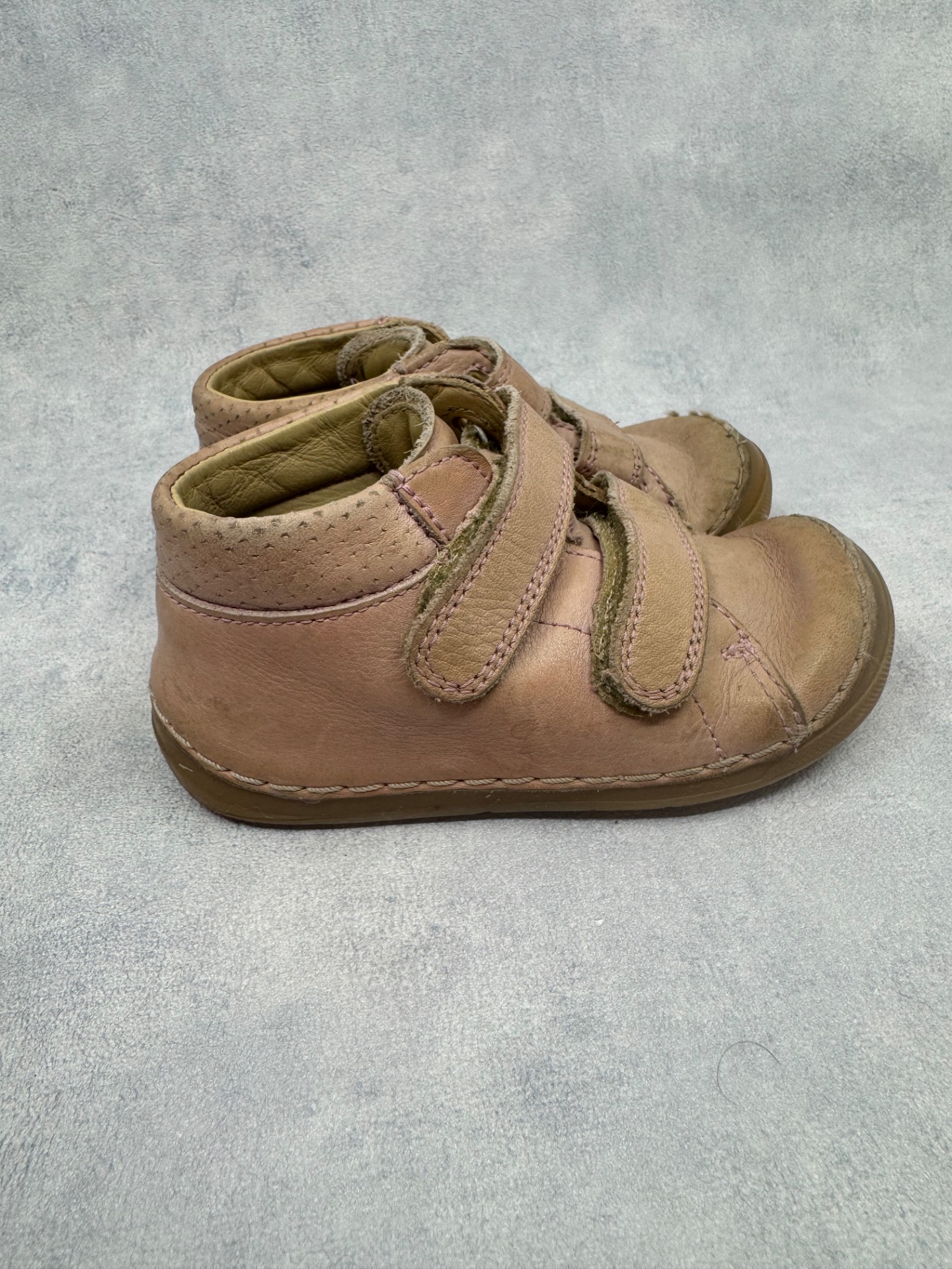 Hyväkuntoiset Froddon paljasjalkakengät. Pinta nahkaa, käytönjälkeä löytyy läheltä tarkastellessa, mutta yleisilmeeltään oikein siistit kengät. Tarrat pitää erinomaisesti. Joustava pohja.