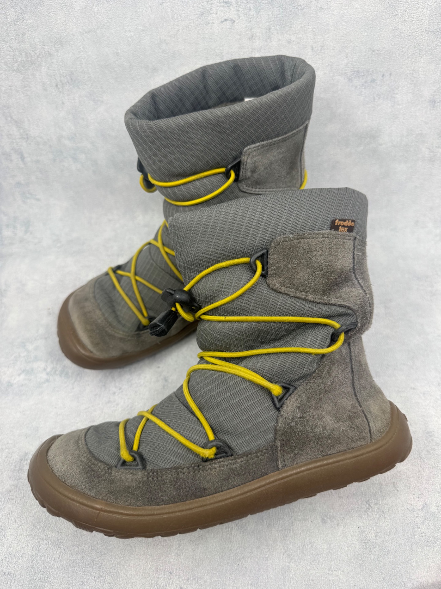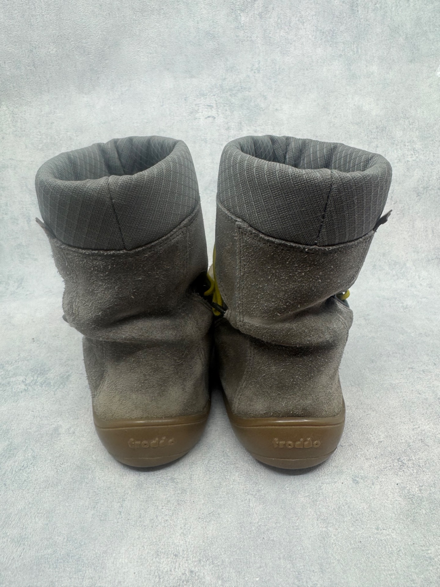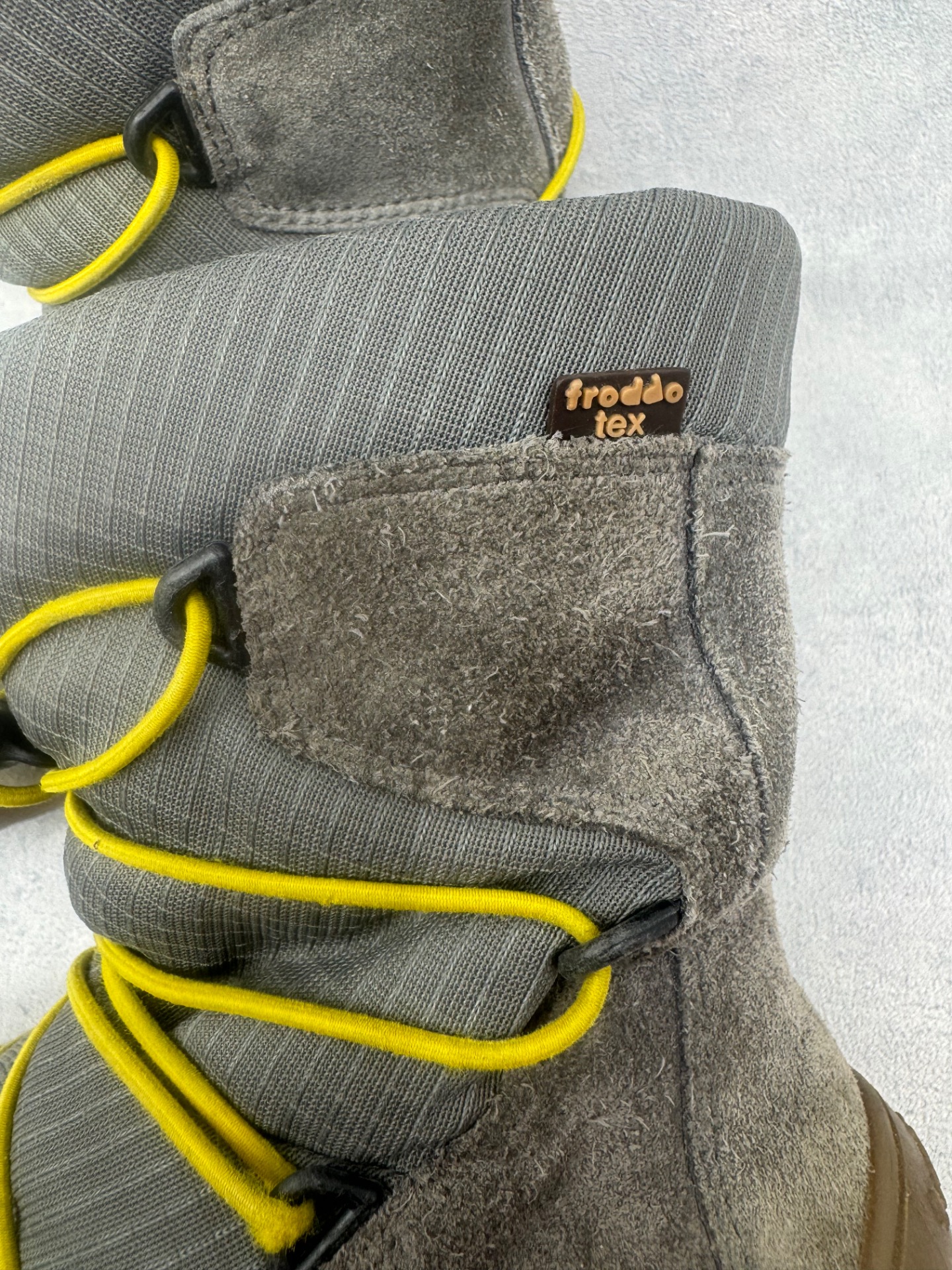 Hyväkuntoiset Froddon paljasjalkakengät. Kaikinpuolin oikein siistit, vain vuori uudesta painunut, mutta hyvässä kunnossa. Kengät on testattu vedenpitäviksi juoksevan veden alla. Todella joustava pohja. Sopivat mainiosti niin välikauteen kuin talveen.