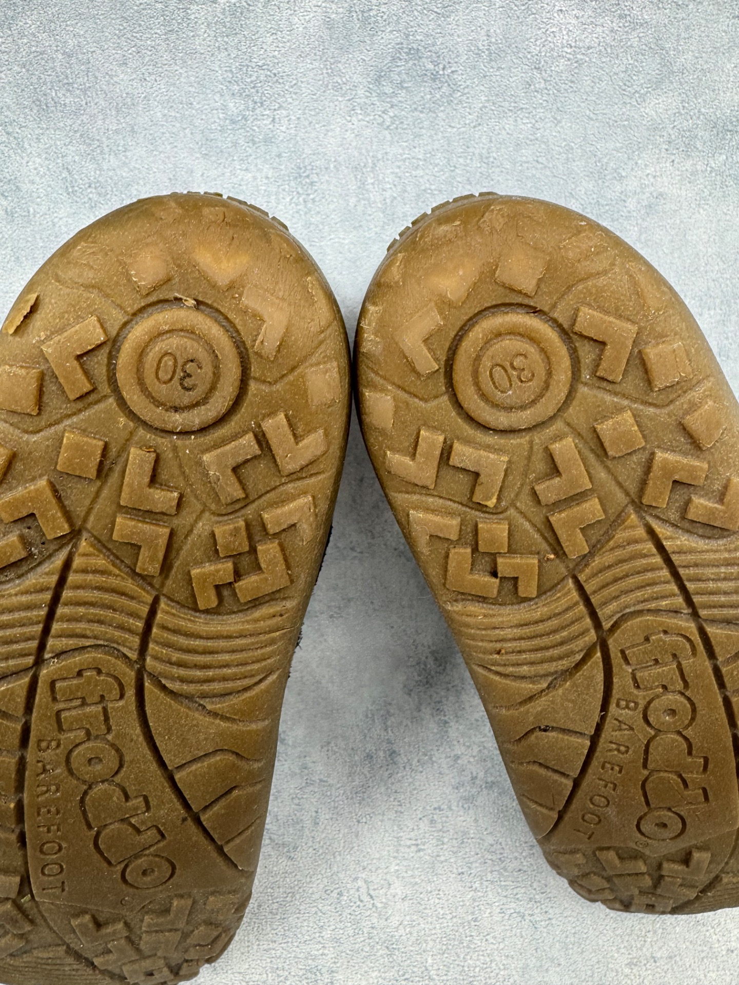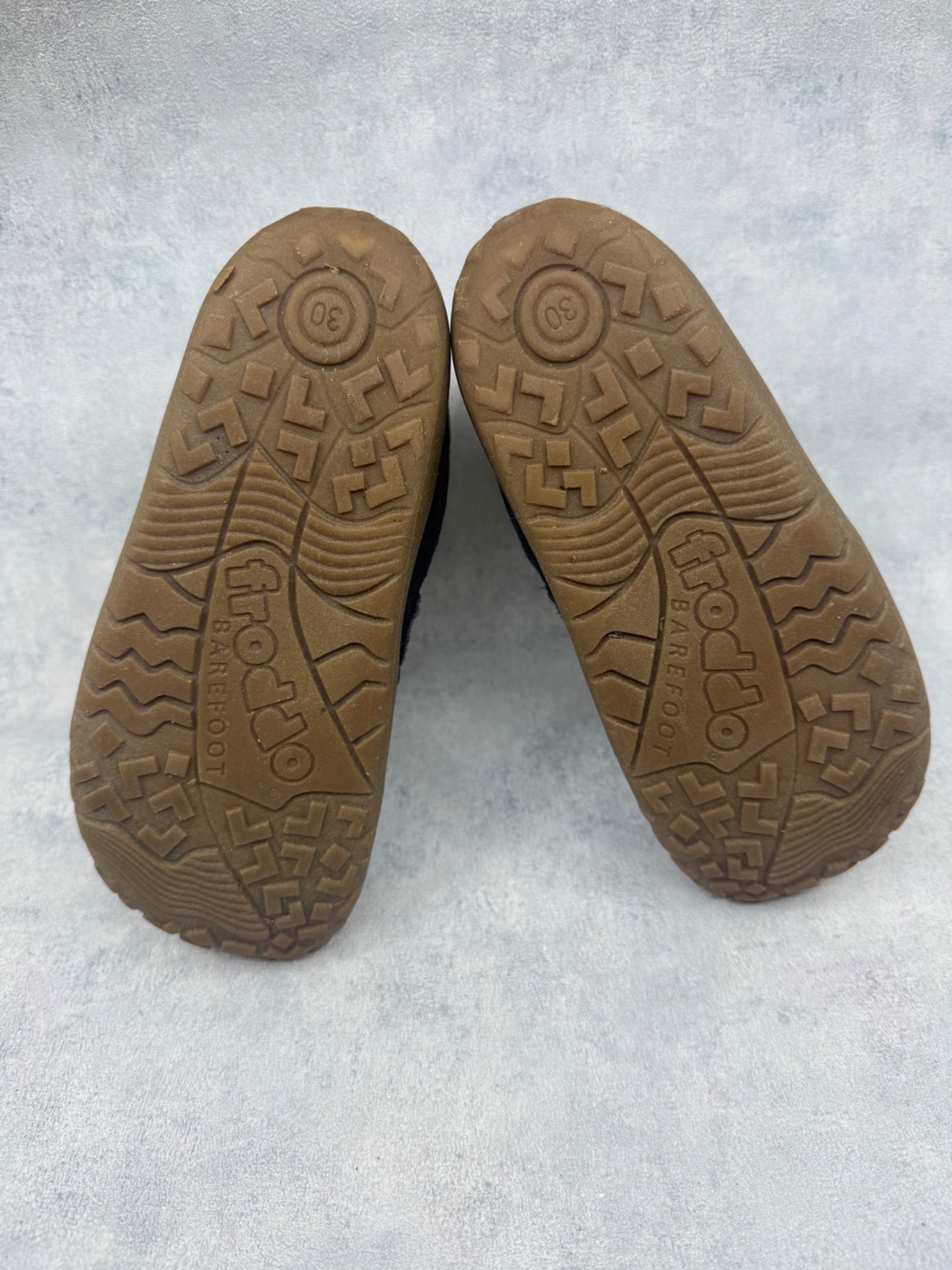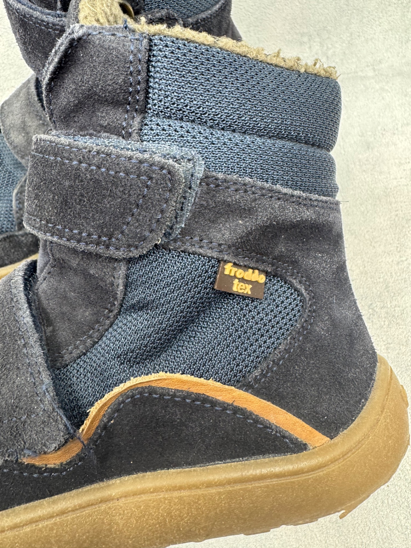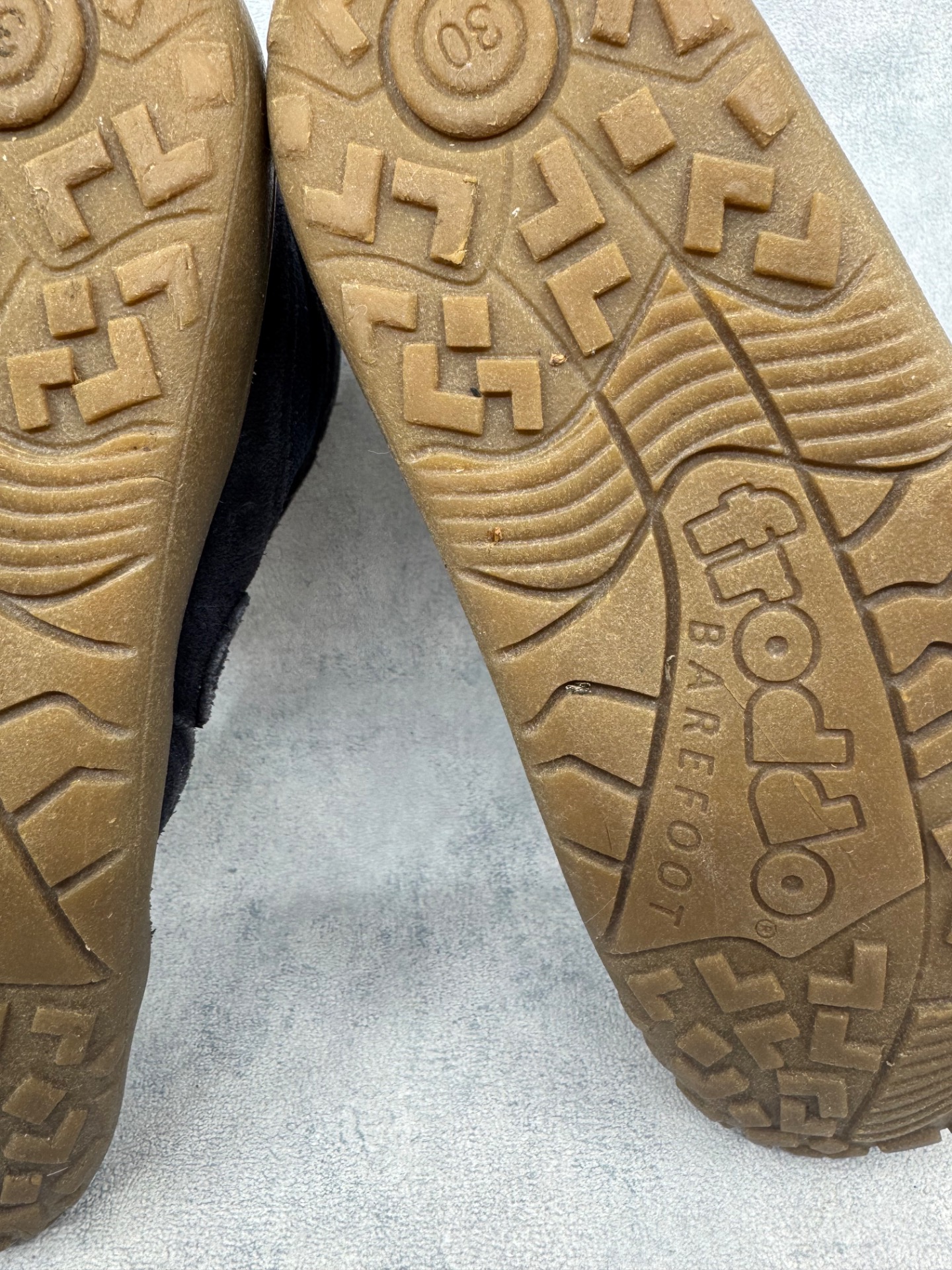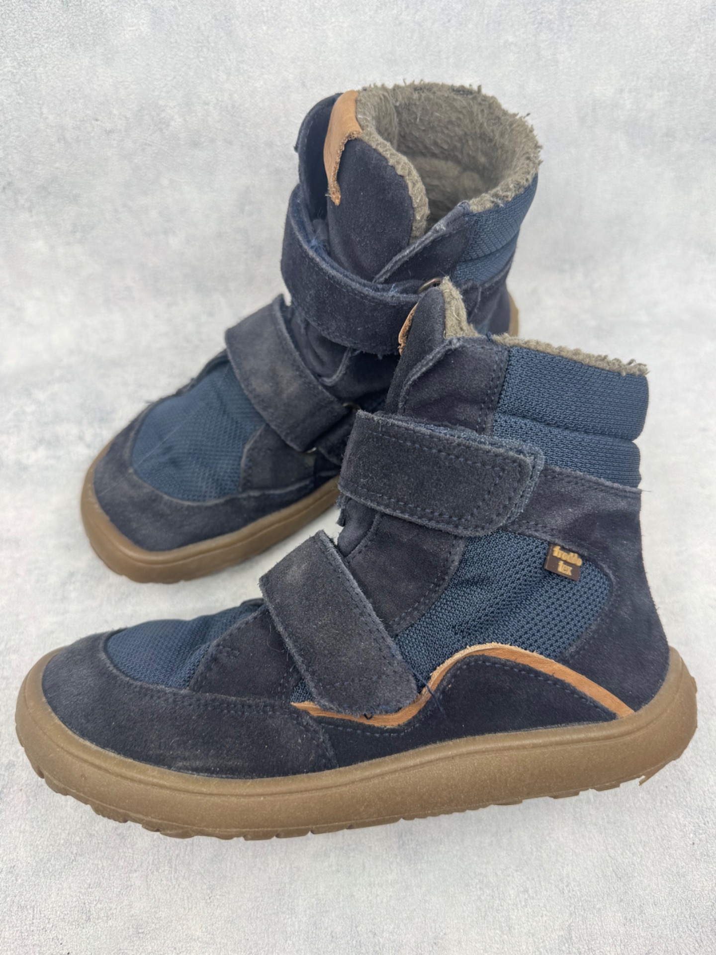 Hyväkuntoiset Froddon paljasjalkakengät. Pientä käytönjälkeä läheltä tarkastellessa, yleisilme siisti. Vuori uudesta painunut, mutta siisti, kengät sopivat mainiosti niin välikauteen kuin leudoille talvipäiville. Todella joustava pohja. Tarrat pitävät hyvin ja kengät on testattu juoksevan veden alla vedenpitäviksi.