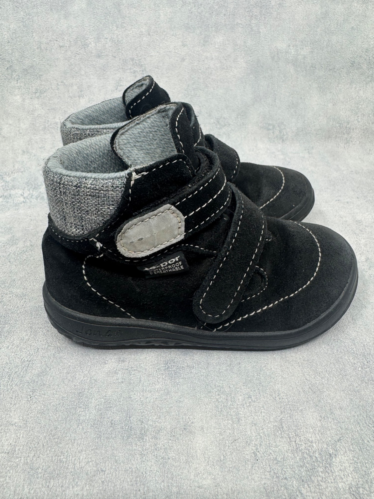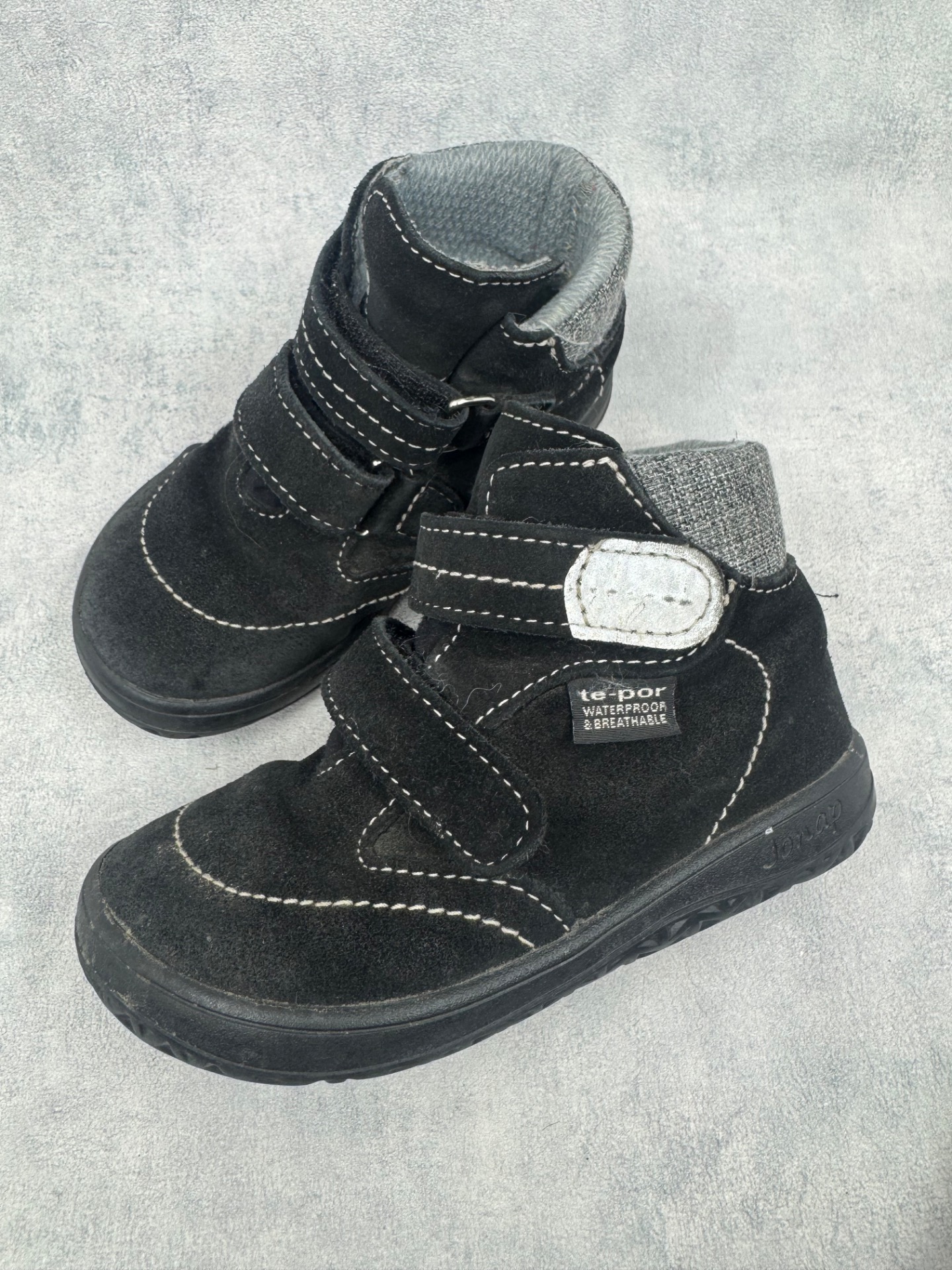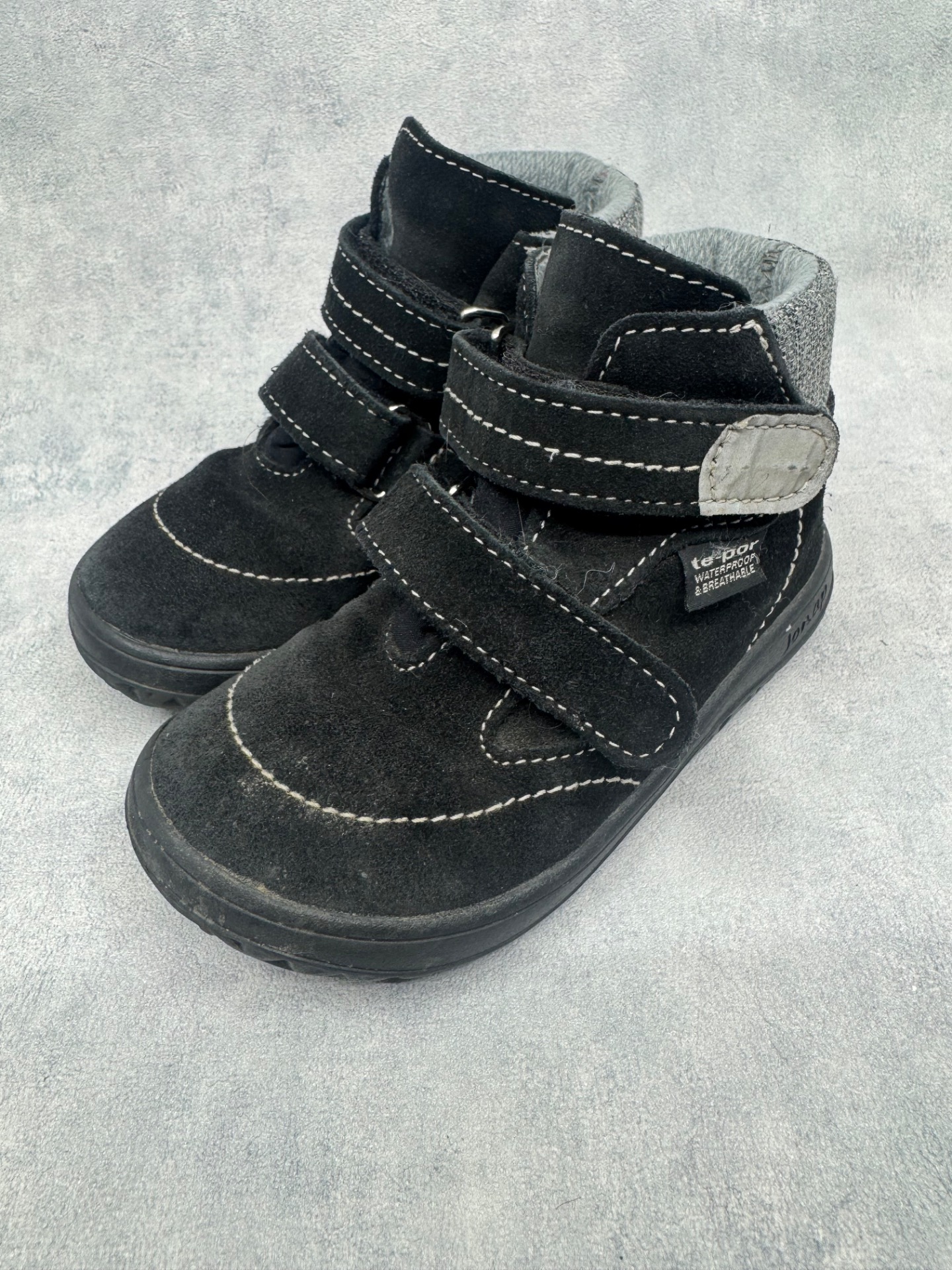 Hyväkuntoiset mustat Jonap paljasjalkakengät. Tarrat pitävät erinomaisesti. Kengissä on waterproof merkintä, testattu vedenpitäviksi juoksevan veden alla. Väri musta, aavistus haalistumaa paikoin, yleisilme erittäin siisti. Todella joustava pohja.
