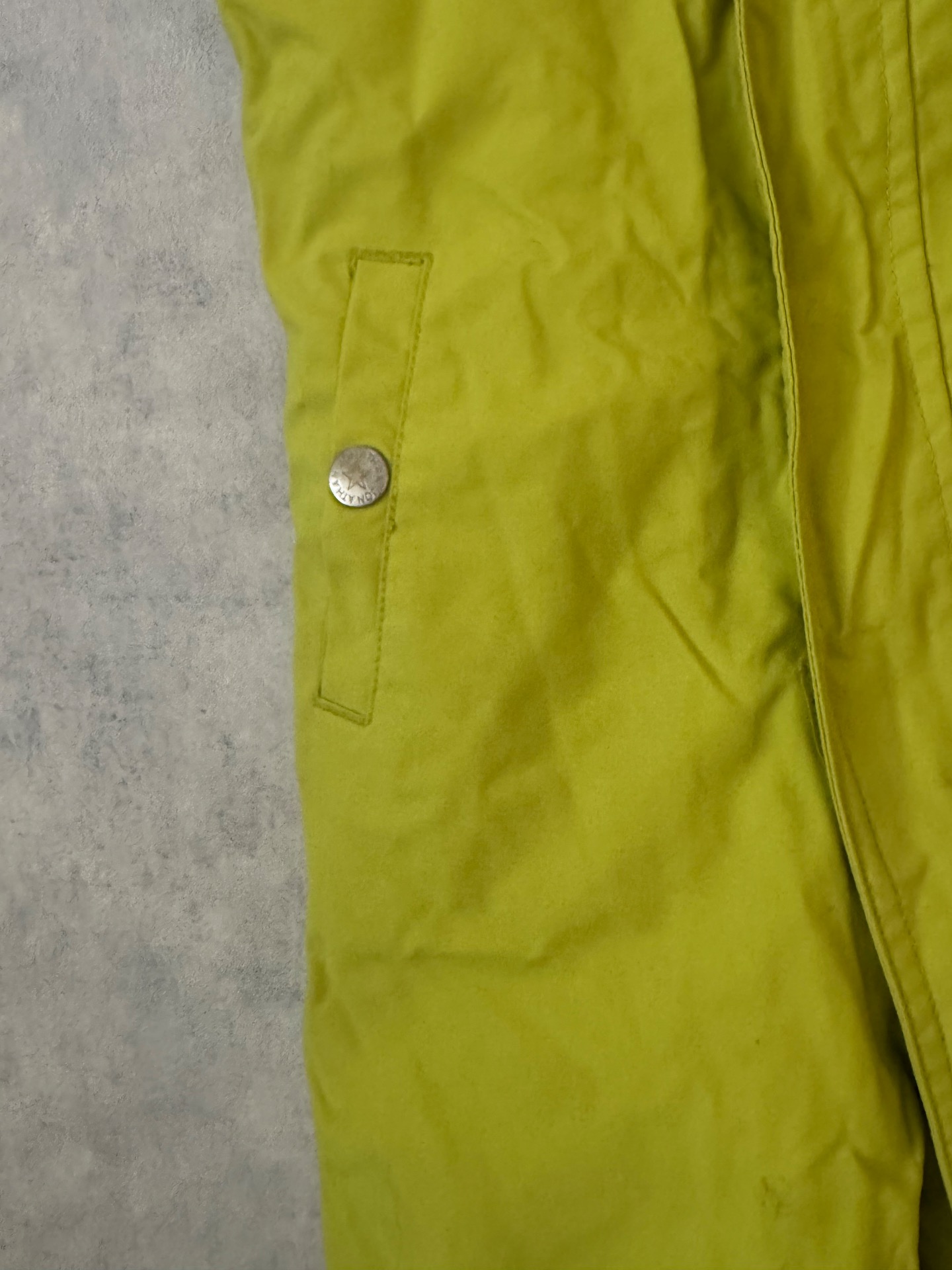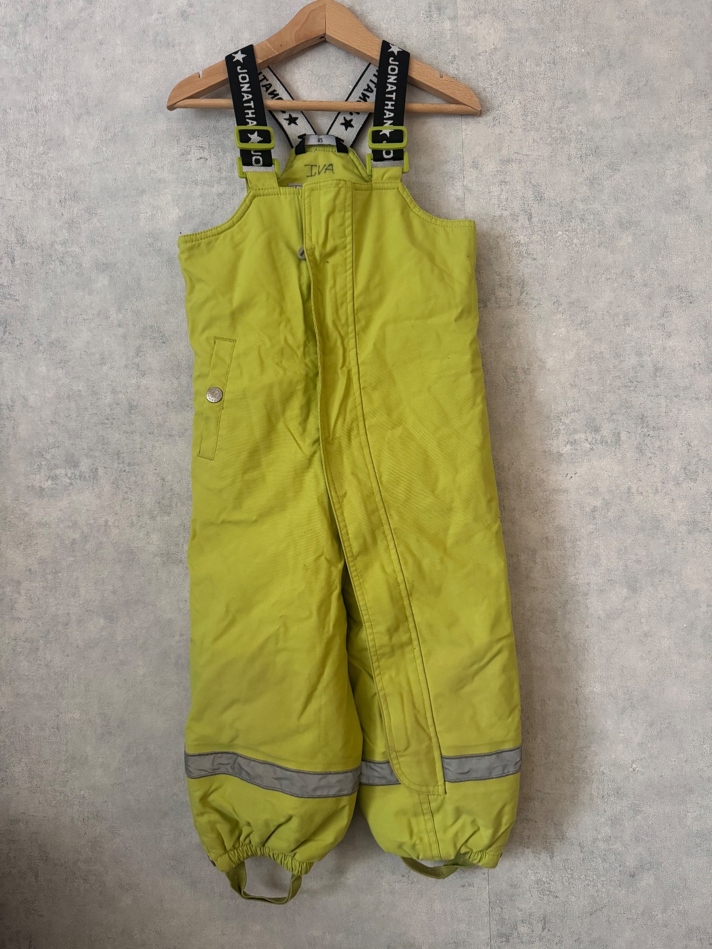 Erittäin hyväkuntoiset vihreät Jonathanin toppahousut. Muhkeat ja varmasti lämpimät. Aran värin vuoksi lahkeissa aivan aavistus tummentumaa. Jalkalenkeissä pientä kulumaa. Hajusteettomat.