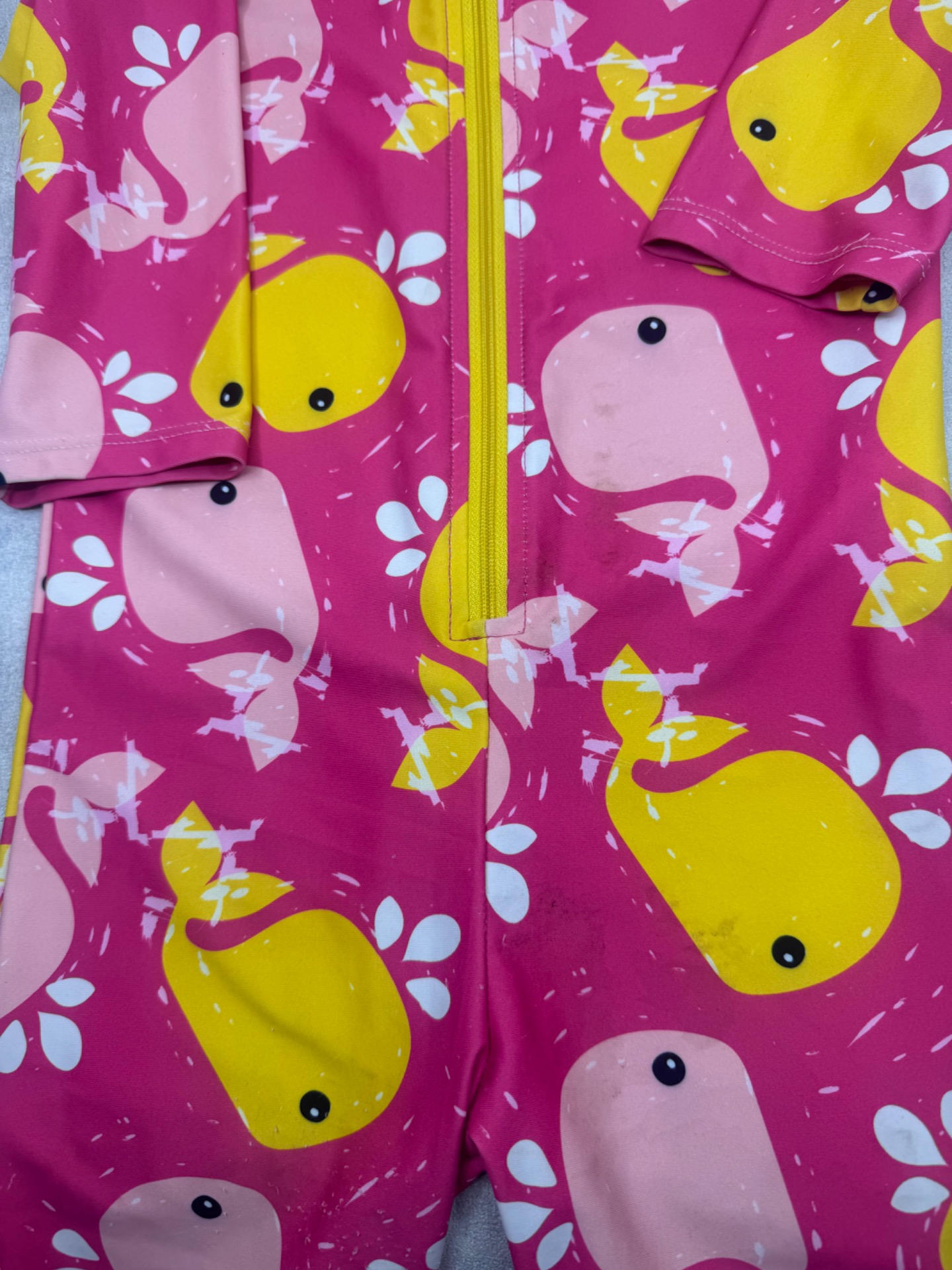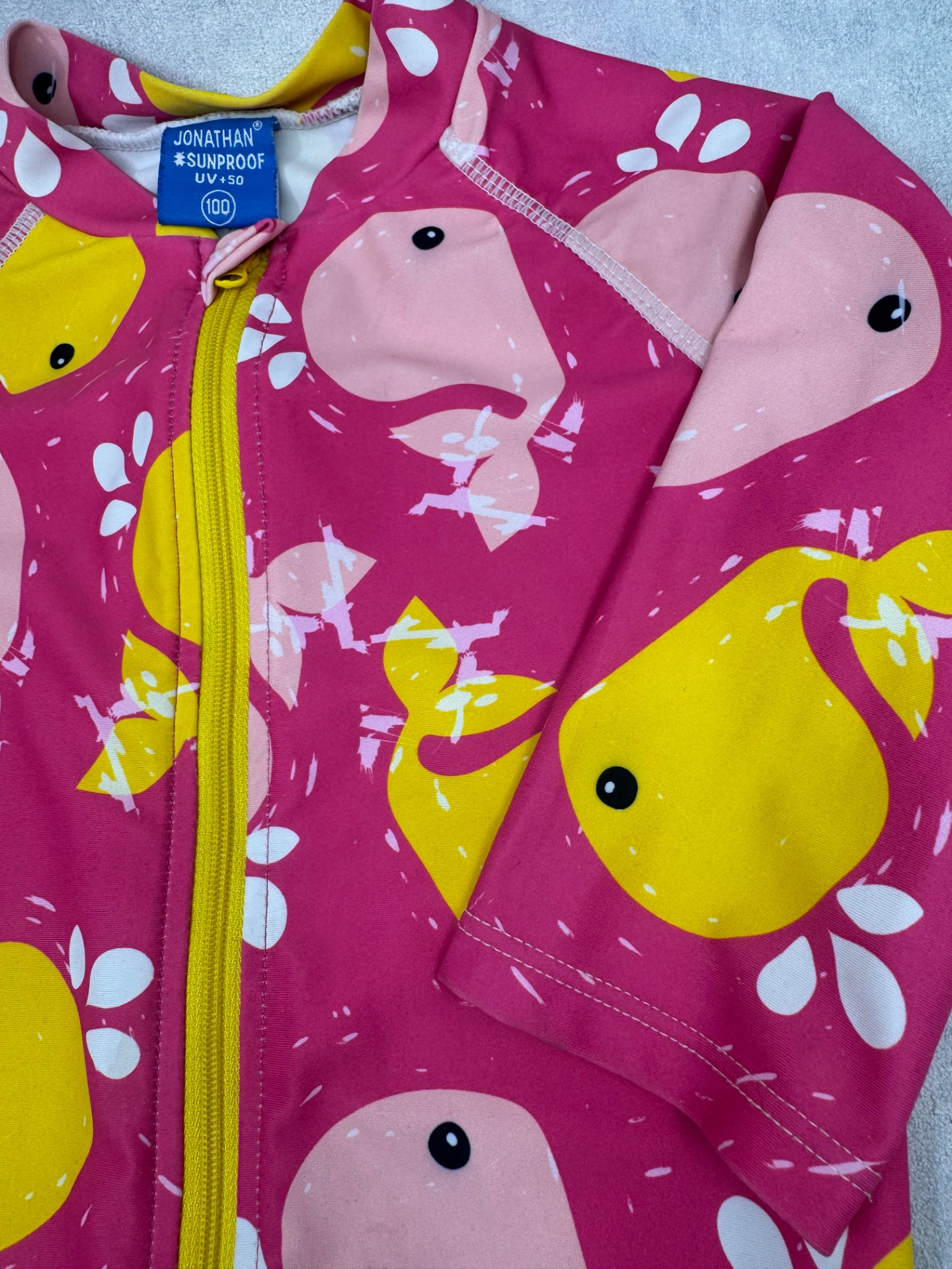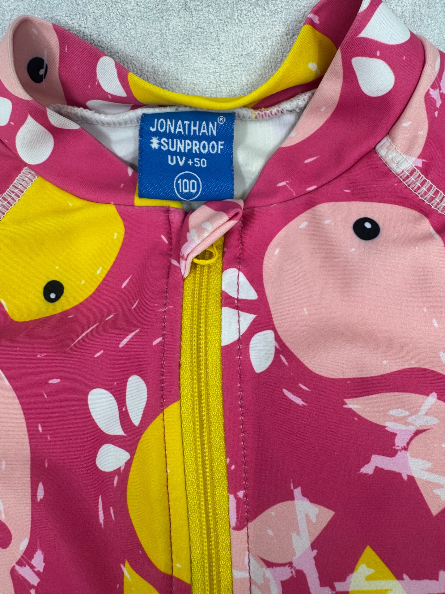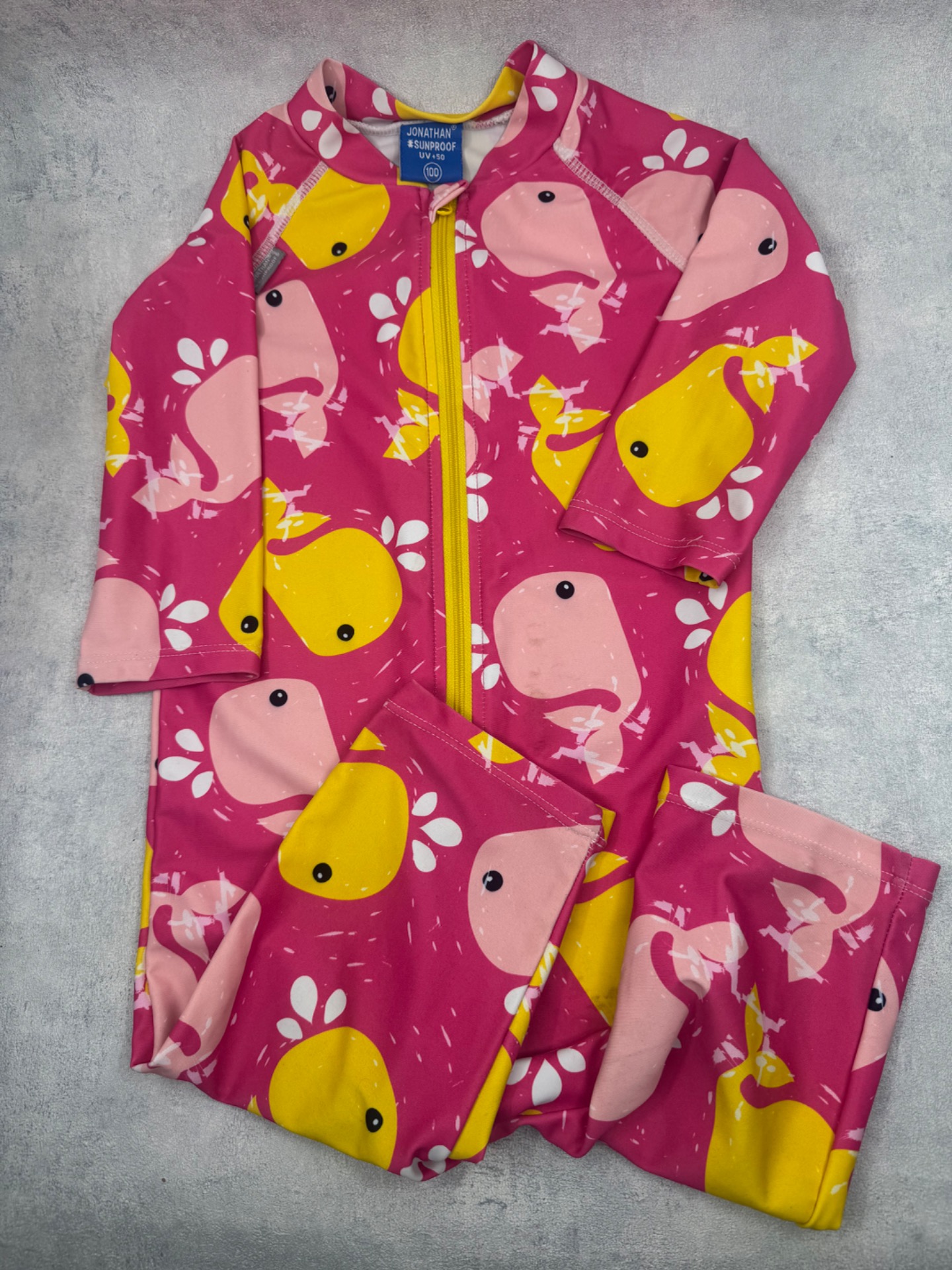 Hyväkuntoinen Jonathanin UV-uima-asu. Yleisilmeeltään erittäin siisti, lähes uudenveroinen. Läheltä tarkastellessa löytyy käytönjälkeä, mm. polvissa nukkaa ja pientä kulumaa. Ei vaikuta käyttöön. Hajusteeton.