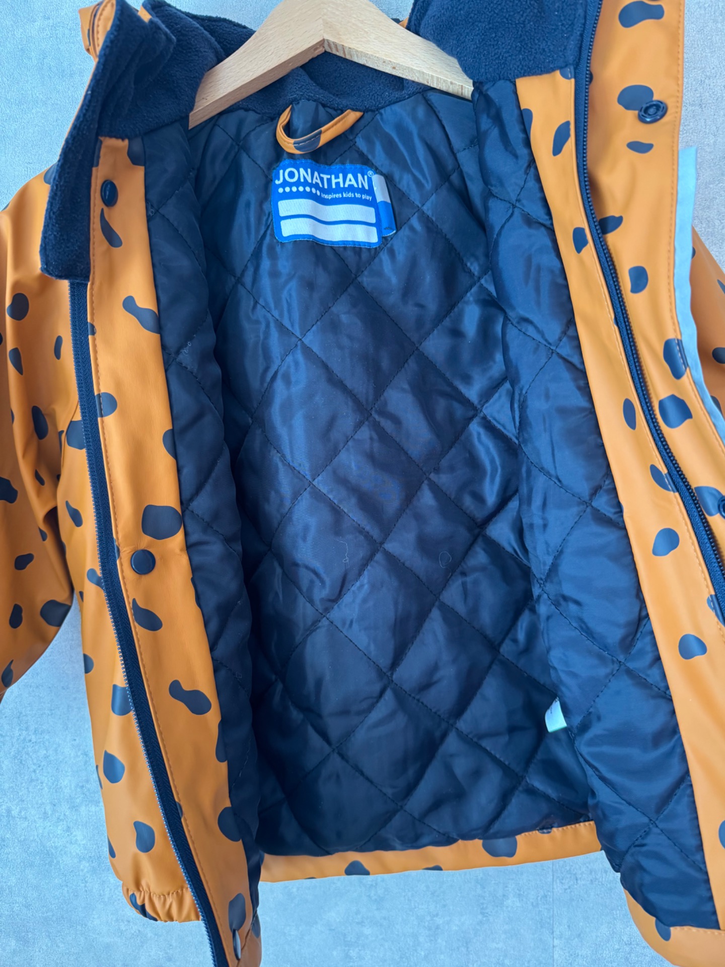 Erittäin hyväkuntoinen, lähes uudenveroinen Jonathanin sadeasu tikkivuorella. Ei kulumaa. Tikkivuori on lämmittää ja on lapsen helppo itse pukea. Hajusteeton.