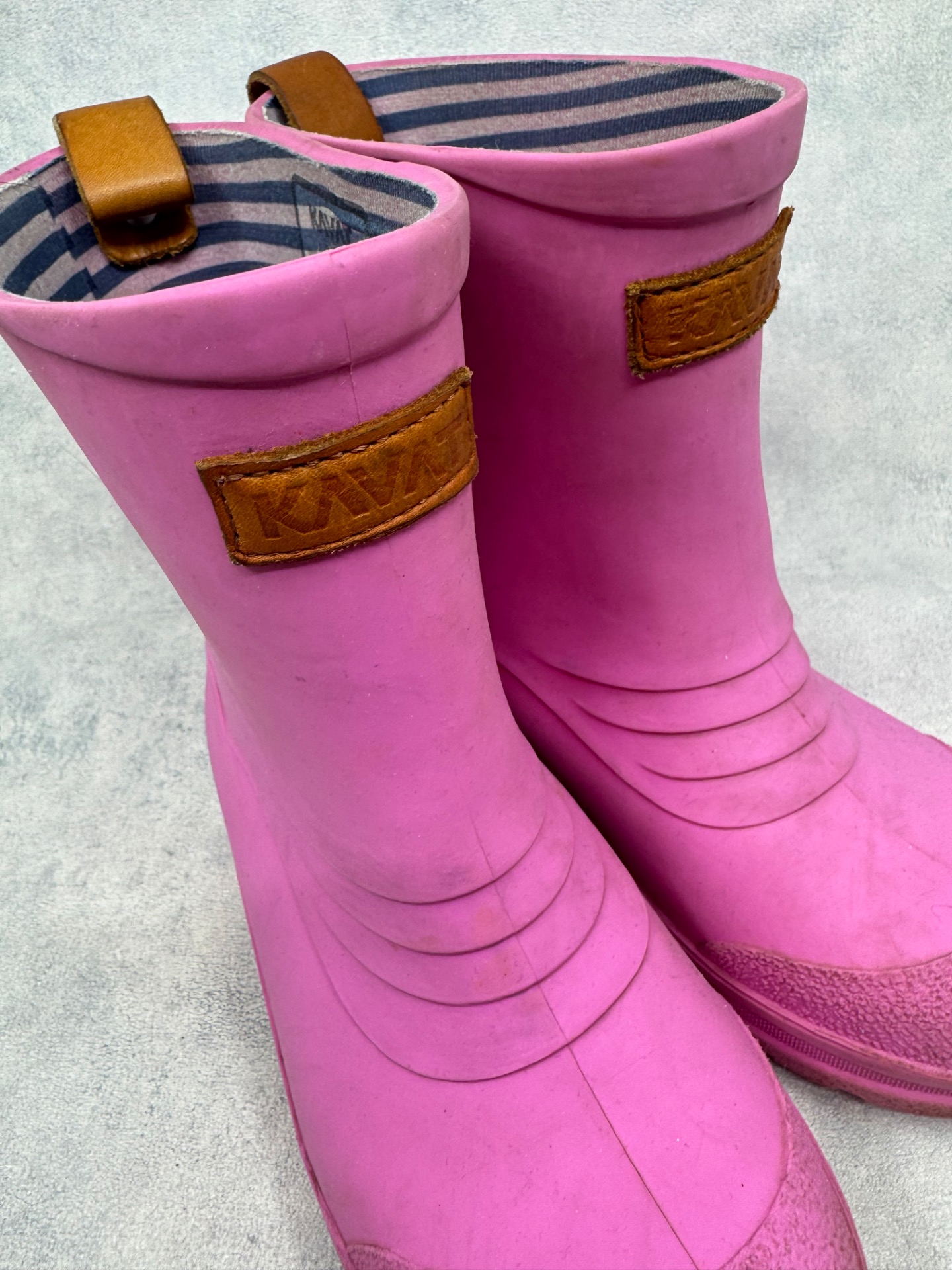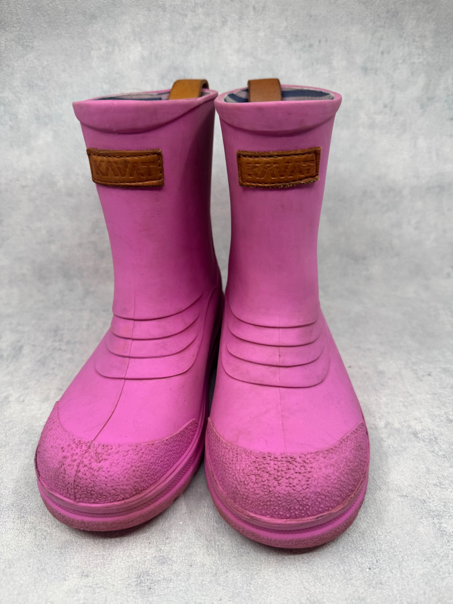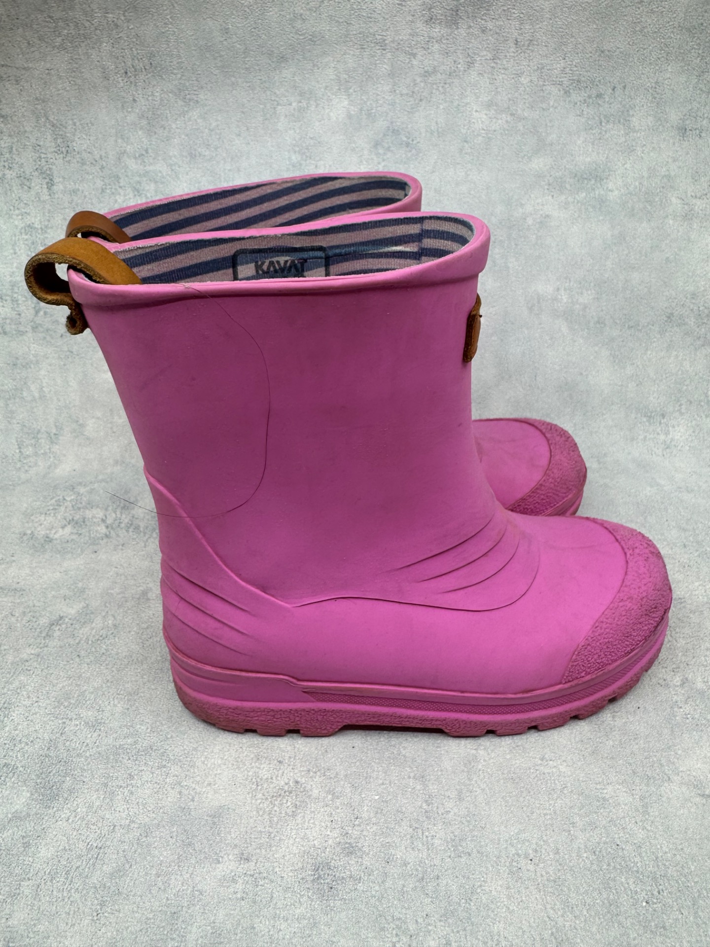Erittäin hyväkuntoiset Kavatin kumisaappaat. Aavistus käyttölikaa/tummentumaa pinnassa, yleisilme oikein siisti ja kengät vaikuttavat vähän käytetyiltä. Testattu vedenpitäviksi juoksevan veden alla.