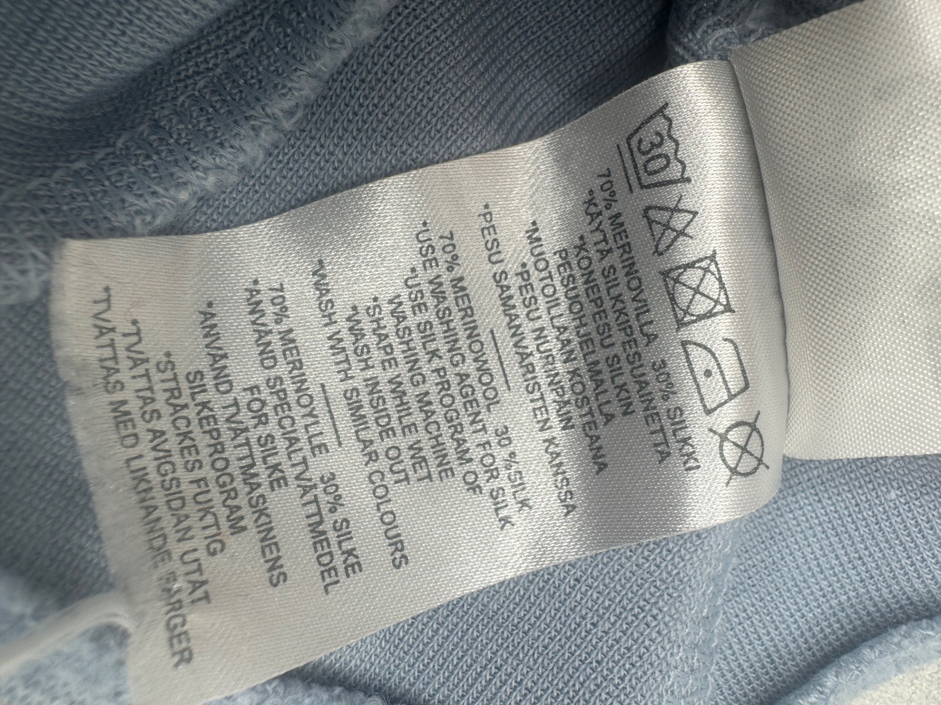 Erittäin hyväkuntoinen sininen Kivat aluskypärämyssy silkkivillaa (70% merinovilla, 30%silkki). Hajusteeton.