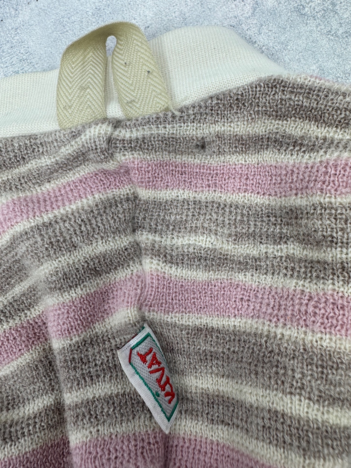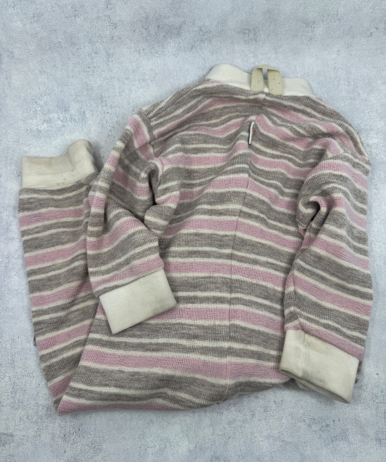 Hyväkuntoinen Kivat villahaalari 100% villaa. Aran värin vuoksi hihoissa ja lahkeissa paikoin tummentumaa. Niskassa pieni huomaamaton reikä. Muutoin erinomaisessa kunnossa, pehmeä lämmin, eikä ole lainkaan kutistunut pesussa. Hajusteeton.