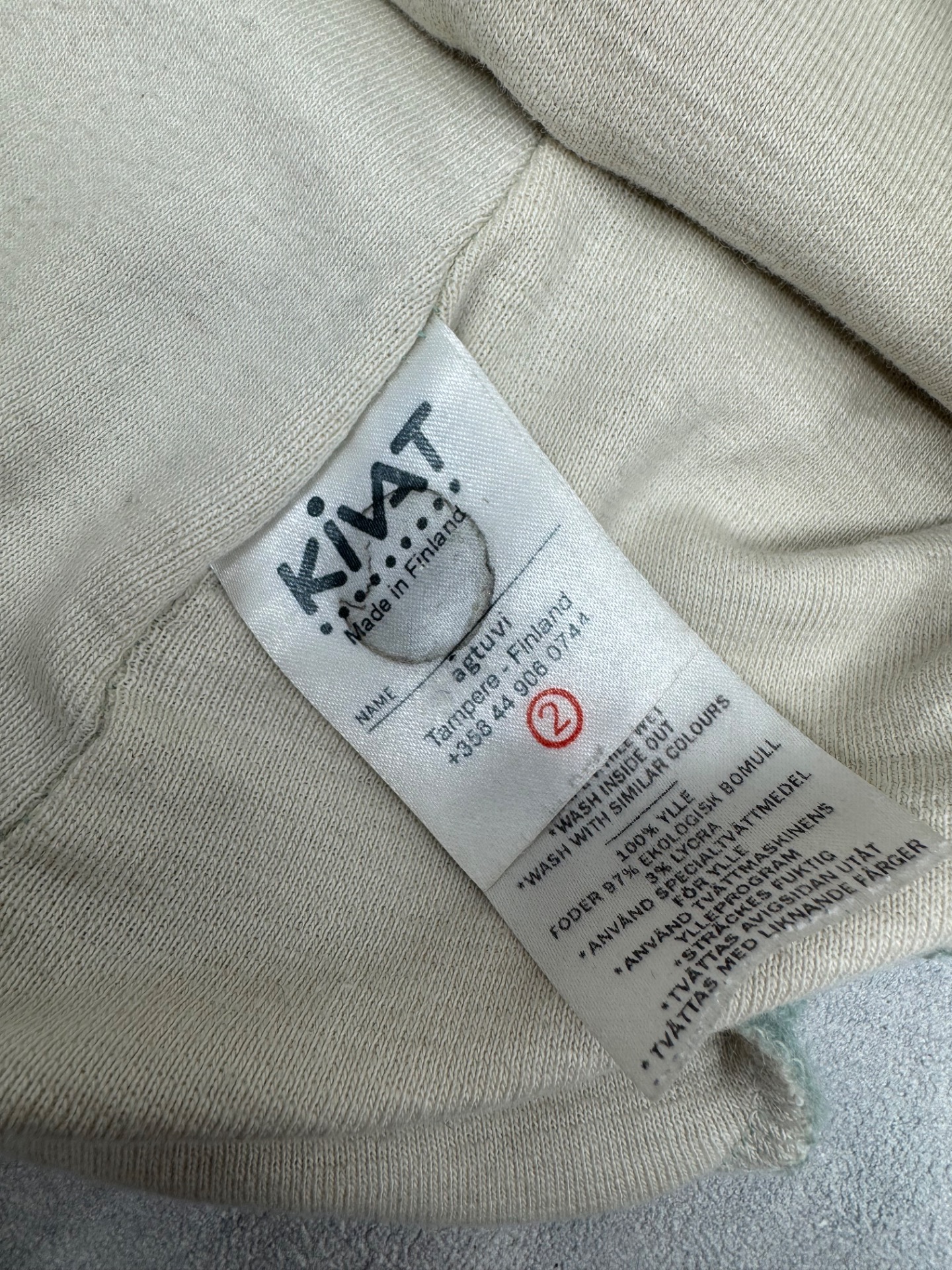 Hyväkuntoinen, erittäin pehmeä ja lämmin Kivatin kypärämyssy. Päällinen 100% villaa, vuori puuvillaa. Hajusteeton.