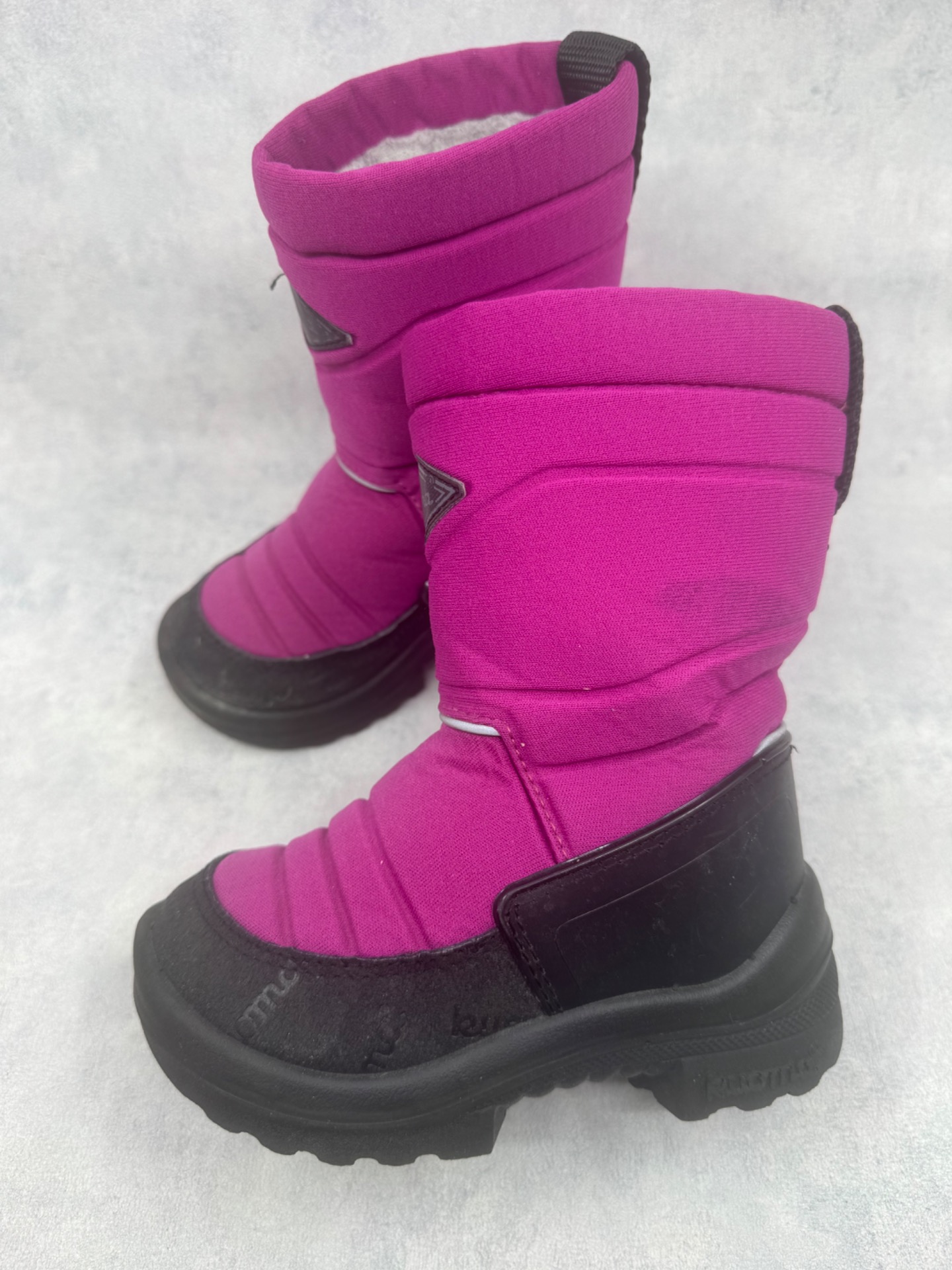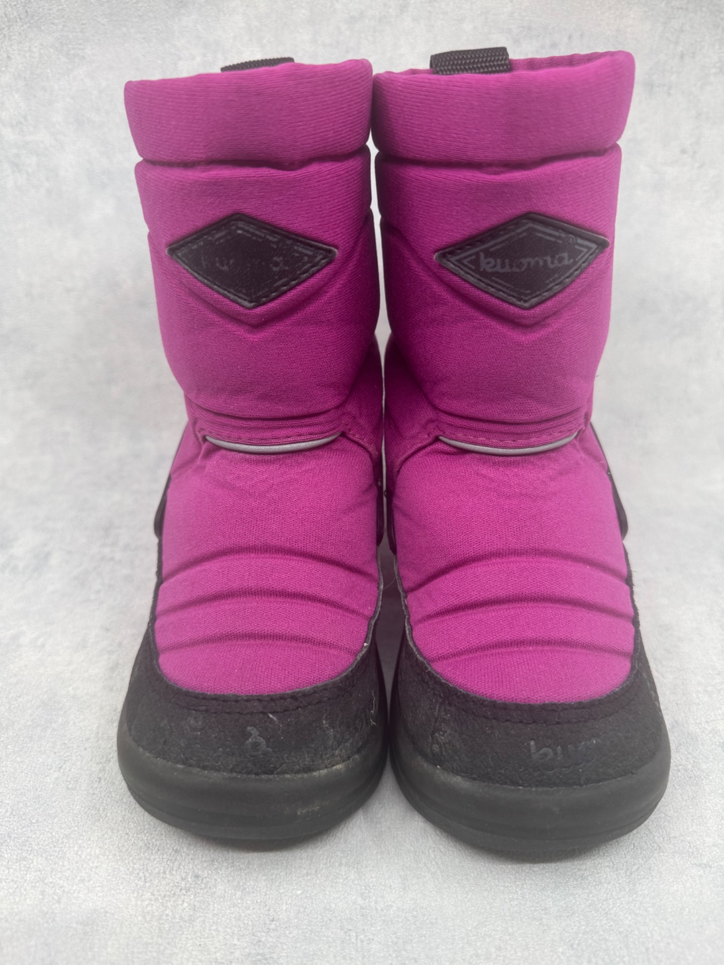 Erittäin hyväkuntoiset Kuoma talvisaappaat lämpimällä villavuorella. Vuori erinomaisessa kunnossa, muhkea, pehmeä ja ovat varmasti lämpimät kengät seuraavalle pienelle. Toinen pohjallisista ei ole alkuperäinen.