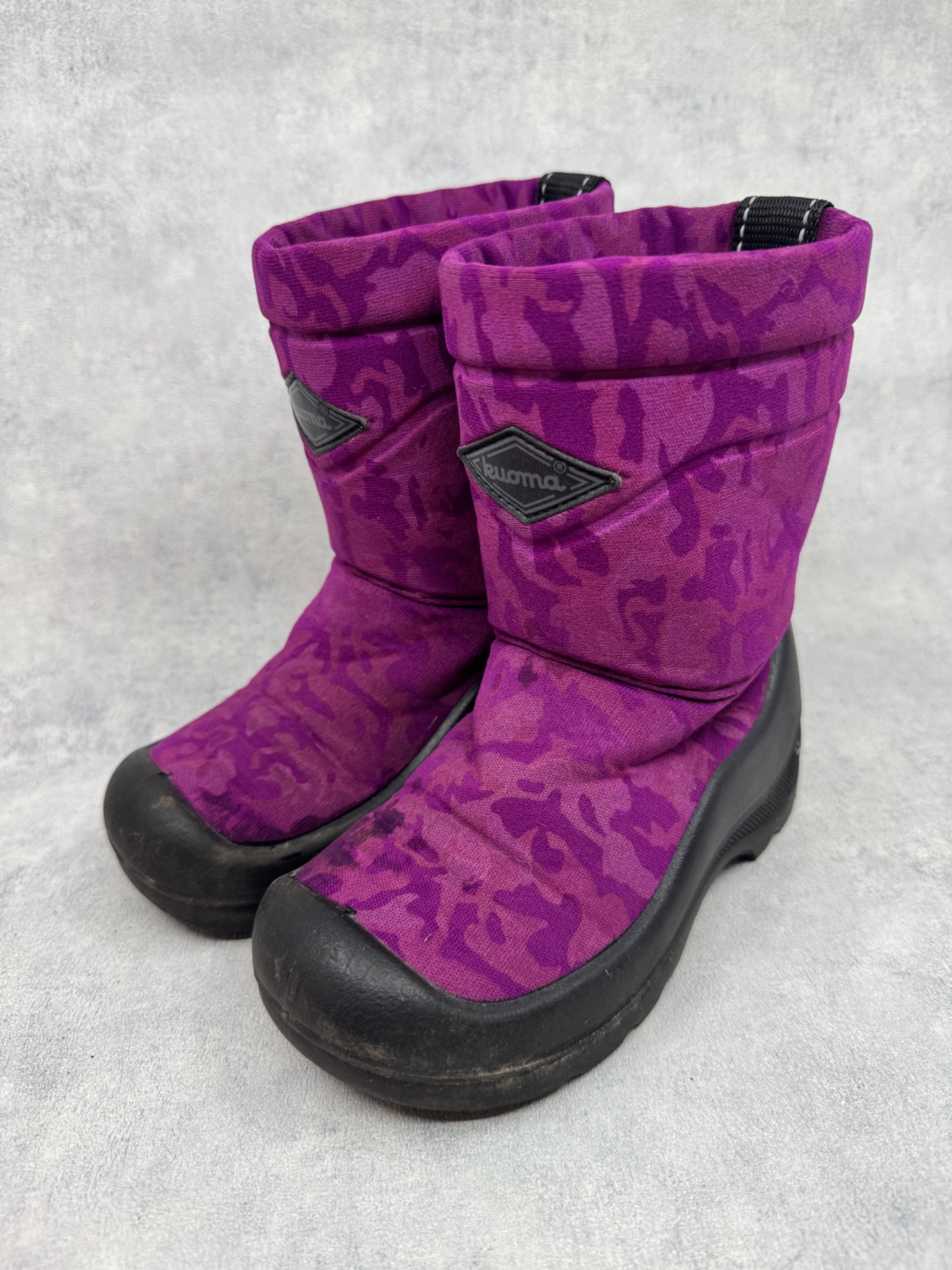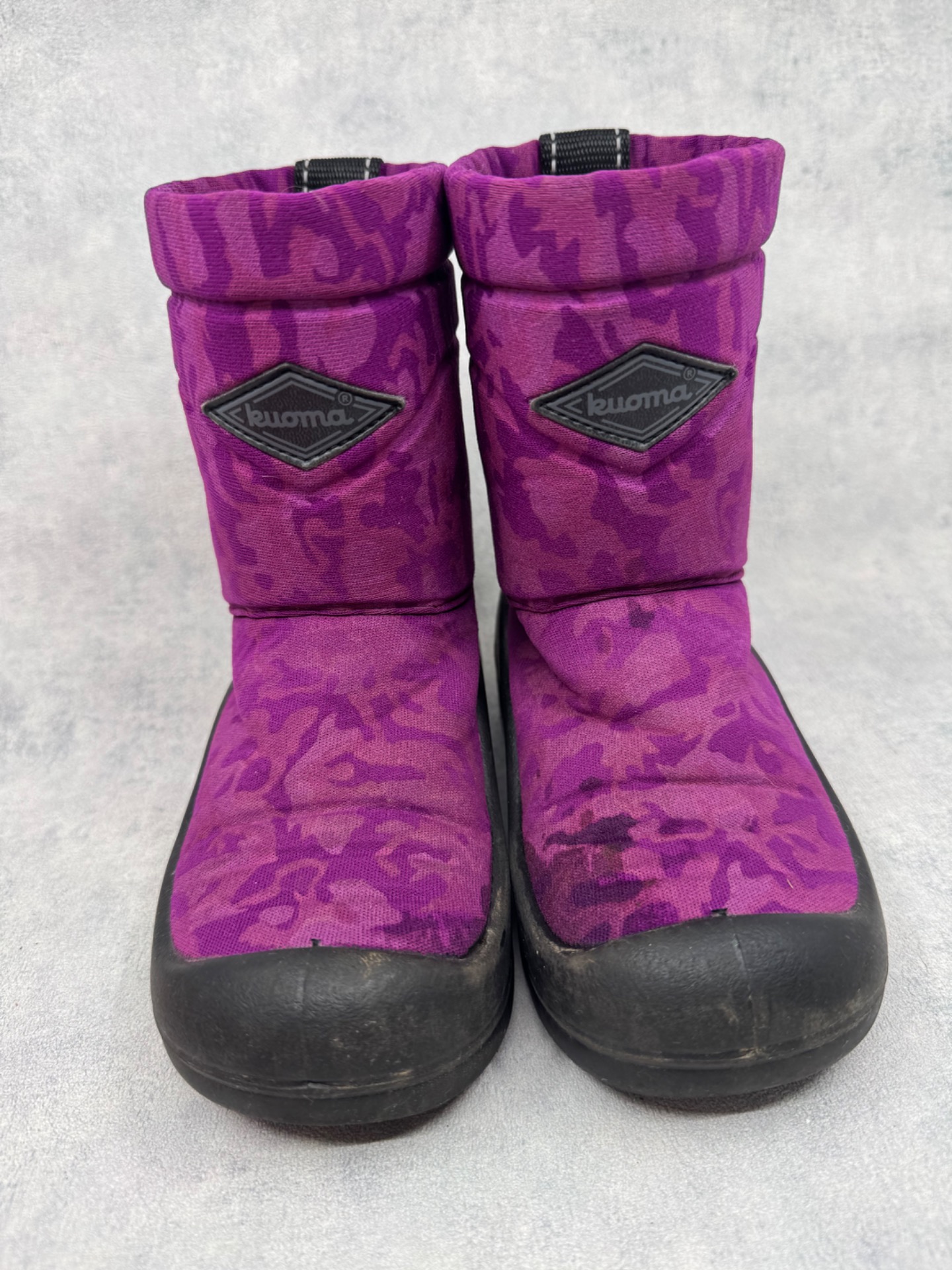 Hyväkuntoiset Kuoma Lumi talvisaappaat. Vuori uudesta painunut, mutta ovat varmasti lämpimät kengät seuraavalle pienelle. Yleisilme erittäin siisti, ei kulumaa.