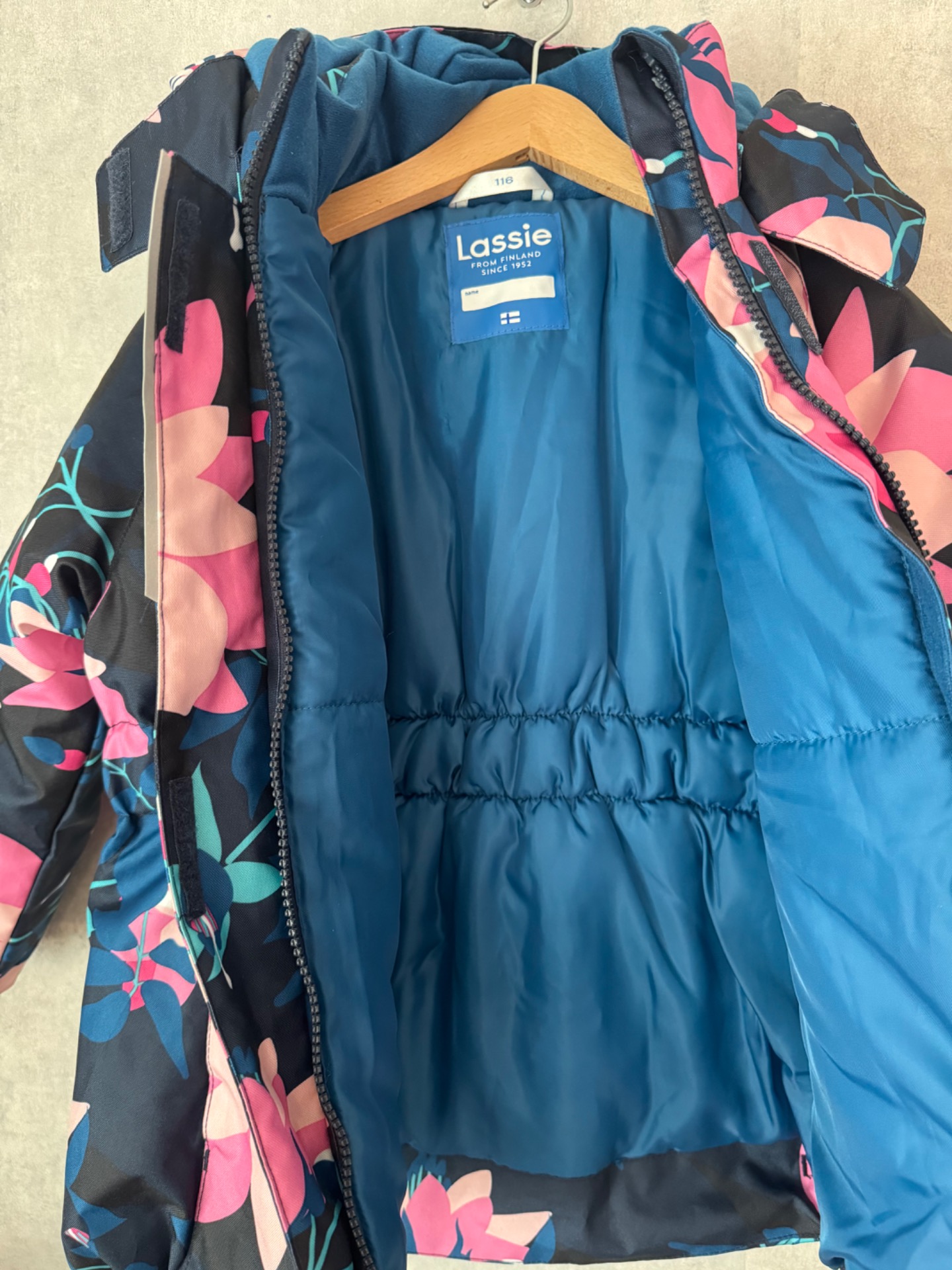 Uudenveroinen Lassien talvitakki. Takissa ei olel lainkaan käytönjälkeä ja se vaikuttaa käyttämättömältä. Todella muhkea, uudenkarhea ja varmasti erittäin lämmin. Vedenpitävät ominaisuudet kauttaaltaan tallella, testattu. Edessä taskut tarrakiinnityksellä. Tämä takki pitää lämpimänä myös kovemmilla pakkasilla. Hajusteeton.