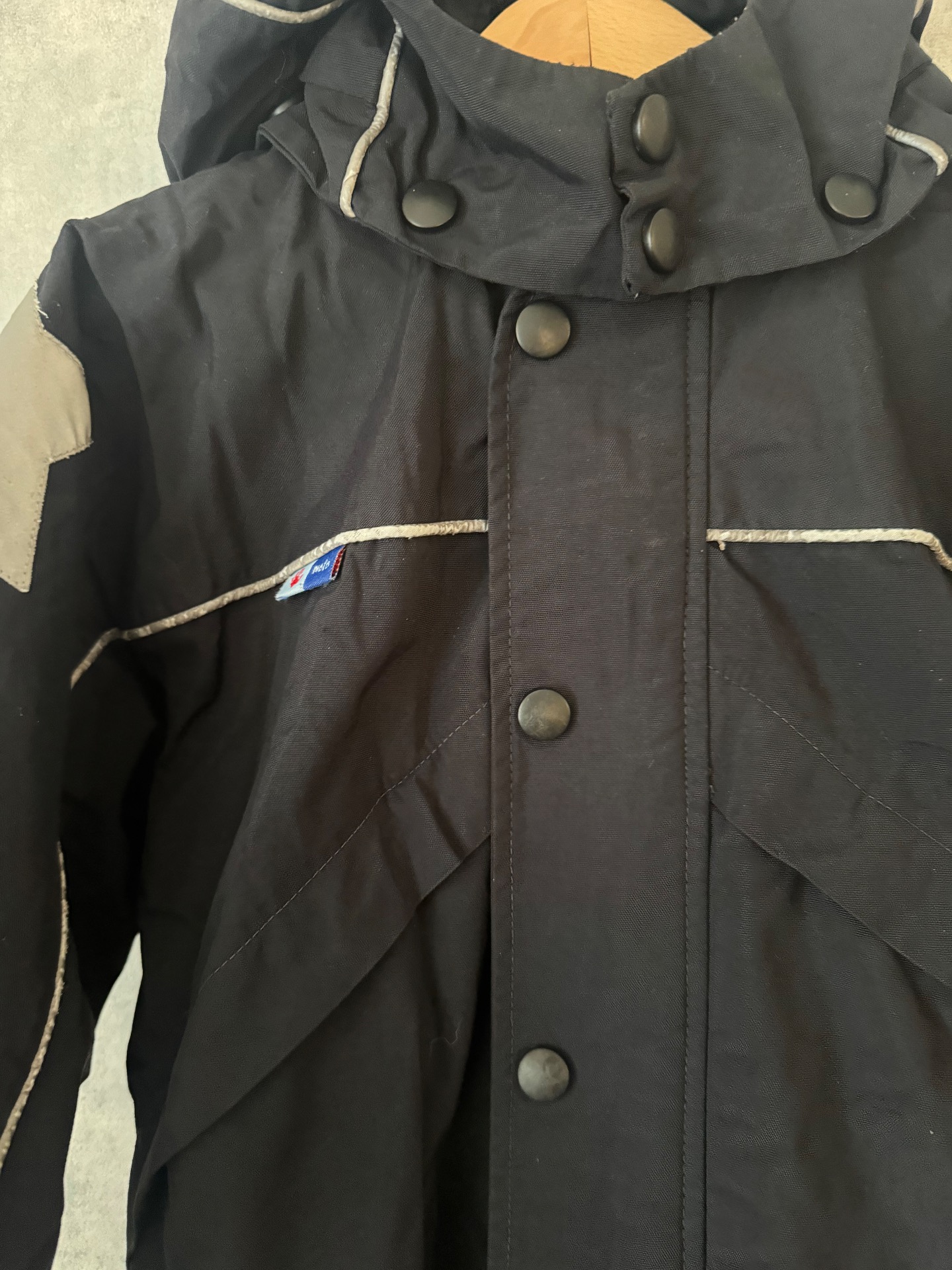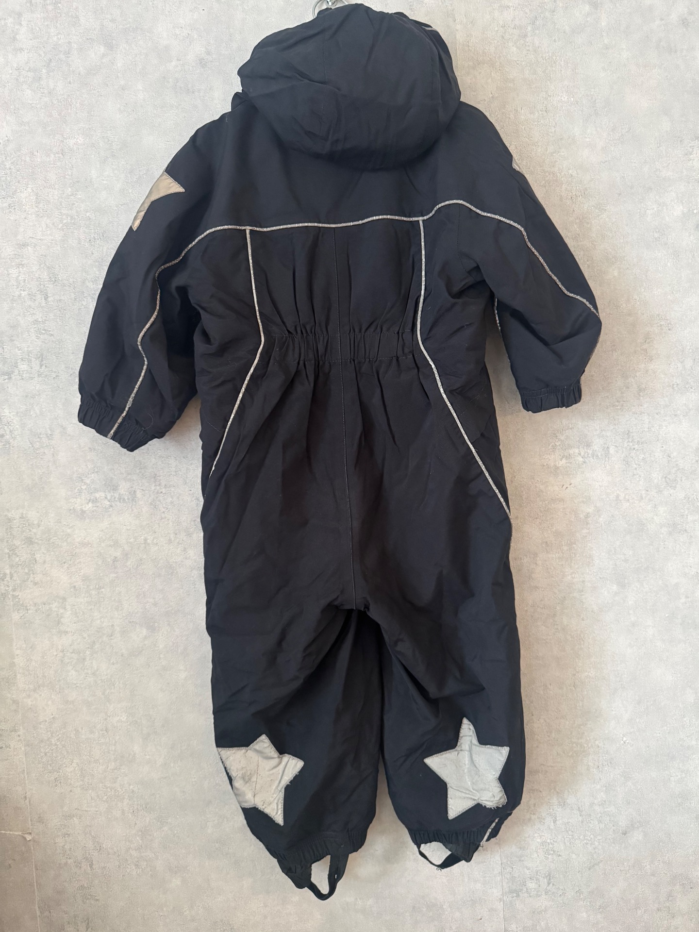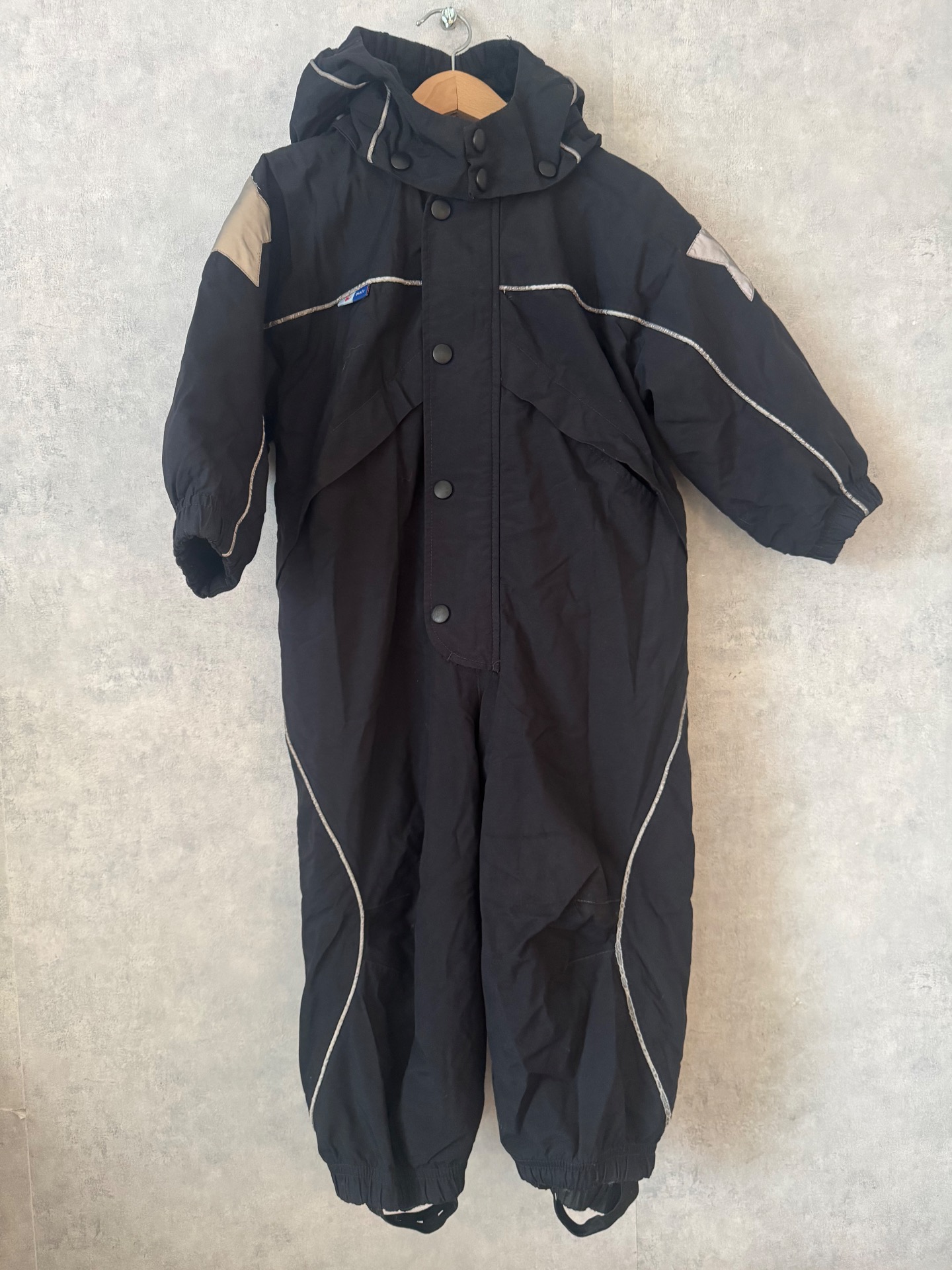 Hyväkuntoinen Molon musta toppahaalari. Reilusti uudesta ohentunut, mutta oikein mainio kevyttoppahaalariksi. Käytönjälkeä löytyy reilusti heijastimista, sekä polvissa hieman pehmentymää. Ylesilme siisti. Jalkalenkit hyvässä kunnossa. Hajusteeton.