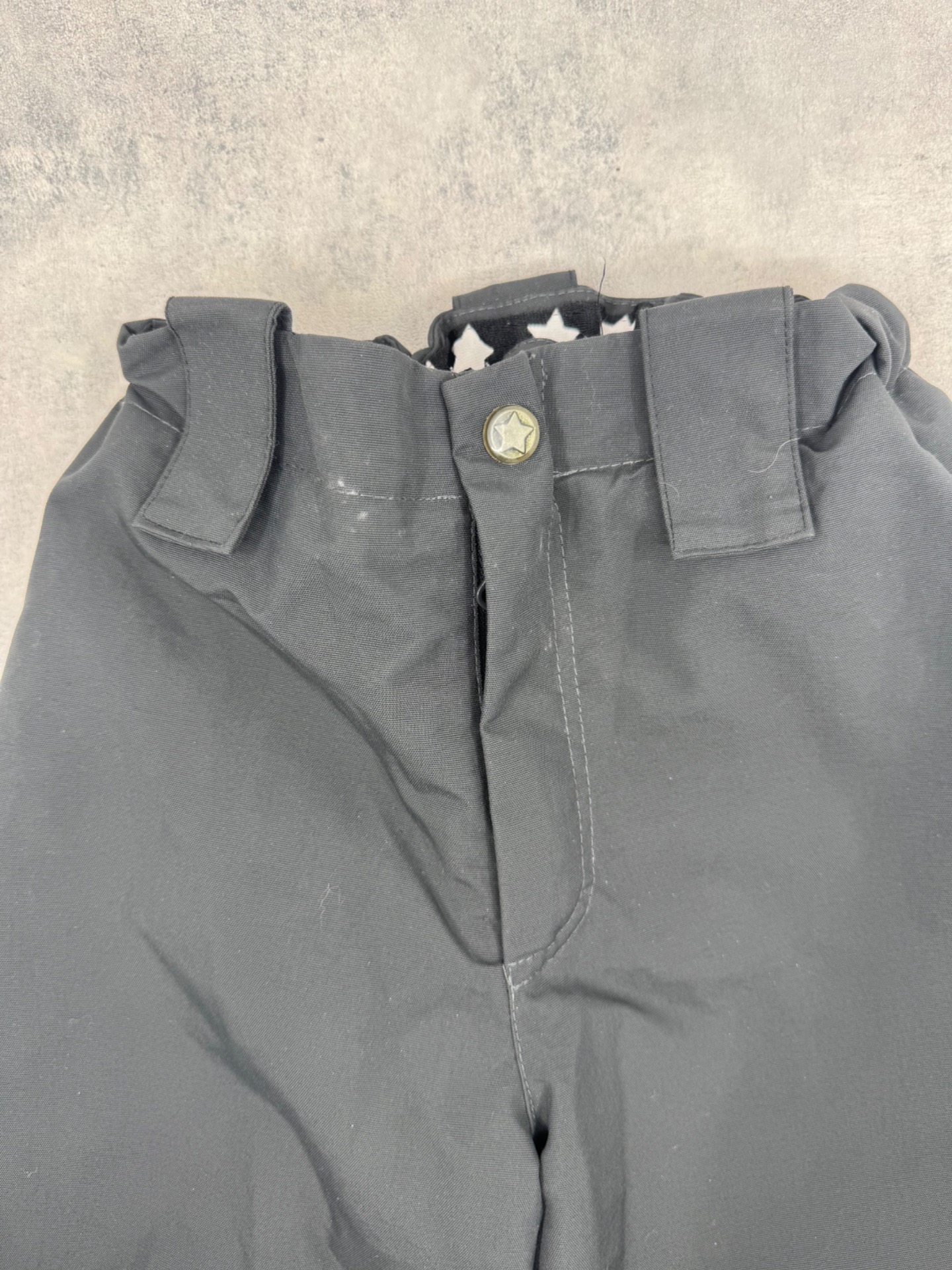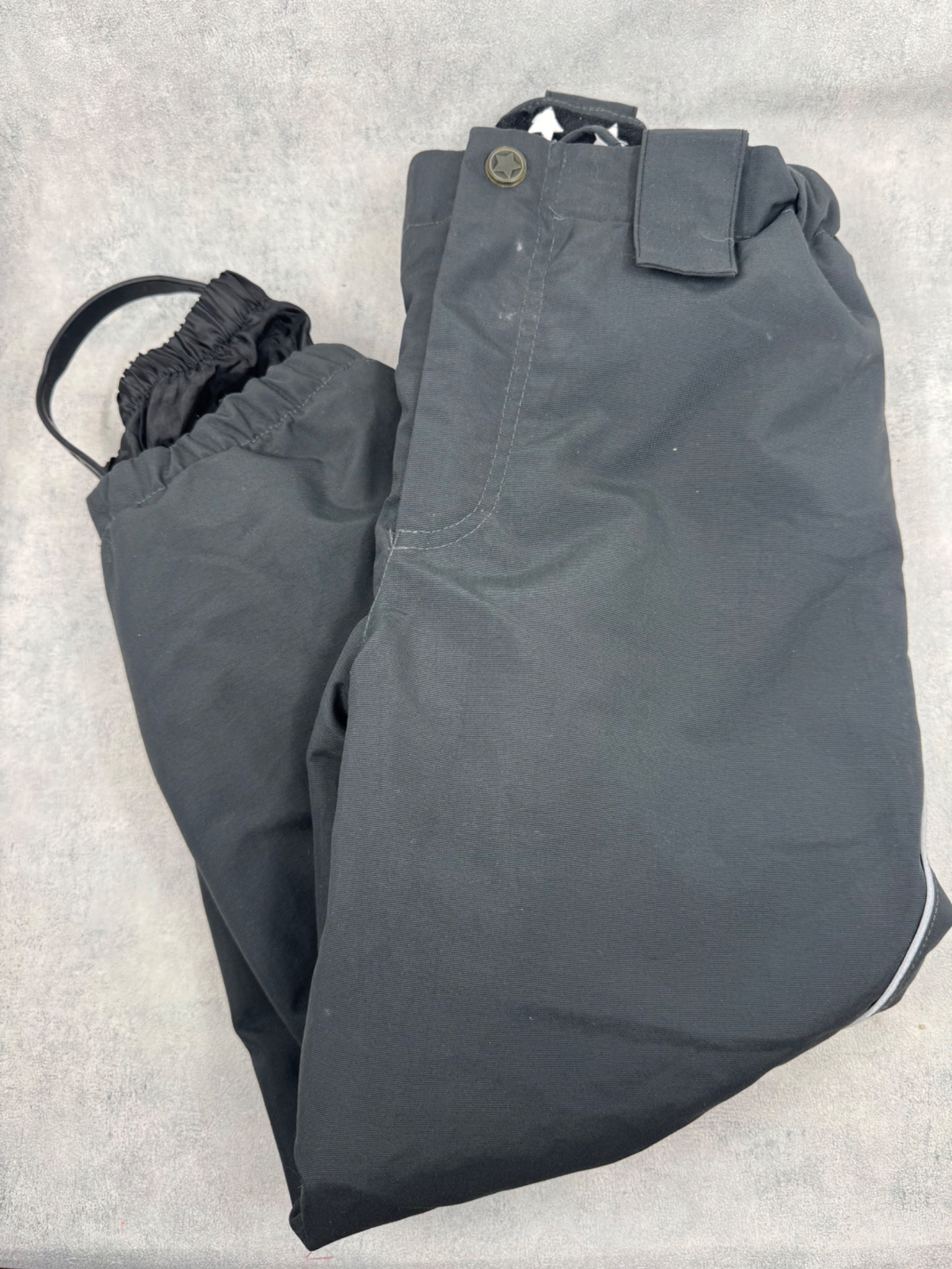 Erittäin hyväkuntoiset, lähes uudenveroiset Molon Pollux Active toppahousut. Väri tummanharmaa. Housuissa on takamuksen kohdalla lämmin vuori, vyötäröllä kiristettävä kuminauha, lahkeissa lumilukot ja silikoniset jalkalenkit. Polvissa tai pepussa ei ole kulumaa tai pehmentymää, housut vaikuttavat vähän käytetyiltä. Muhkeat ja varmasti erittäin lämpimät. Ominaisuudet tallella, testattu, kangas kauttaaltaan vettähylkivää. Hajusteettomat.