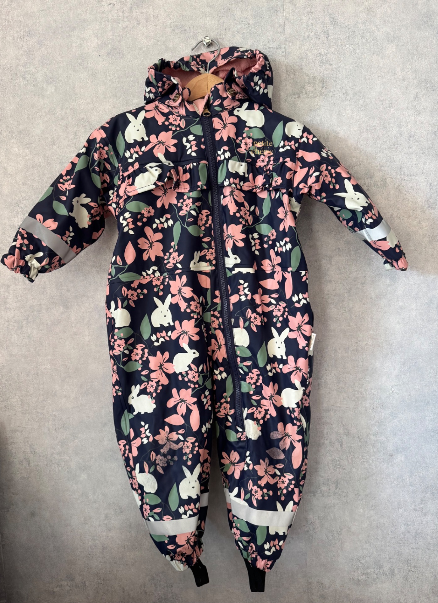Erittäin hyväkuntoinen Petite Cherie kurahaalari lämpimällä fleecevuorella. Kunto lähes uudenveroinen, ainoastaan polvien kohdalta värissä haalistumaa, mutta kankaassa ei kulumaa. Kangas testattu vedenpitäviksi polvien kohdalta juoksevan veden alla.