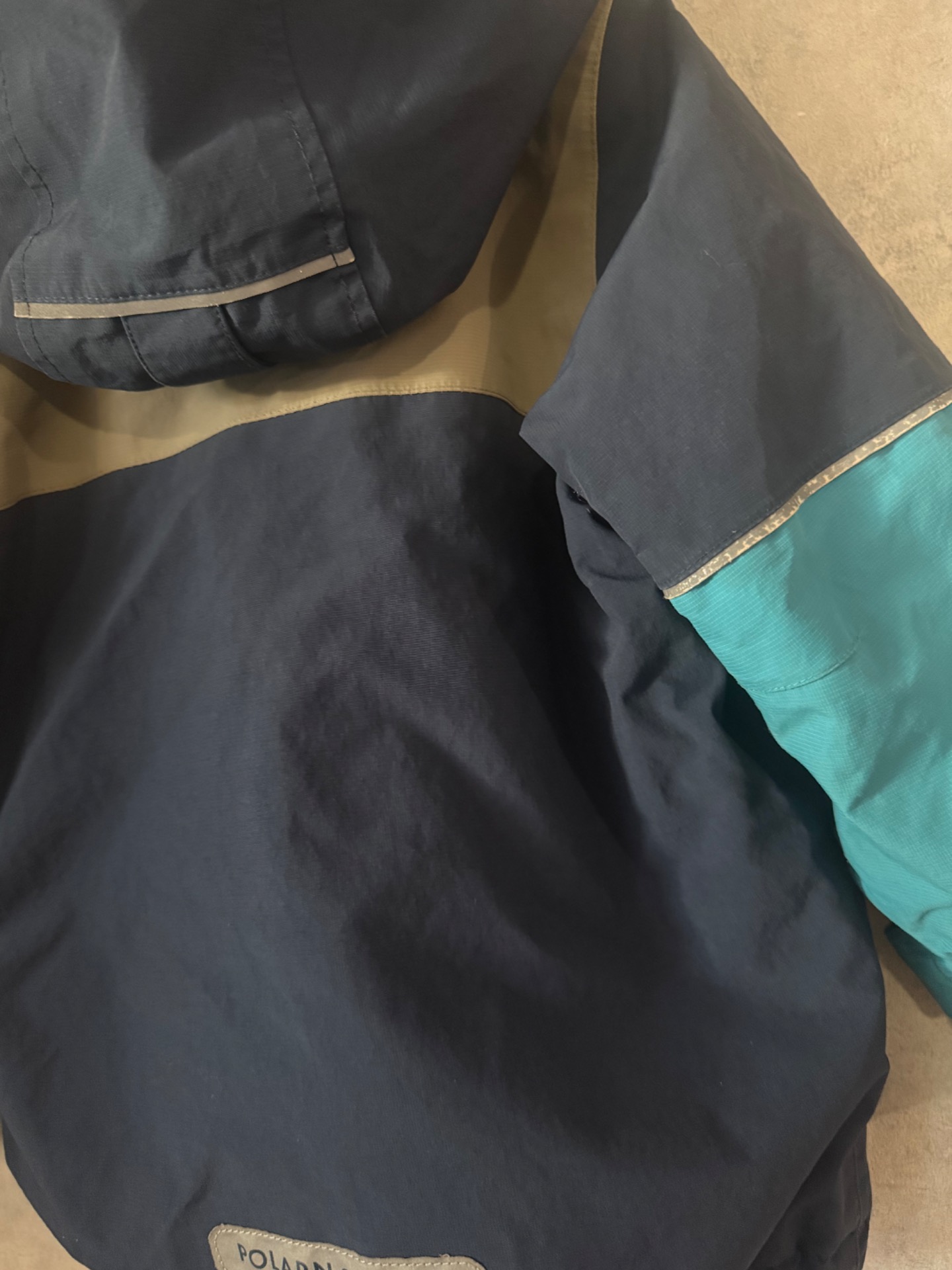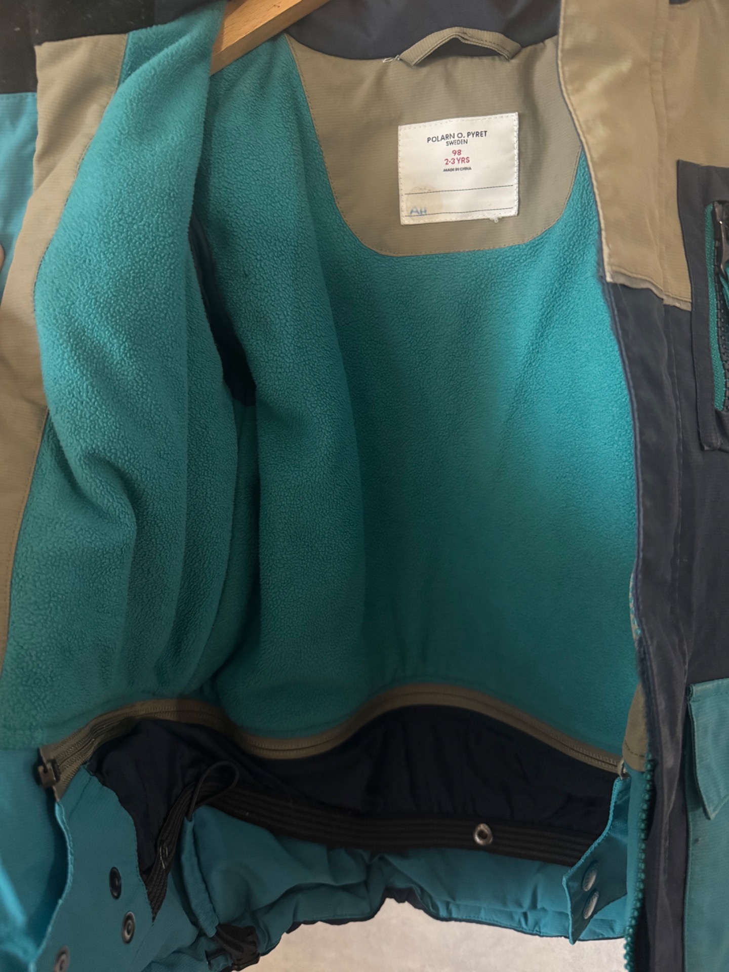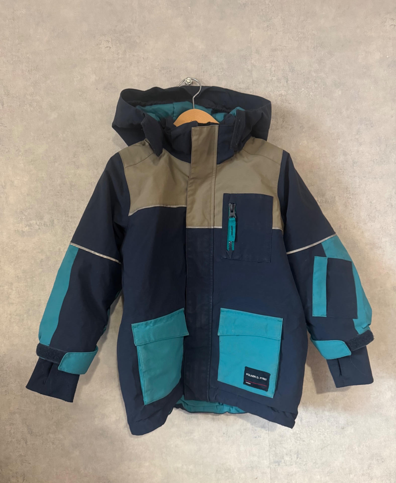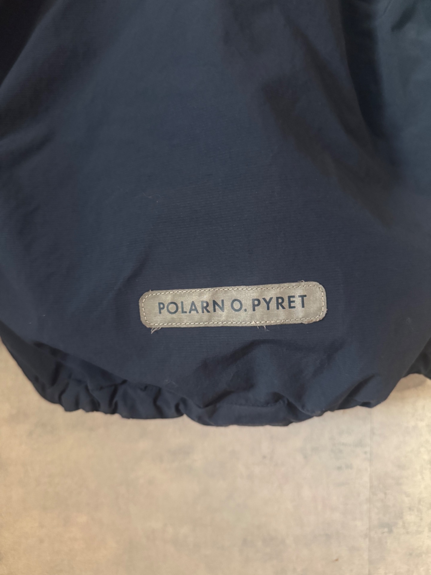 Hyväkuntoinen Polarn O.Pyret toppatakki lämpimällä fleecevuorella. Vedenpitävät ominaisuudet tallella, testattu. Kangas on vettähylkivää. Takin etuosassa on haalistumaa, kts. kuva, mutta muutoin oikein siisti ja hyvä kunto, uudenkarhea ja varmasti lämmin.
