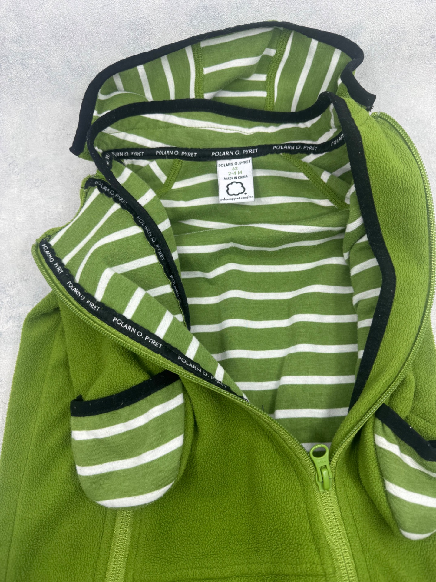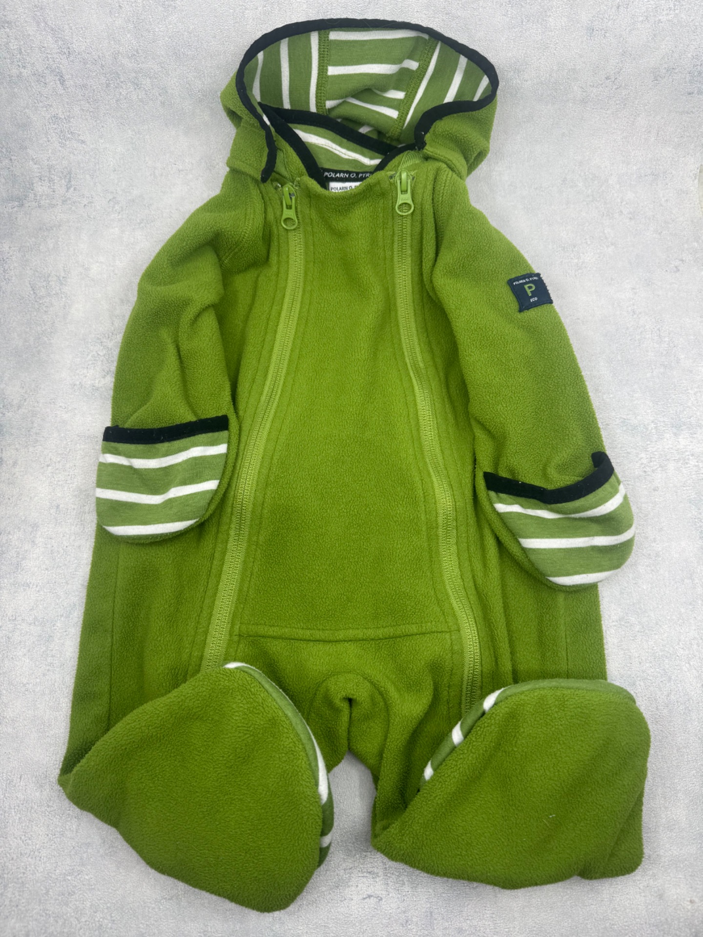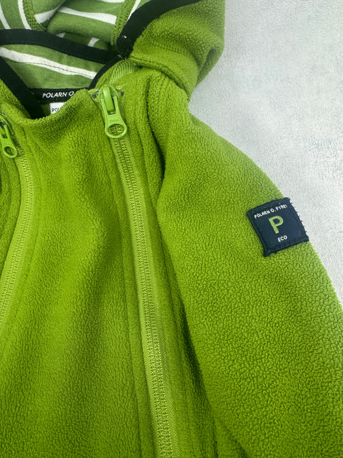 Hyväkuntoinen,tuulenpitävä pehmeä ja lämmin Polarn O.Pyret windfleecehaalari. Käännettävät hihan-ja lahkeensuut. Hajusteeton.
