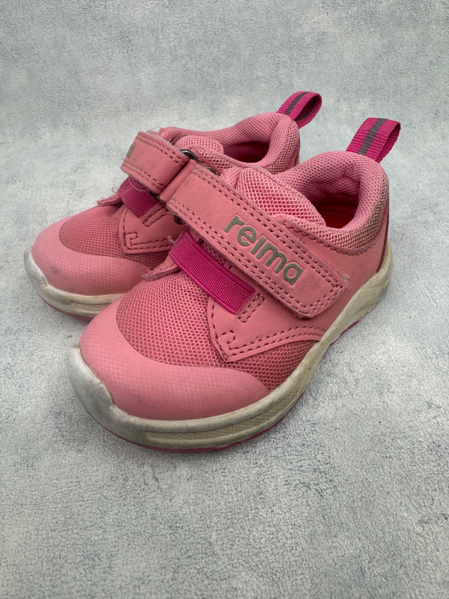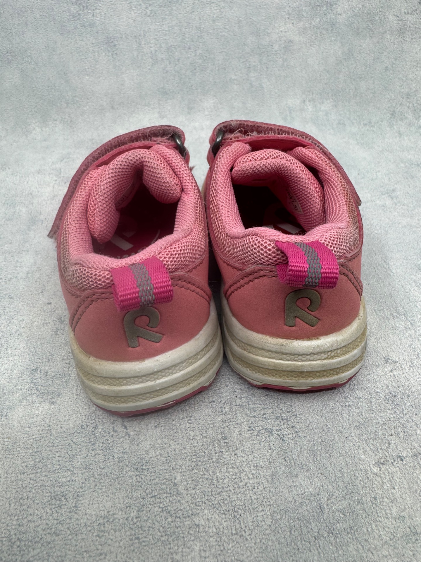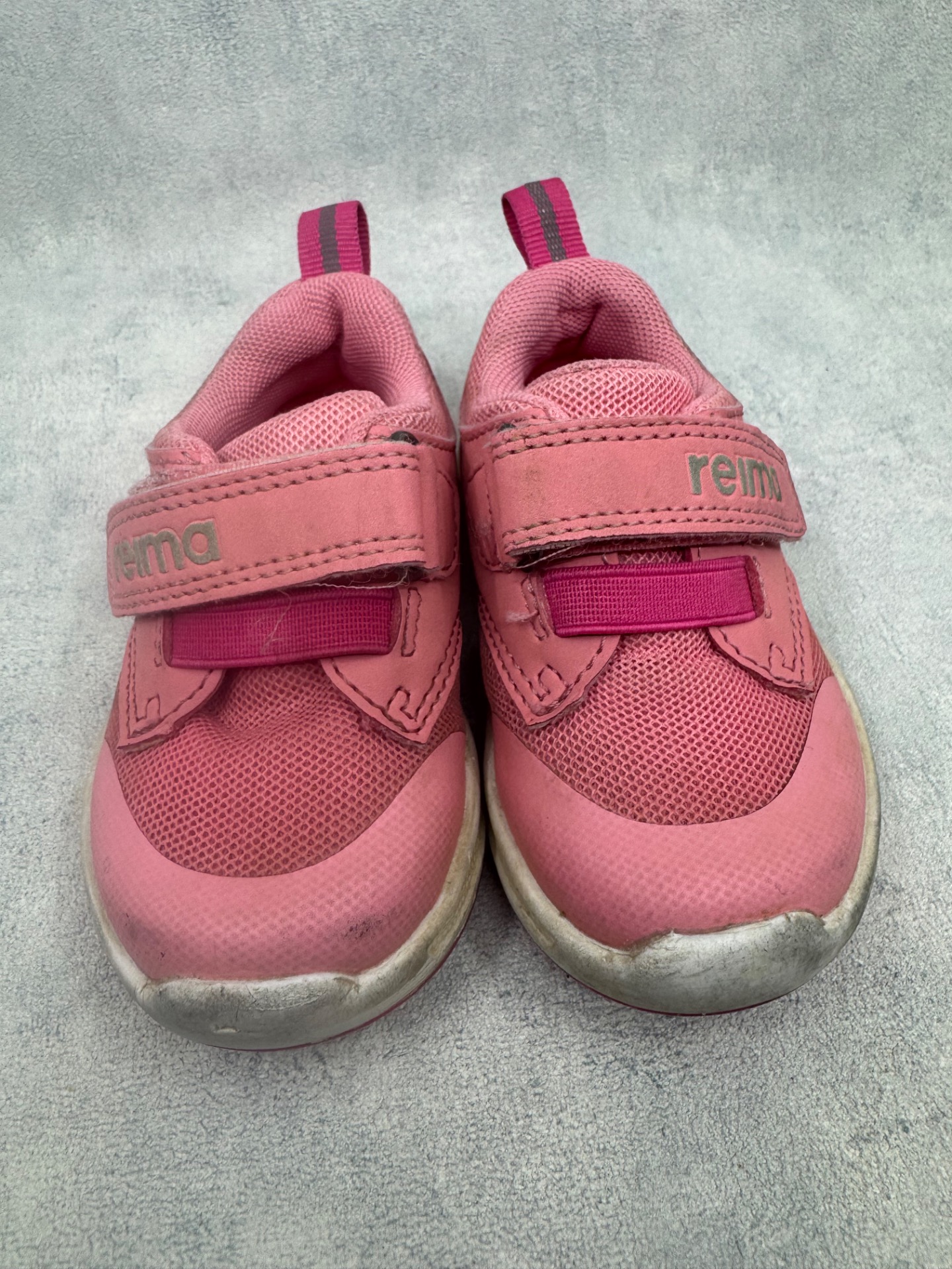 Erittäin hyväkuntoiset, selvästi vähän käytetyt Reiman lenkkarit. Kärjissä hieman tummentumaa sekä pientä kulumaa, mutta on käytössä hyvin huomaamatonta. Tarrat pitää erinomaisesti.