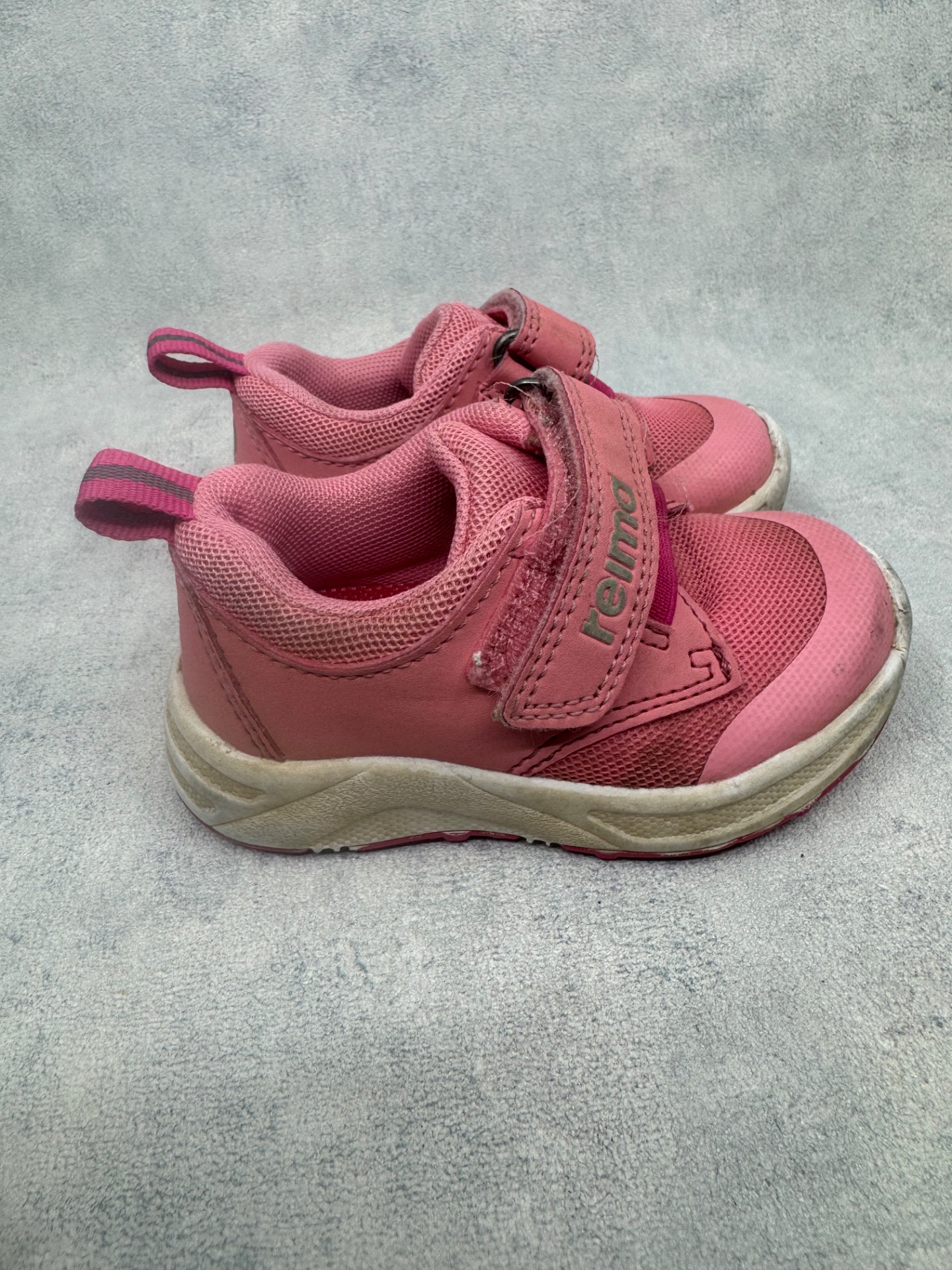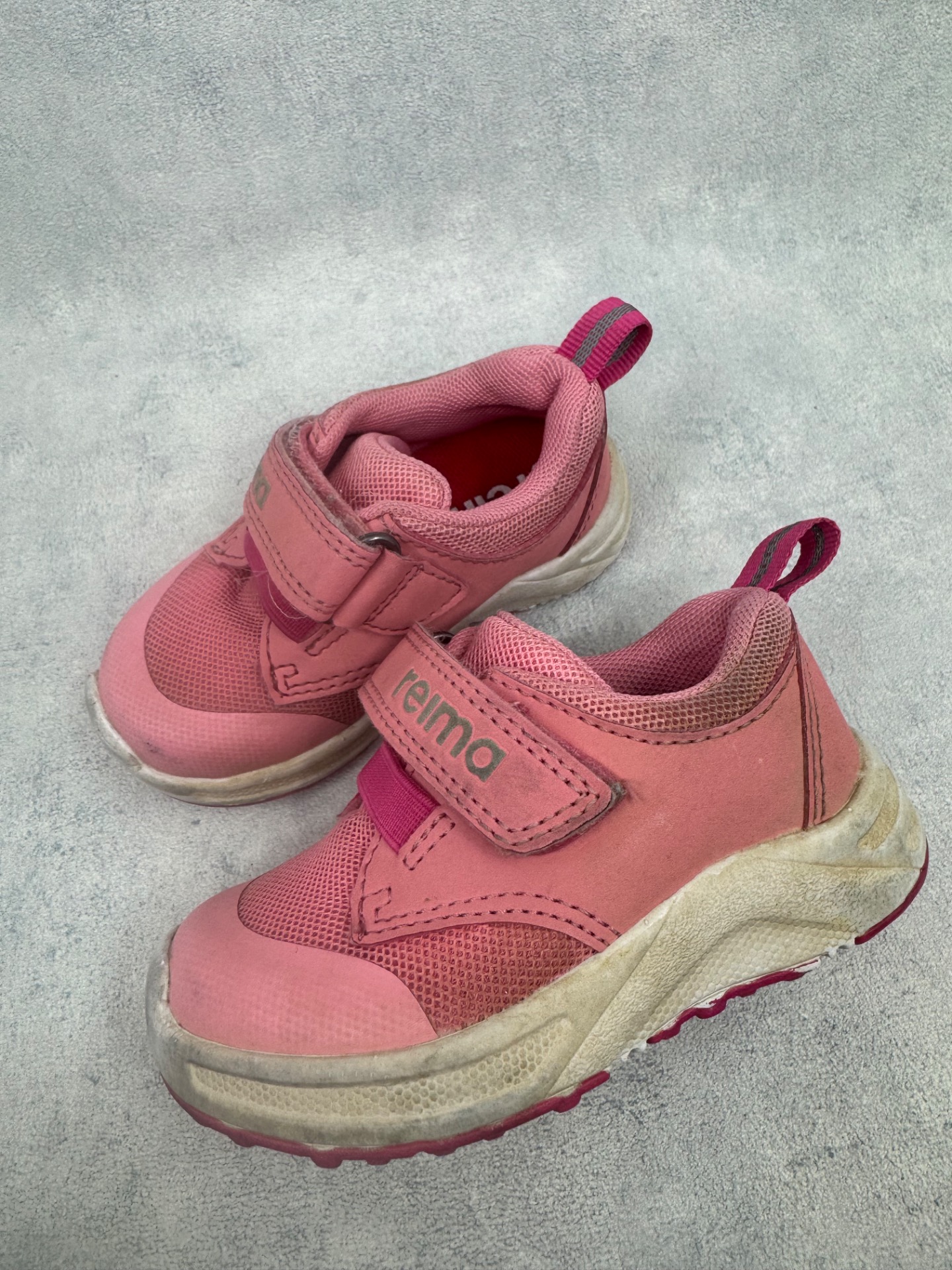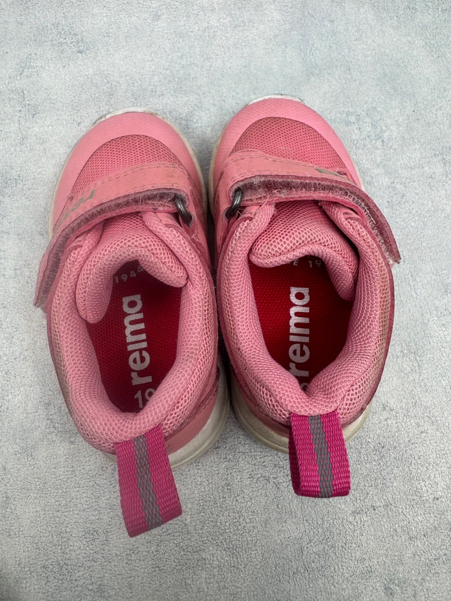 Erittäin hyväkuntoiset, selvästi vähän käytetyt Reiman lenkkarit. Kärjissä hieman tummentumaa sekä pientä kulumaa, mutta on käytössä hyvin huomaamatonta. Tarrat pitää erinomaisesti.