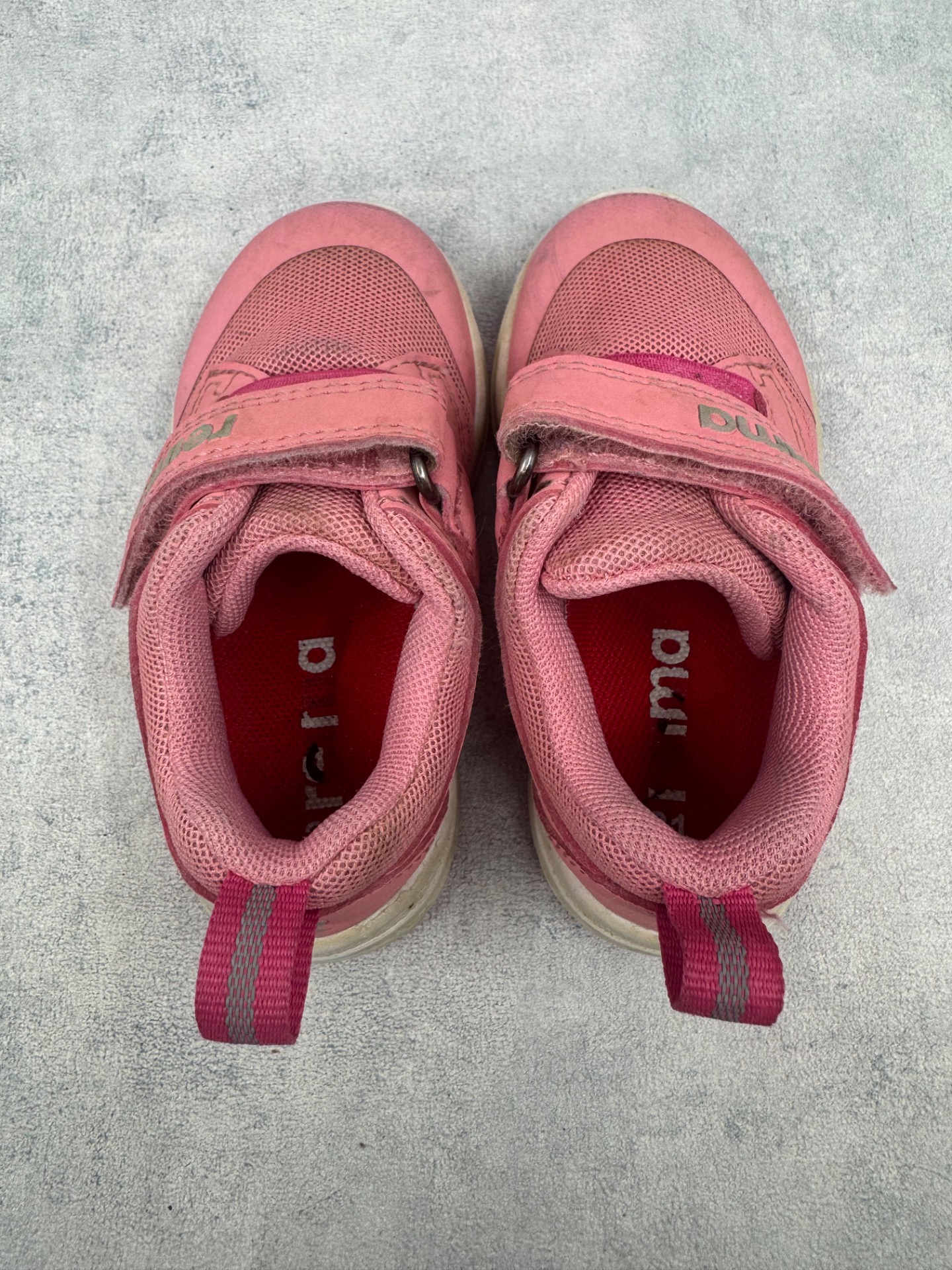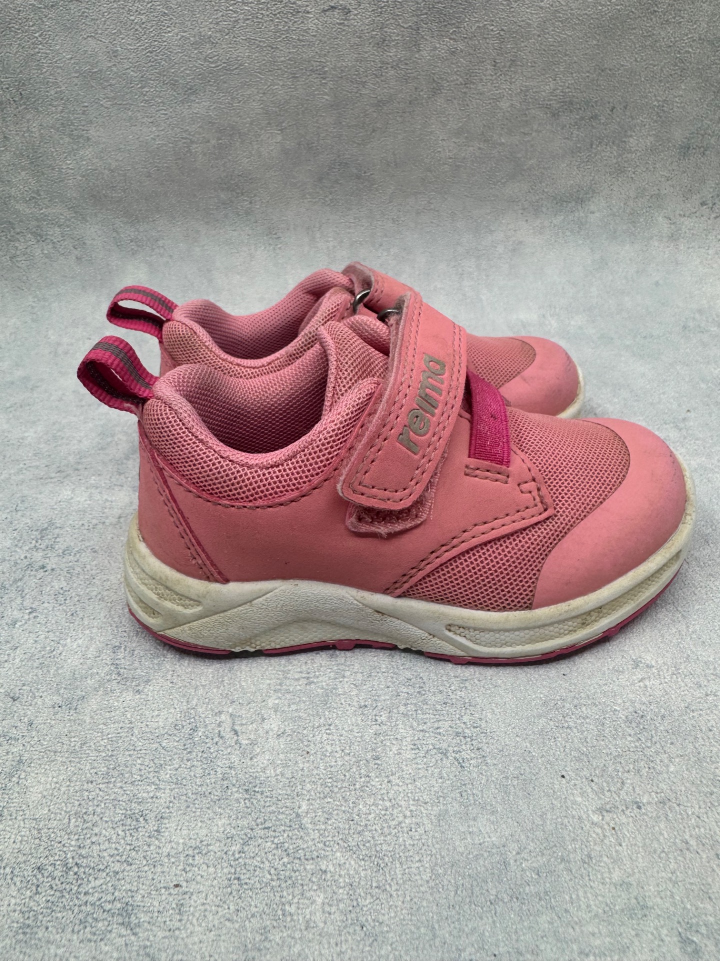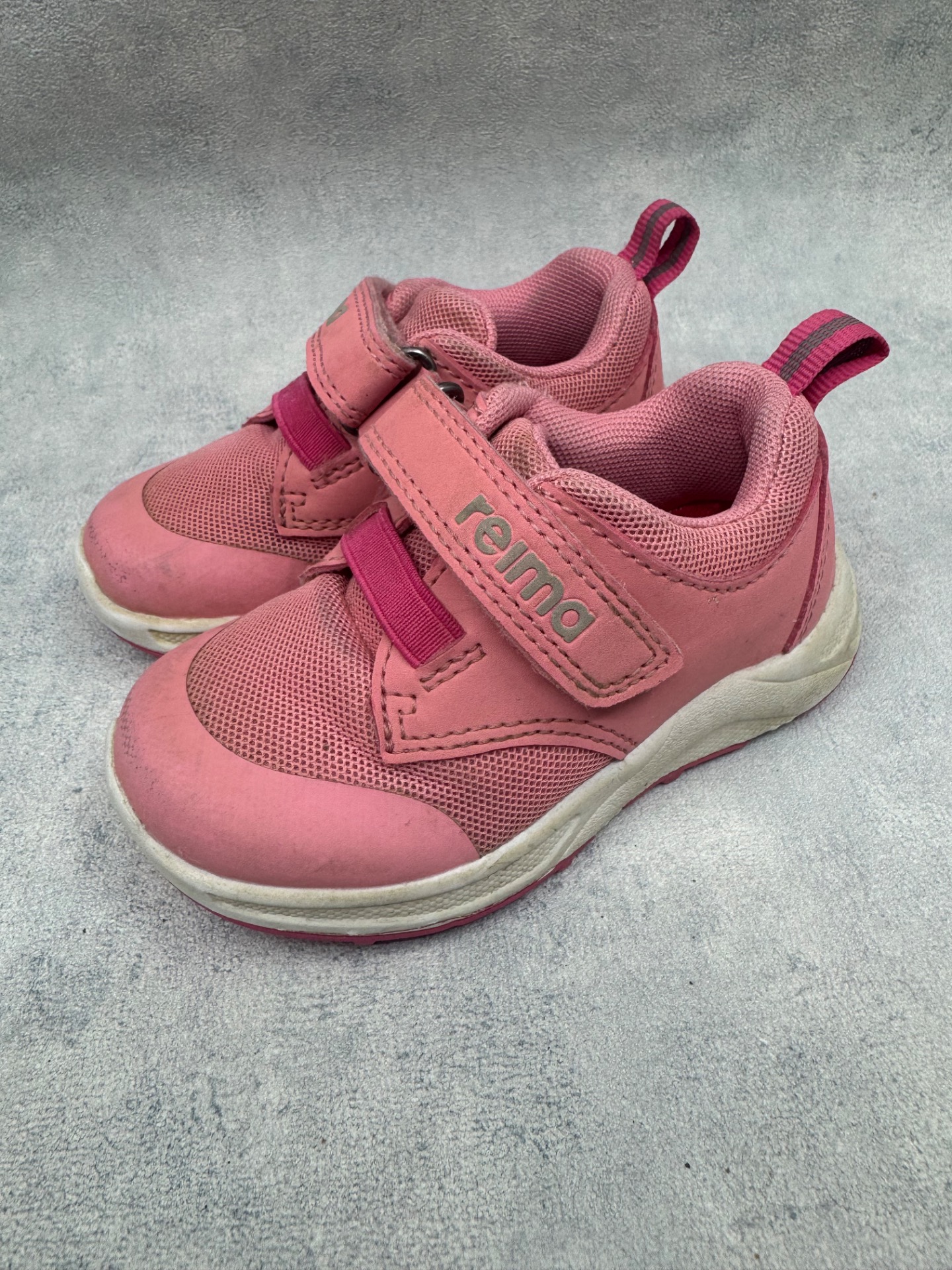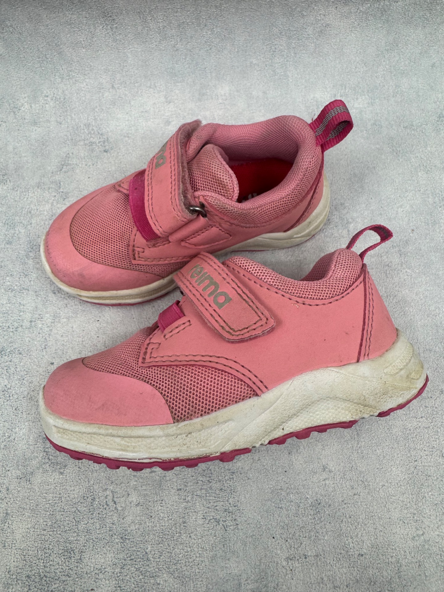 Erittäin hyväkuntoiset Reiman lenkkarit. Pientä käytönjälkeä, mutta selvästi vähän käytetyt kengät. Tarrat pitää erinomaisesti.