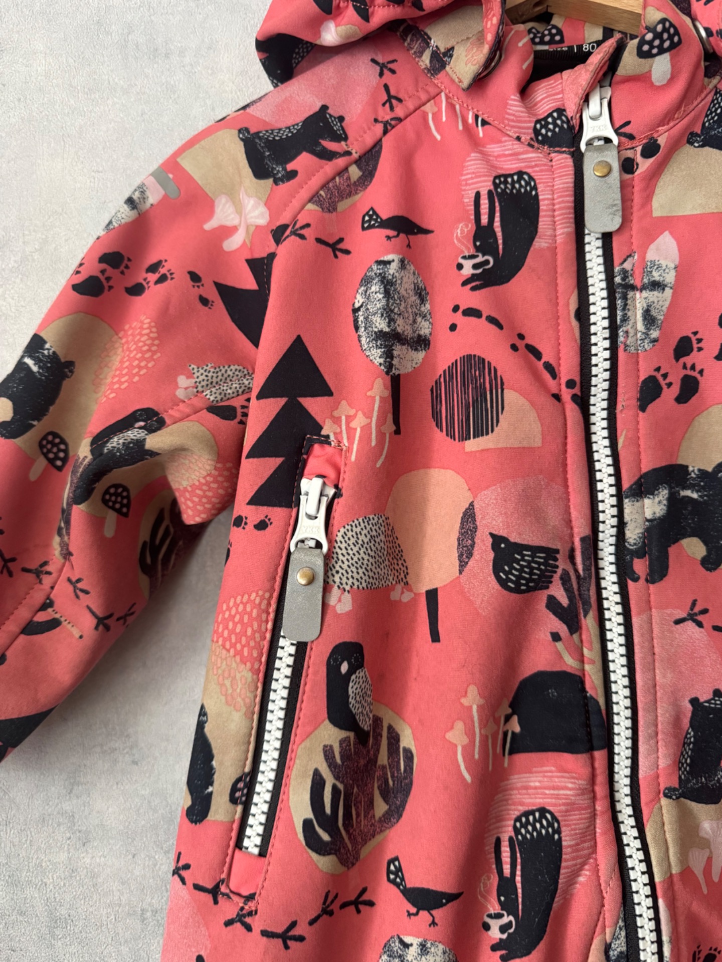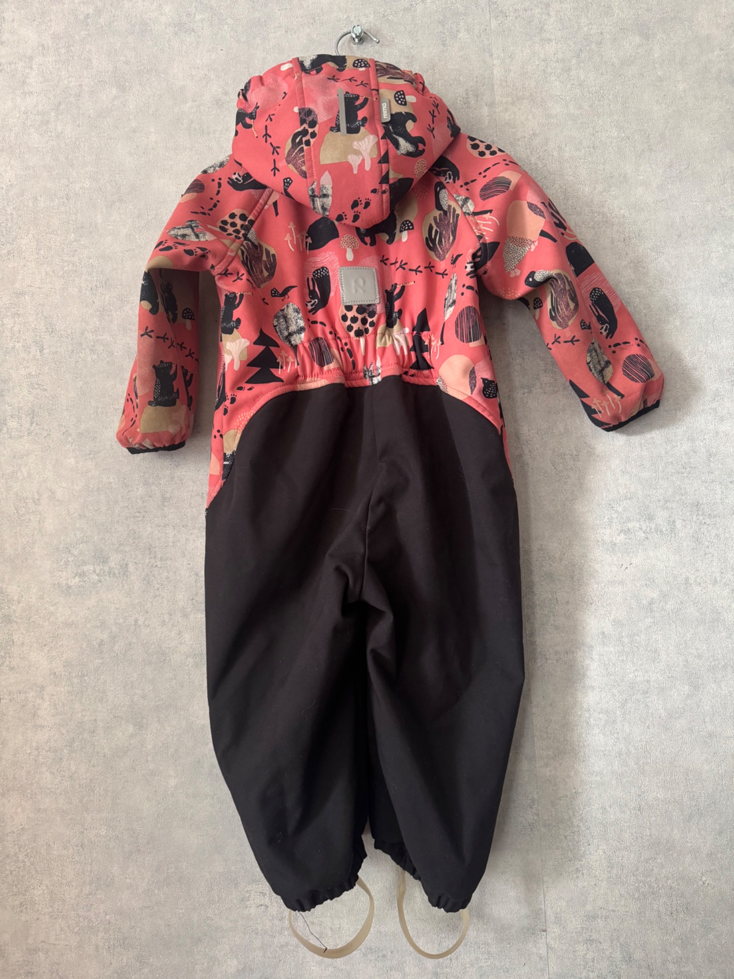 Erittäin hyväkuntoinen Reiman softshellhaalari. Mukava, lämmin, vedenpitävä välikausihaalari pienelle. Silikoniset jalkalenkit. Hajusteeton.