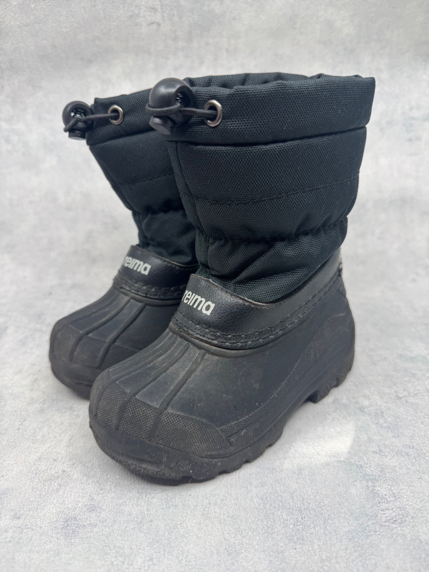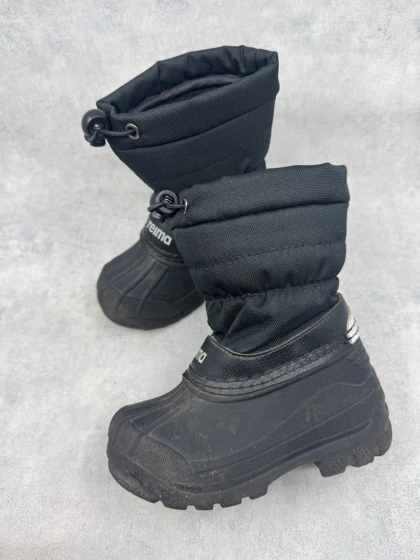 Erittäin hyväkuntoiset, lähes uudenveoiset mustat Reiman Nefar loskarit. Hieman käyttölikaa pinnassa, muttei kulumaa. Sisällä lämmin vuori, erinomaisessa kunnossa ja pehmeä, vain tyypillisesti hieman nukkaantunut. Reiman mukaan nämä