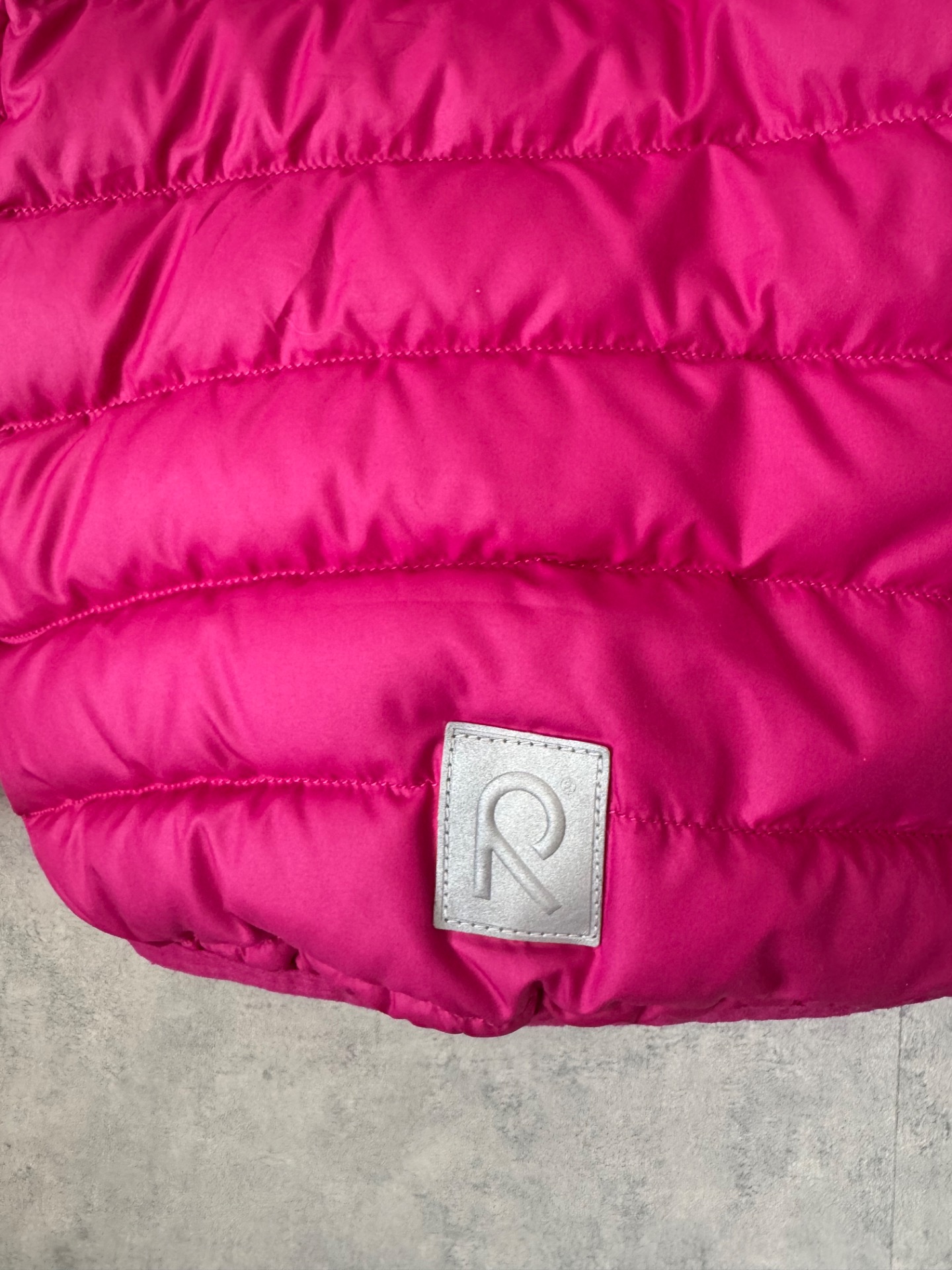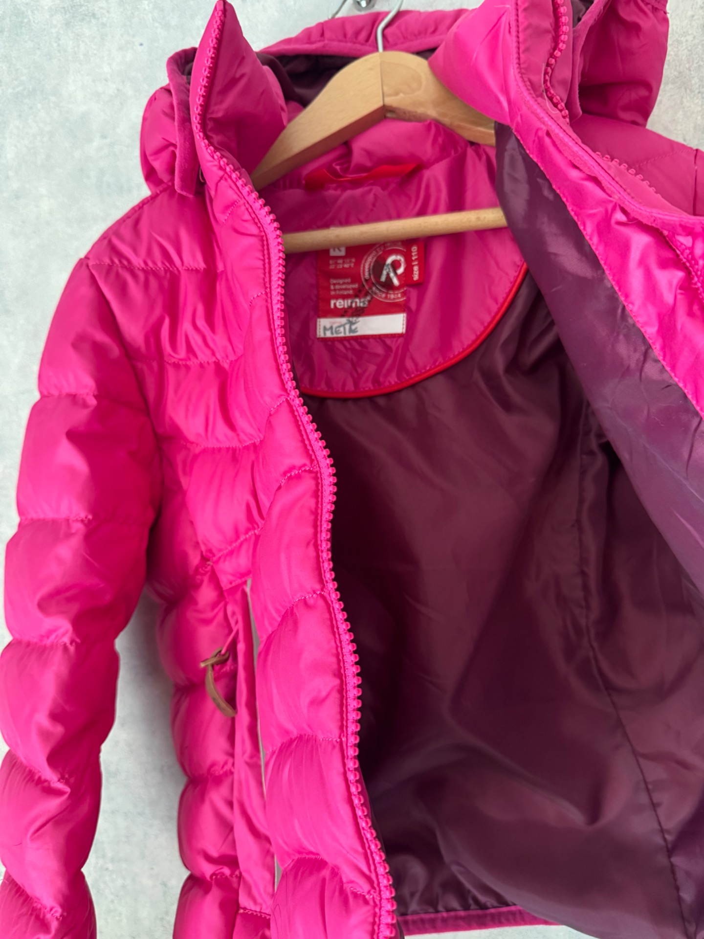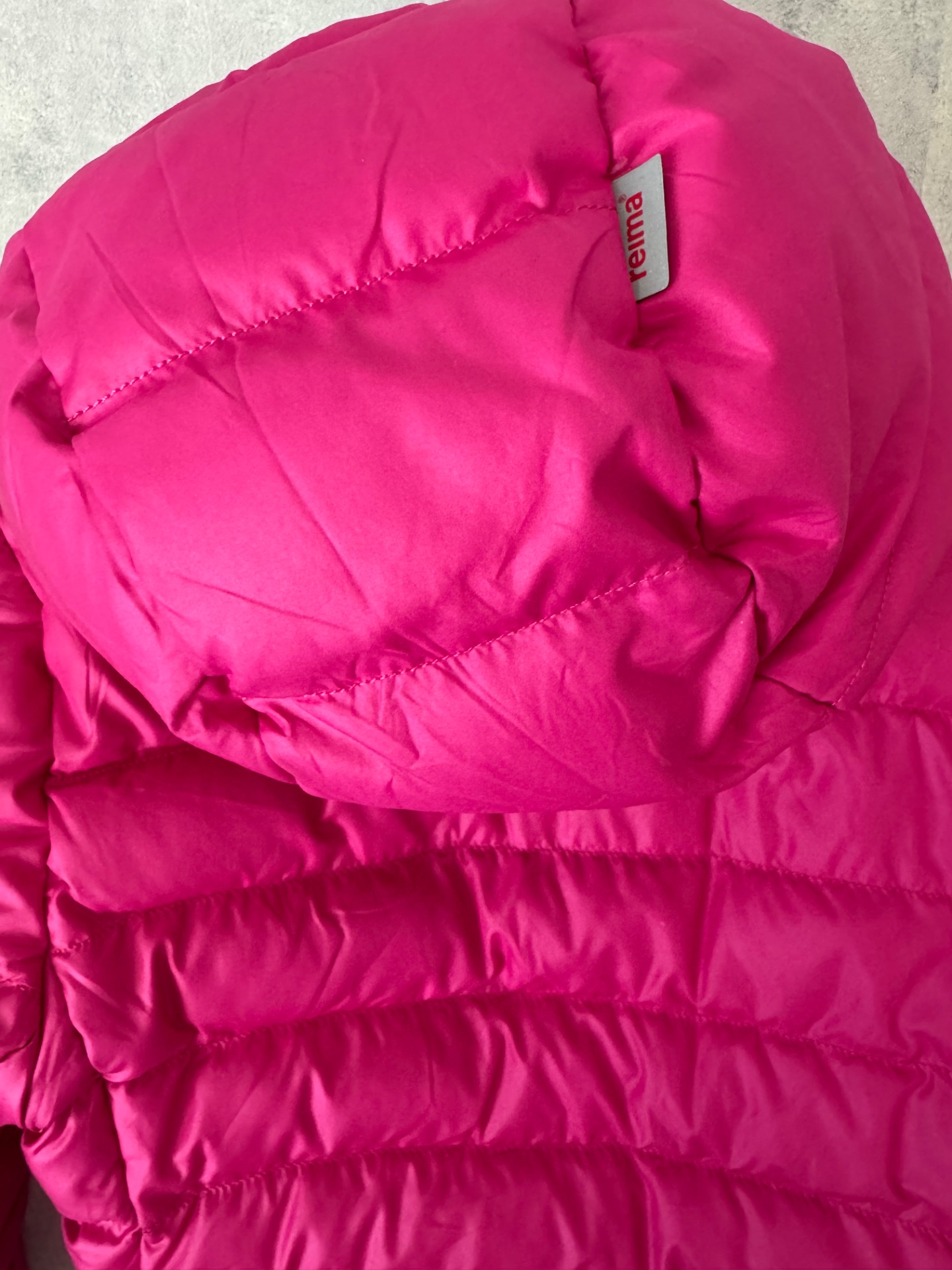 Erittäin hyväkuntoinen Reiman pinkki talvitakki. Ei kulumaa. Muhkea ja varmasti lämmin. Hihoissa aavistus tummentumaa sisäsyrjissä kts.kuvat. Yleisilme kuin uusi. Vuori 60% untuva, 40% höyhen. Takissa on pesuaineen tuoksu.