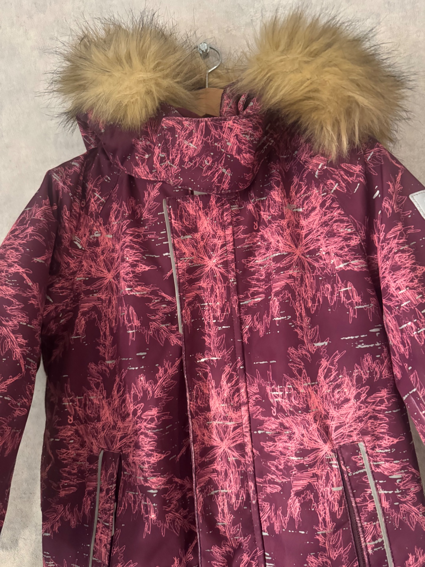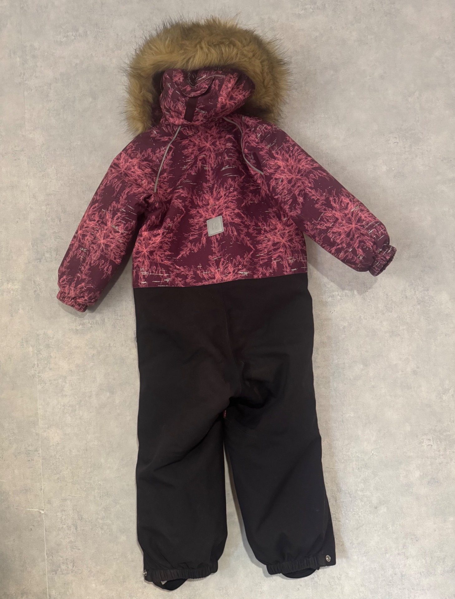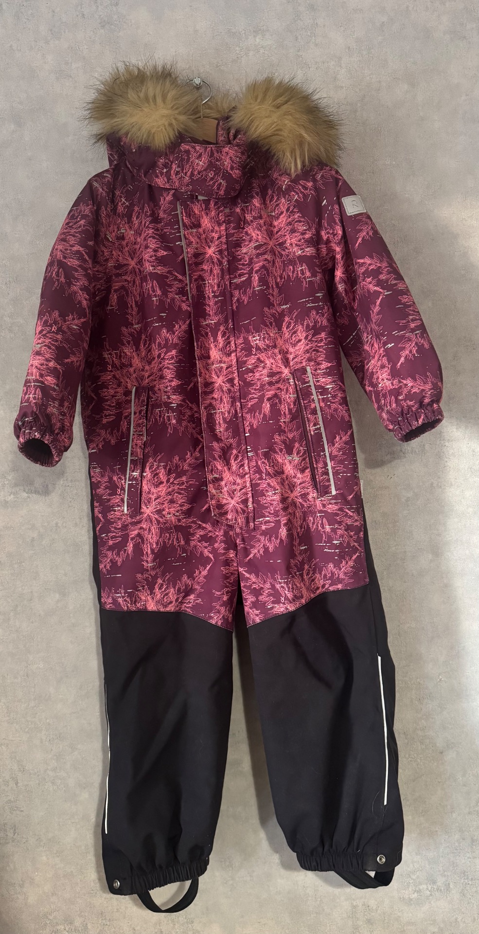 Erittäin hyväkuntoinen Reiman toppahaalari. Selvästi vähän käytetty, uudenkarhea puku. Vedenpitävät ominaisuudet tallella, testattu. Polvissa ja pepussa ei kulumaa. Suojaava suuri huppu karvareunuksella suojaa hyvin tuulelta. Jalkalenkit vaihdettu juuri uusiin. Hajusteeton.