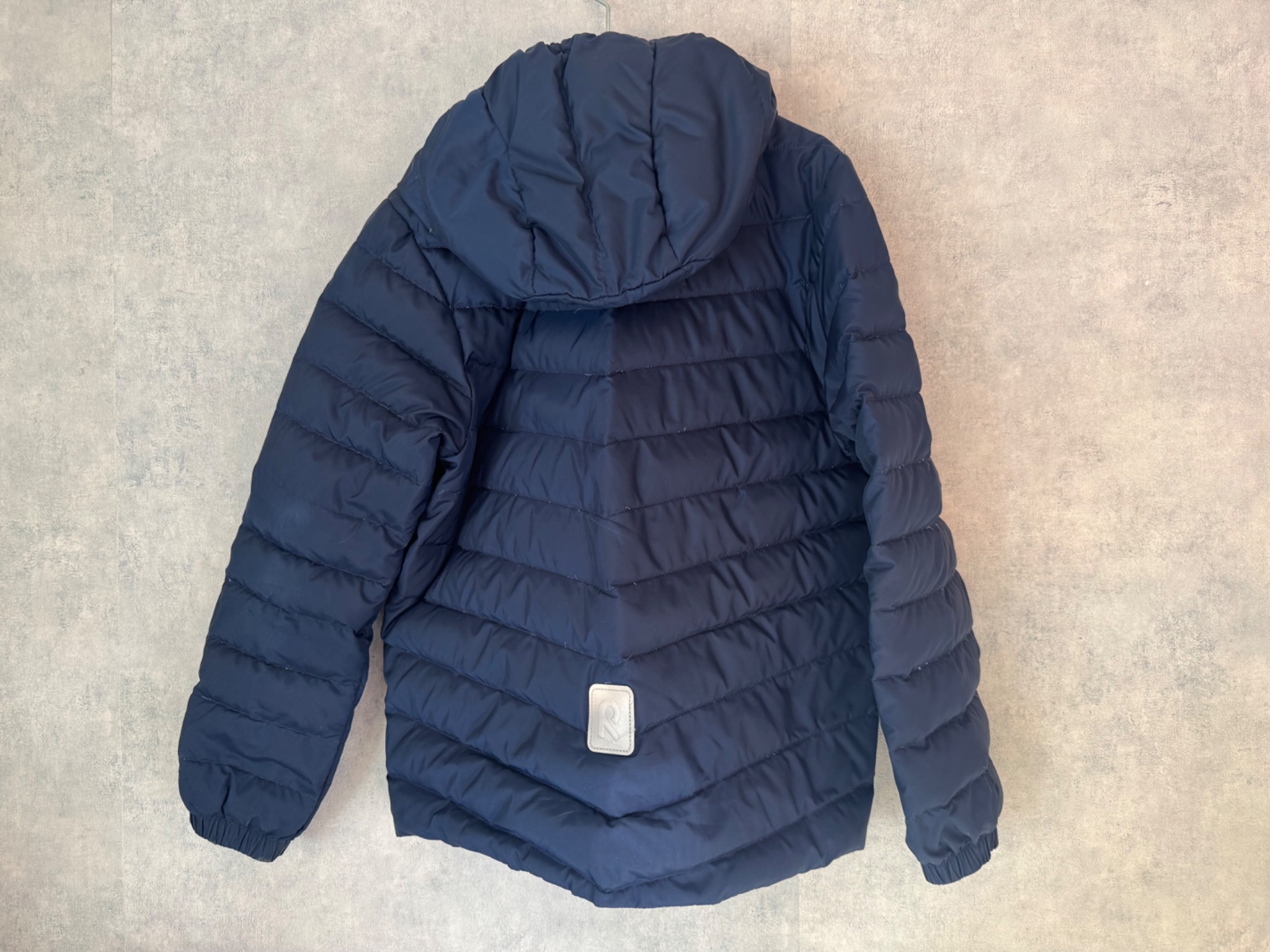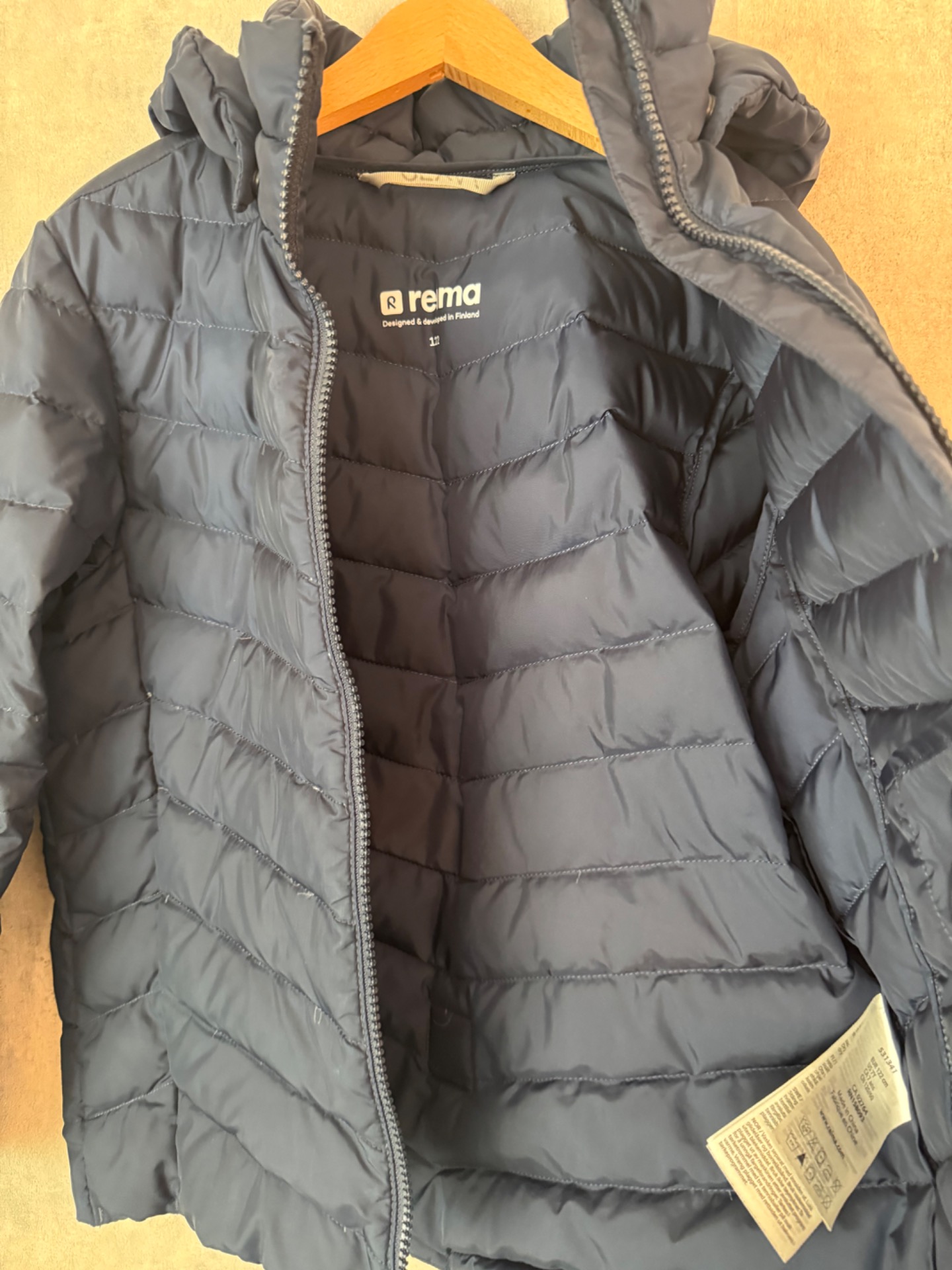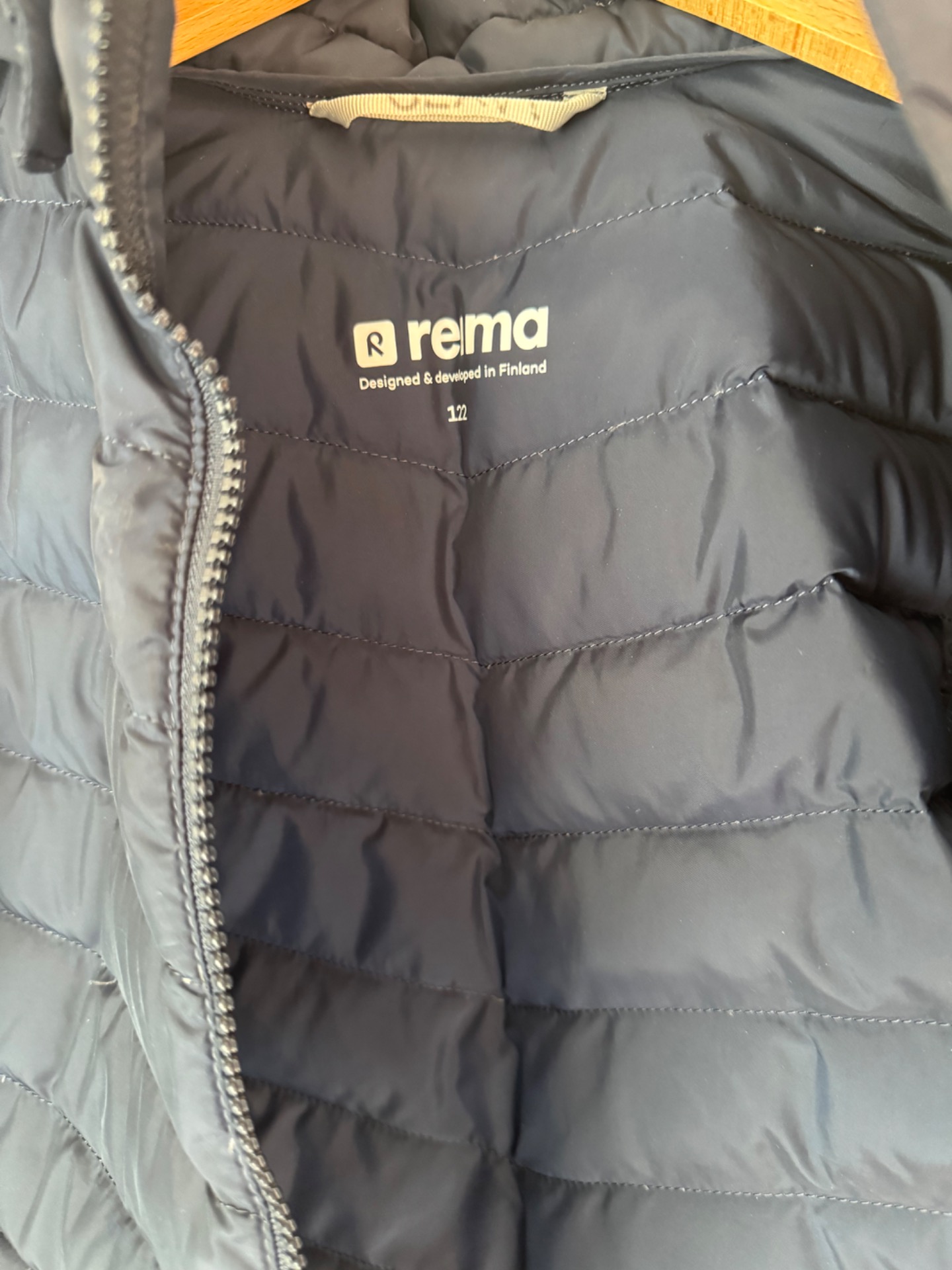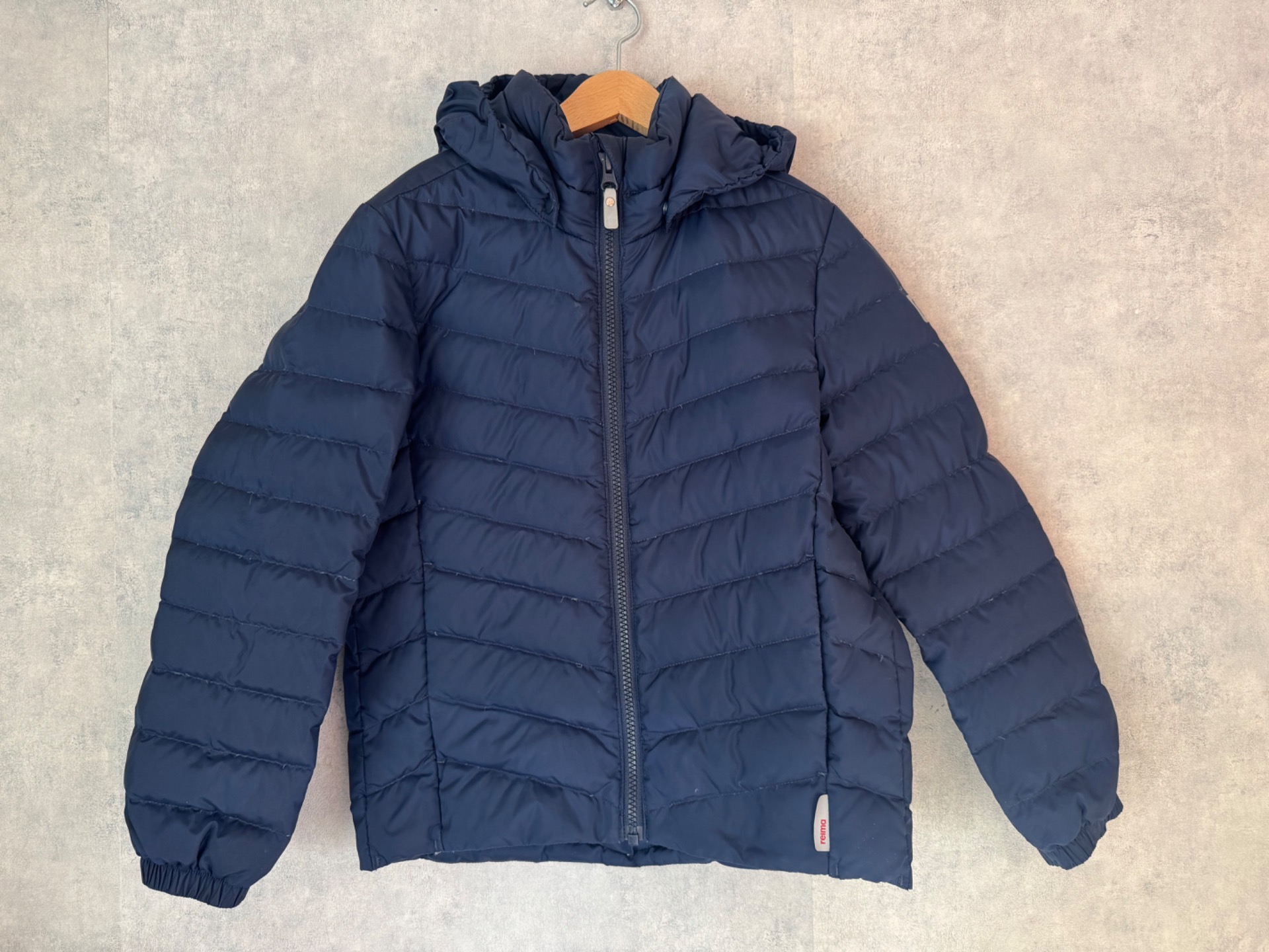 Erittäin hyväkuntoinen Reiman tummansininen untuvatakki. Ei kulumaa. Täyte 80% untuvaa. Mieto pesuaineen tuoksu.