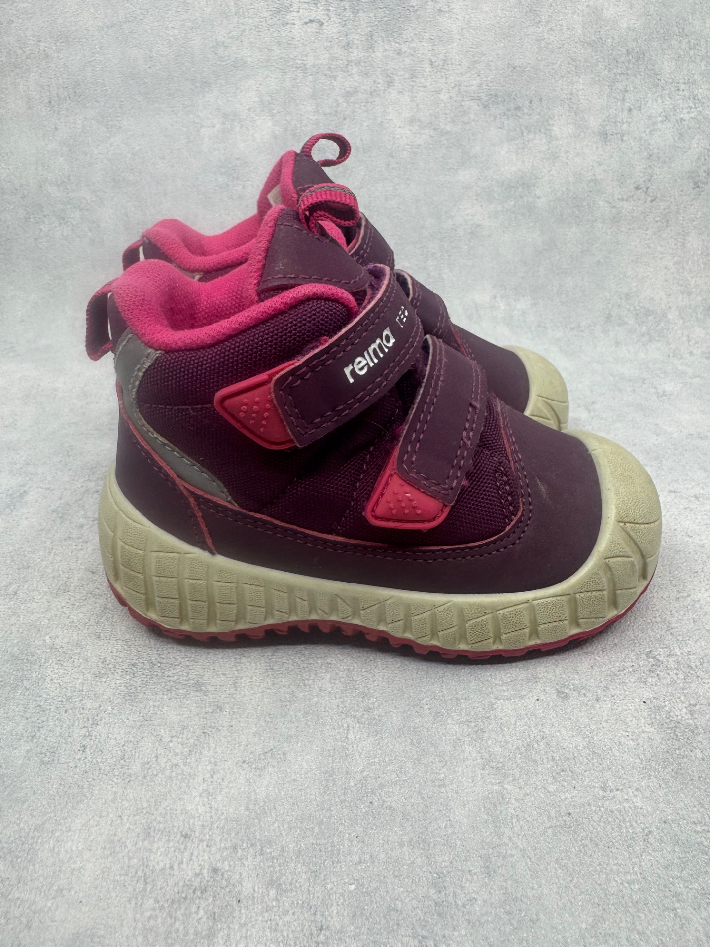 Erittäin hyväkuntoiset Reiman välikausikengät. Ei kulumaa, Tarrat pitää erinomaisesti ja kengät on testattu juoksevan veden alla vedenpitäviksi.