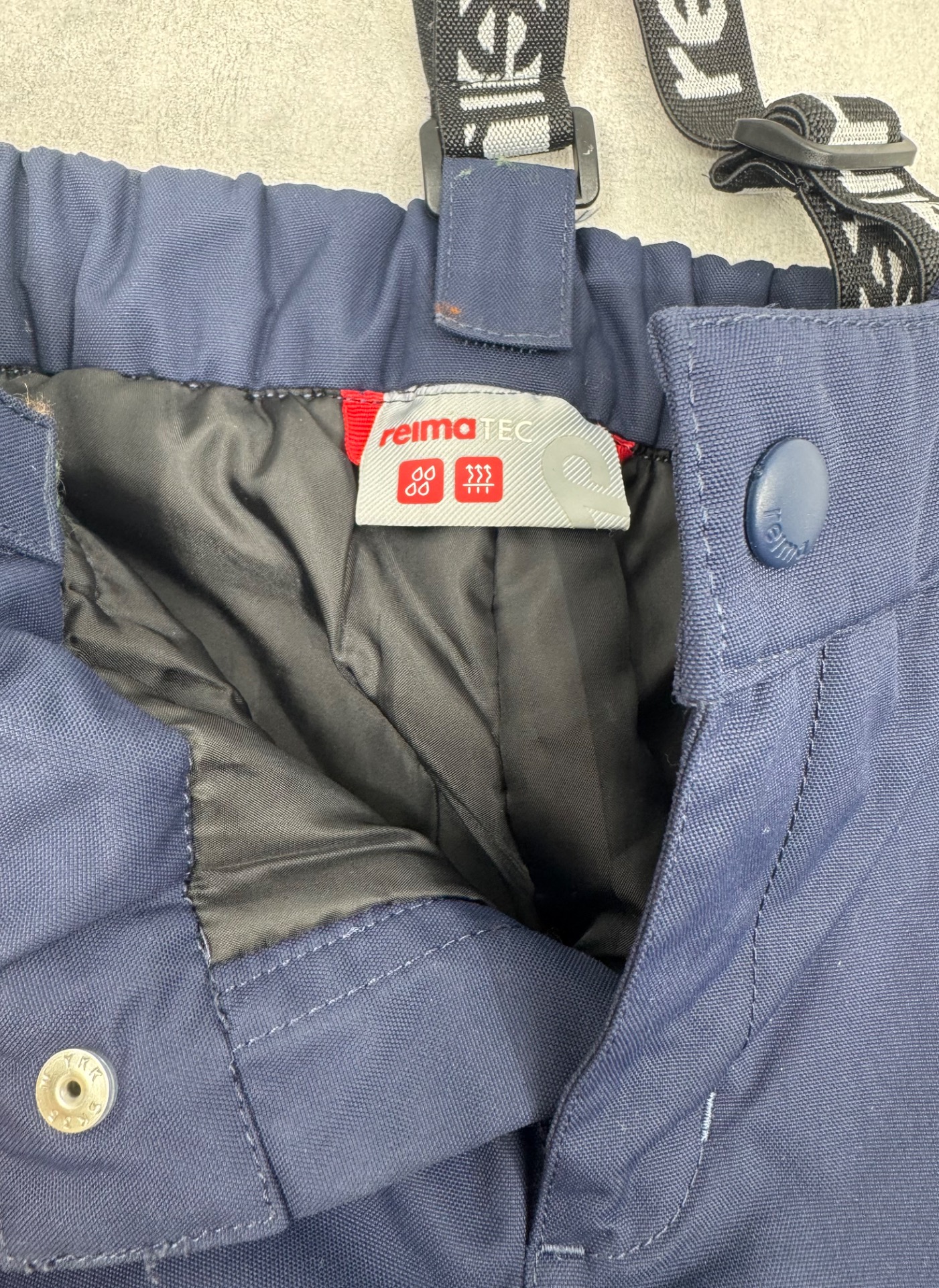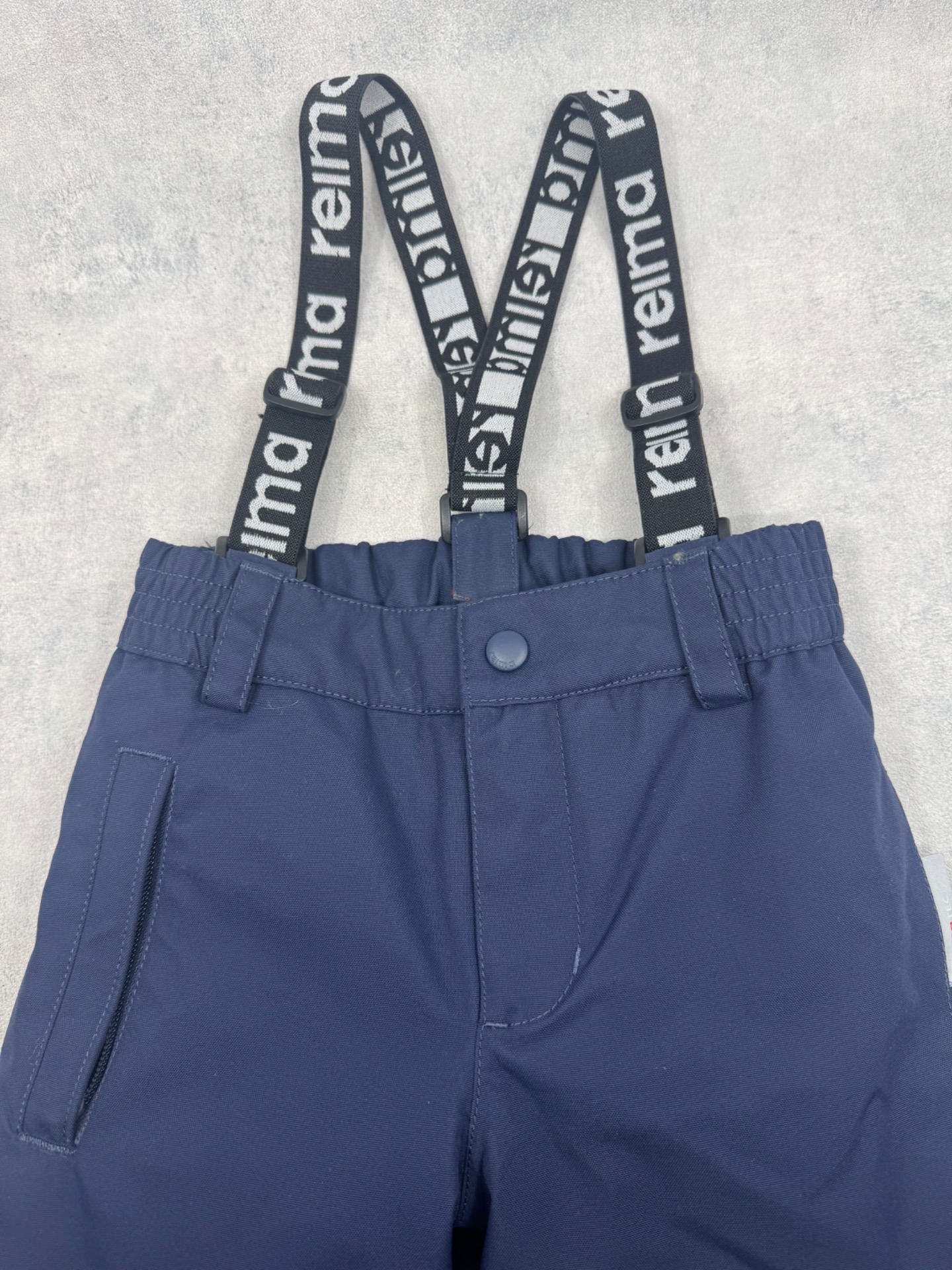 Erittäin hyväkuntoiset, lähes uudenveroiset Reiman tummansiniset toppahousut. Ei kulumaa tai käytönjälkeä. Vedenpitävät ominaisuudet tallella, testattu, kangas on vettähylkivää. Muhkeat ja lämpimät. Henkselit irroitettavissa. Lahkeissa lumilukot. Hajusteettomat.