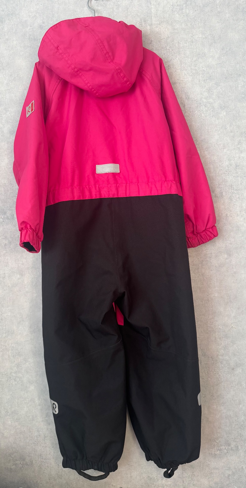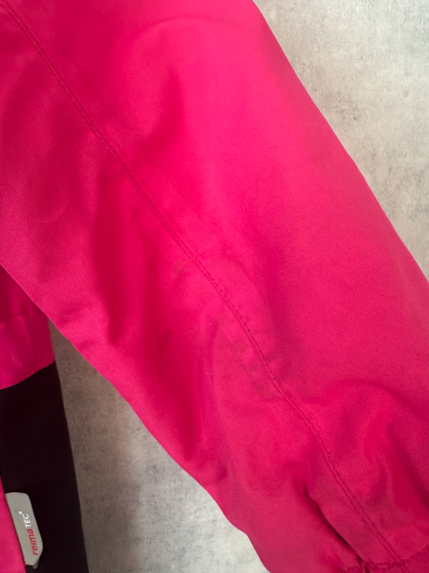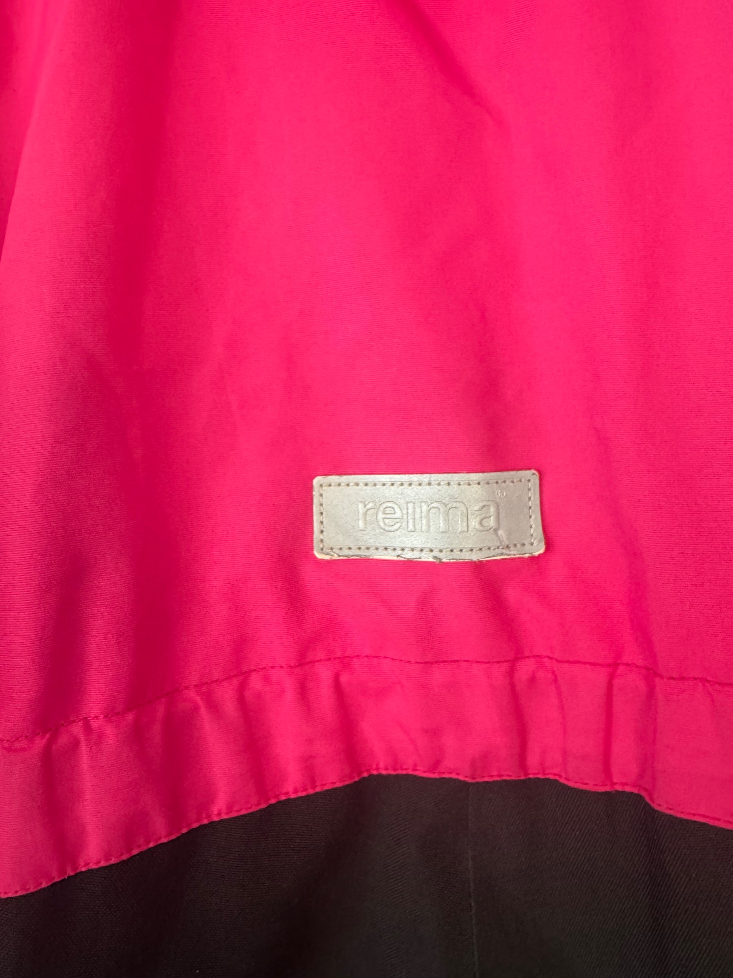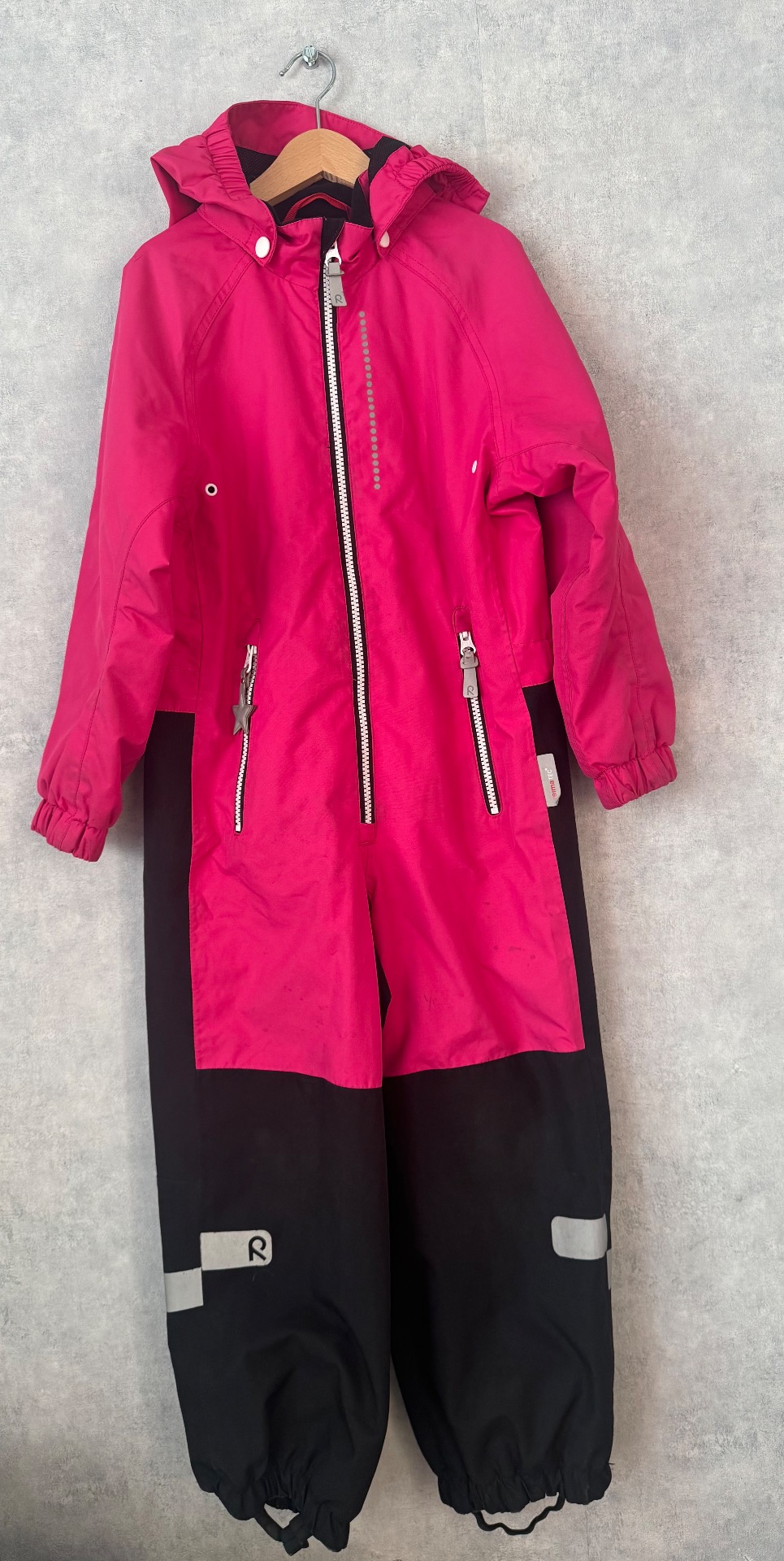 Hyväkuntoinen Reiman pinkki/musta välikausihaalari. Sisällä verkkovuori. Polvissa hieman pehmentymää, mutta oikein siistit. Aran värin vuoksi paikoin tummentumia kts. kuvat. Yleisilmeeltään haalari on lähes uudenveroinen. Silikoniset jalkalenkit. Hajusteeton.