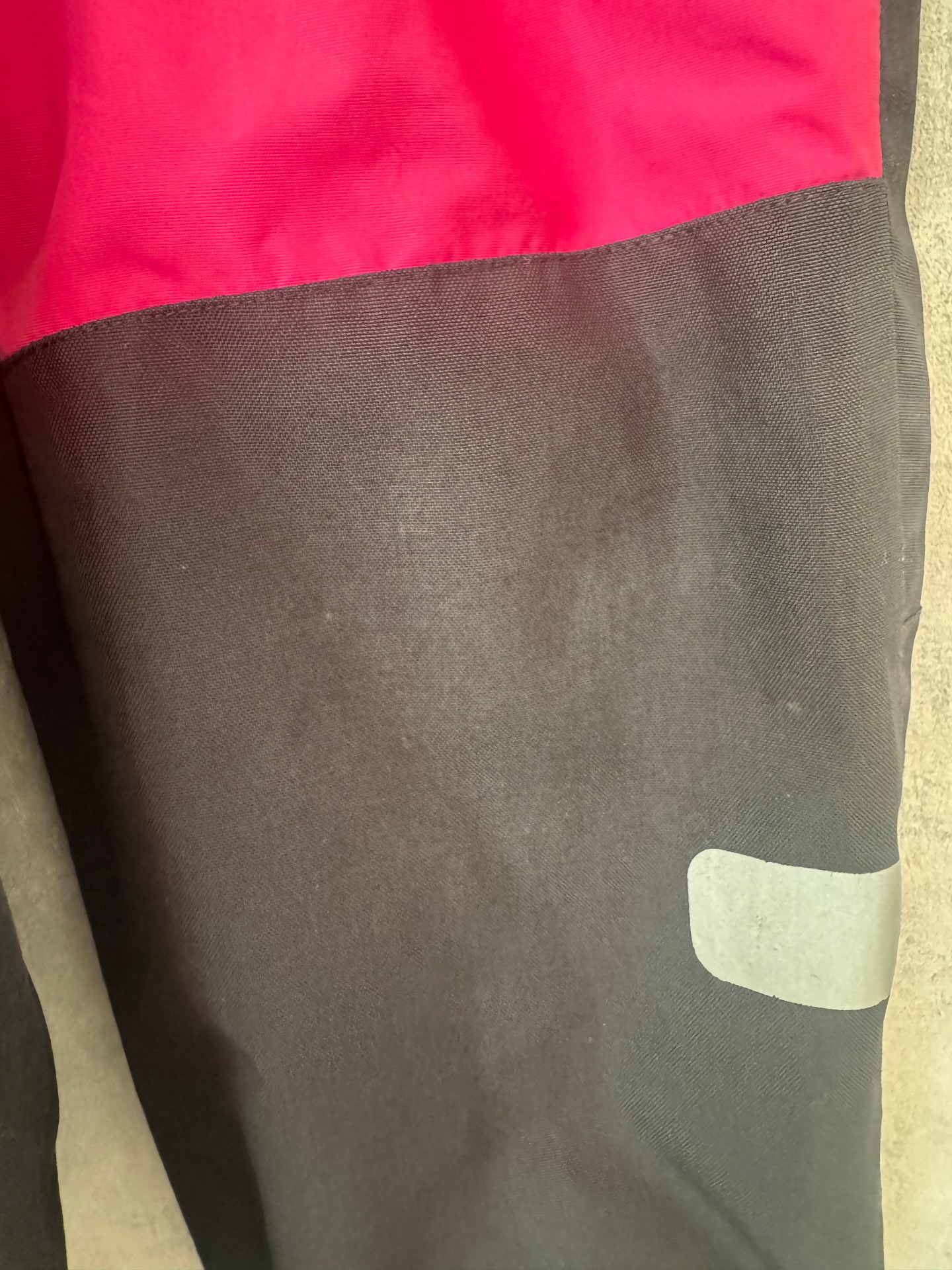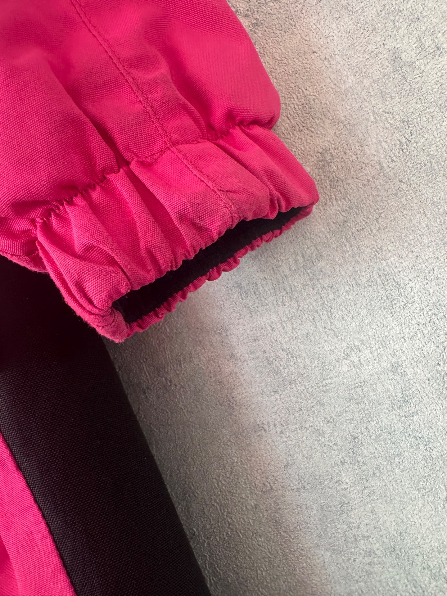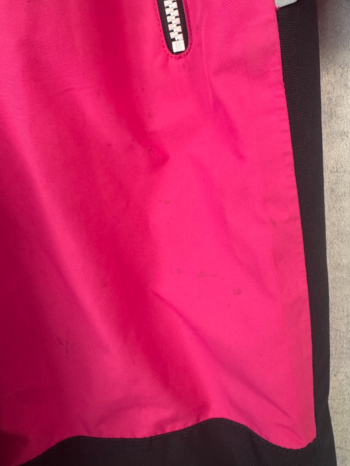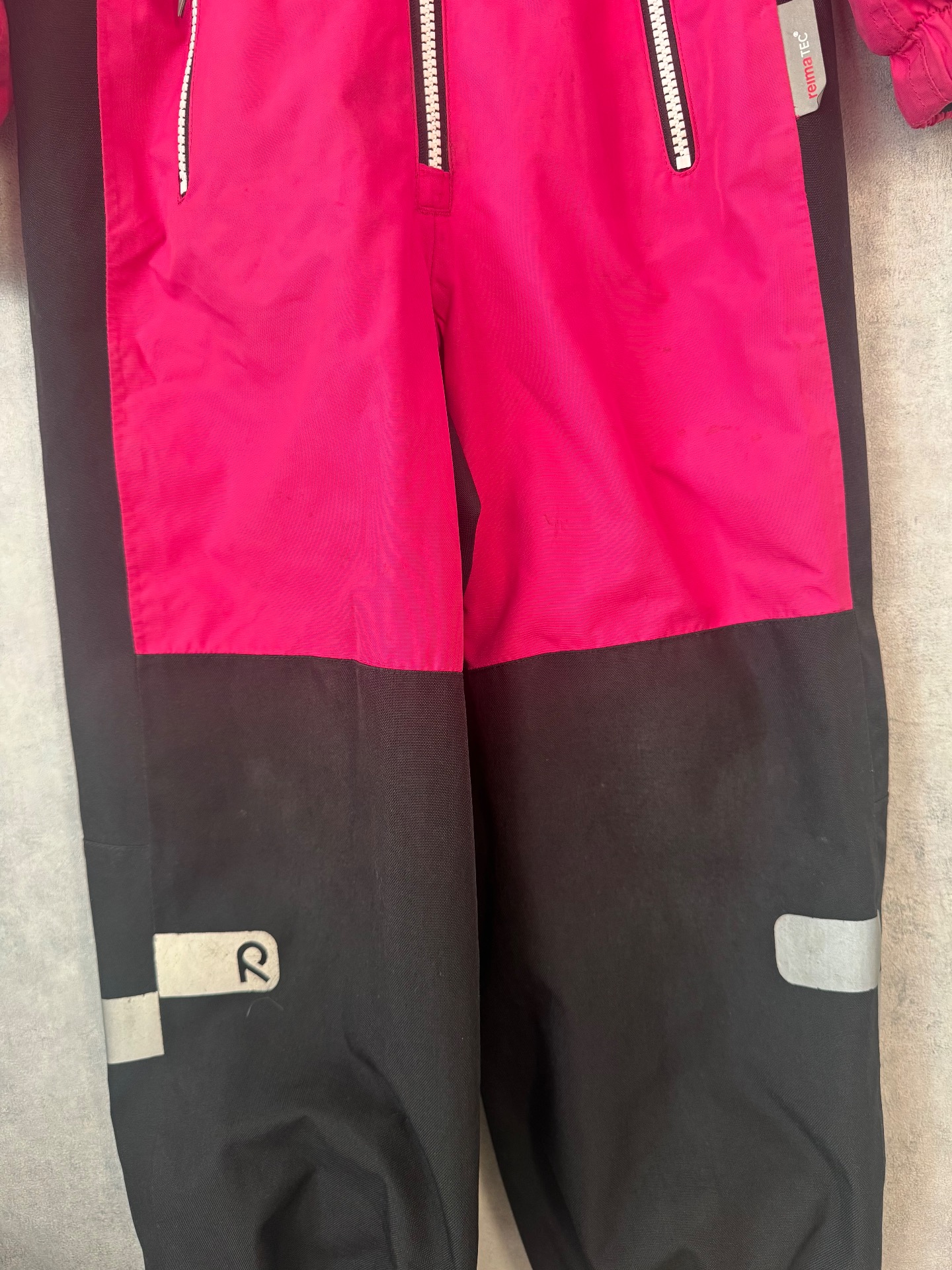 Hyväkuntoinen Reiman pinkki/musta välikausihaalari. Sisällä verkkovuori. Polvissa hieman pehmentymää, mutta oikein siistit. Aran värin vuoksi paikoin tummentumia kts. kuvat. Yleisilmeeltään haalari on lähes uudenveroinen. Silikoniset jalkalenkit. Hajusteeton.