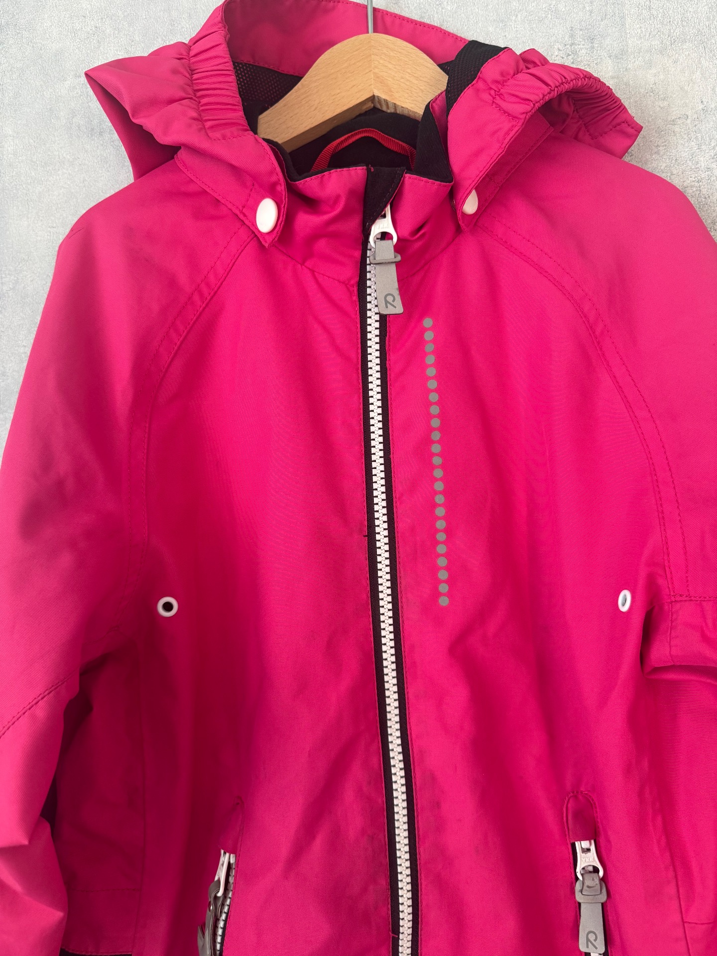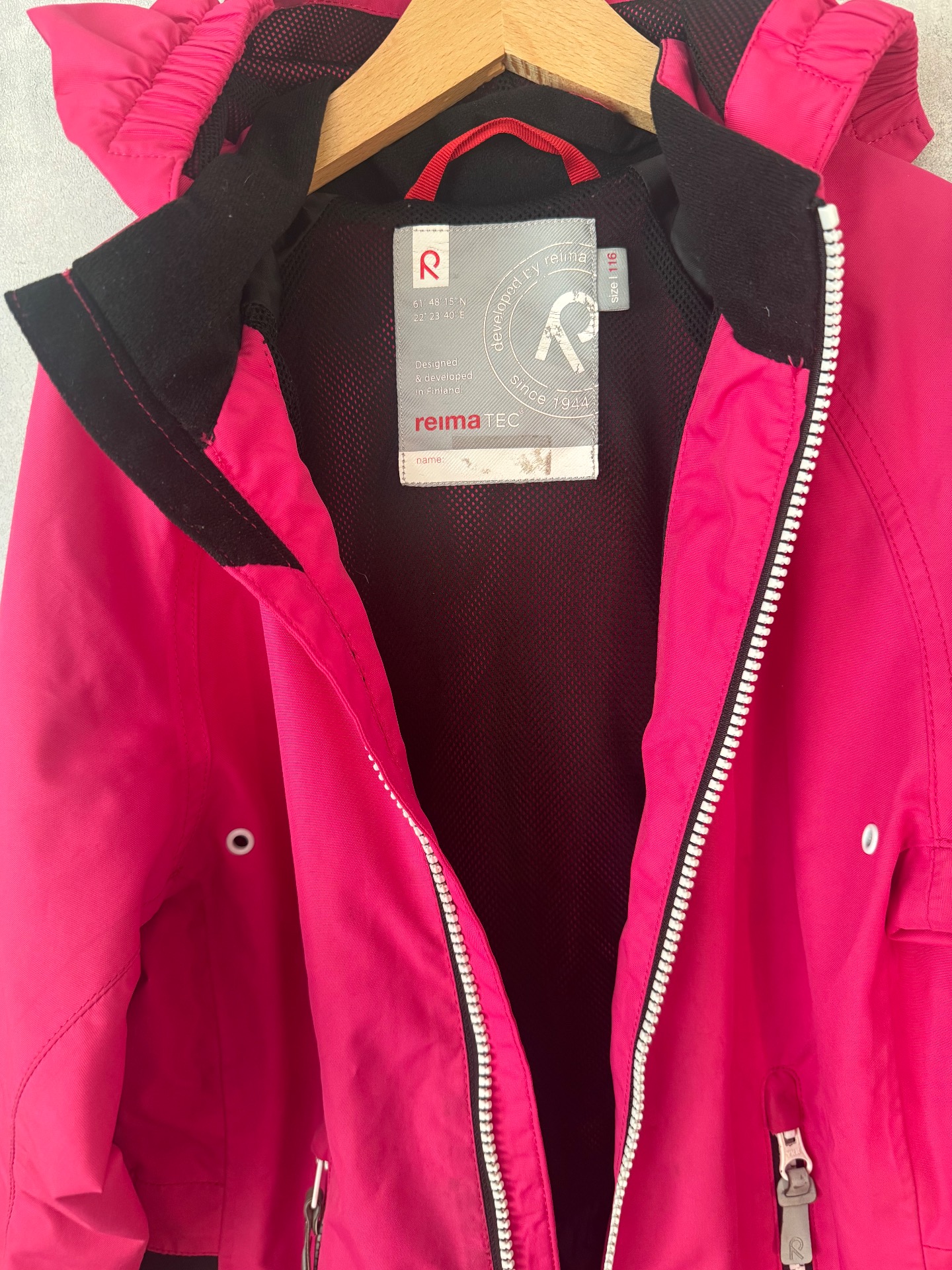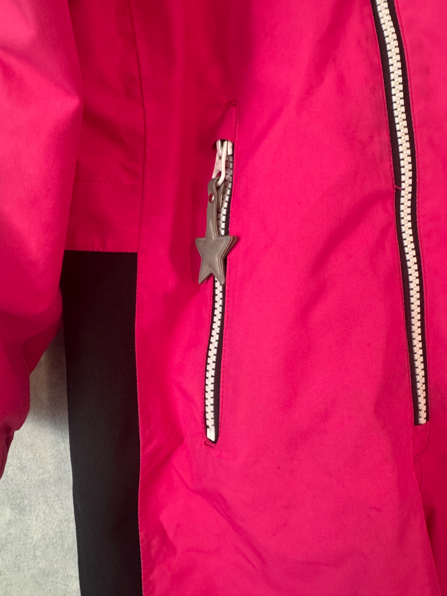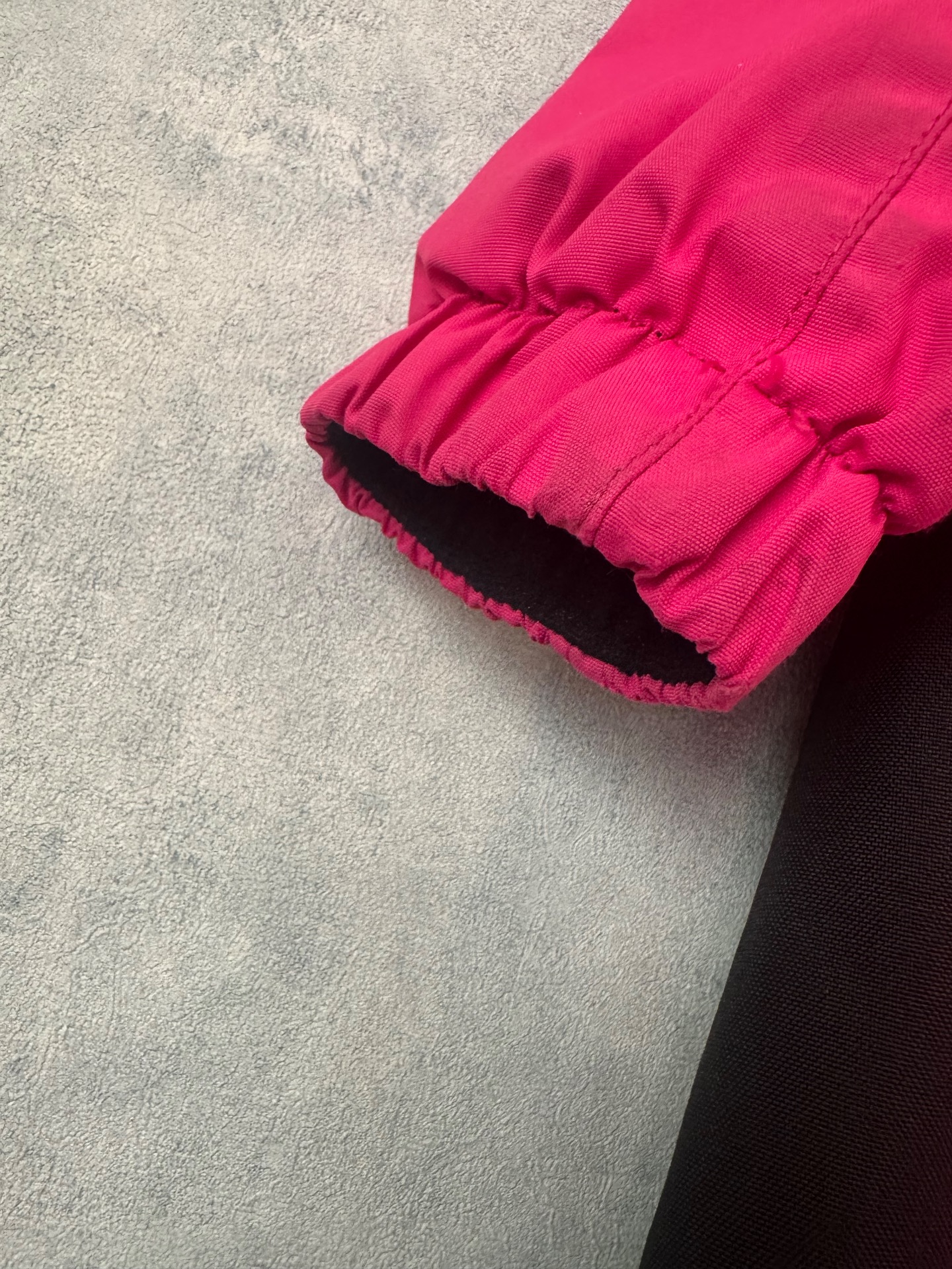 Hyväkuntoinen Reiman pinkki/musta välikausihaalari. Sisällä verkkovuori. Polvissa hieman pehmentymää, mutta oikein siistit. Aran värin vuoksi paikoin tummentumia kts. kuvat. Yleisilmeeltään haalari on lähes uudenveroinen. Silikoniset jalkalenkit. Hajusteeton.