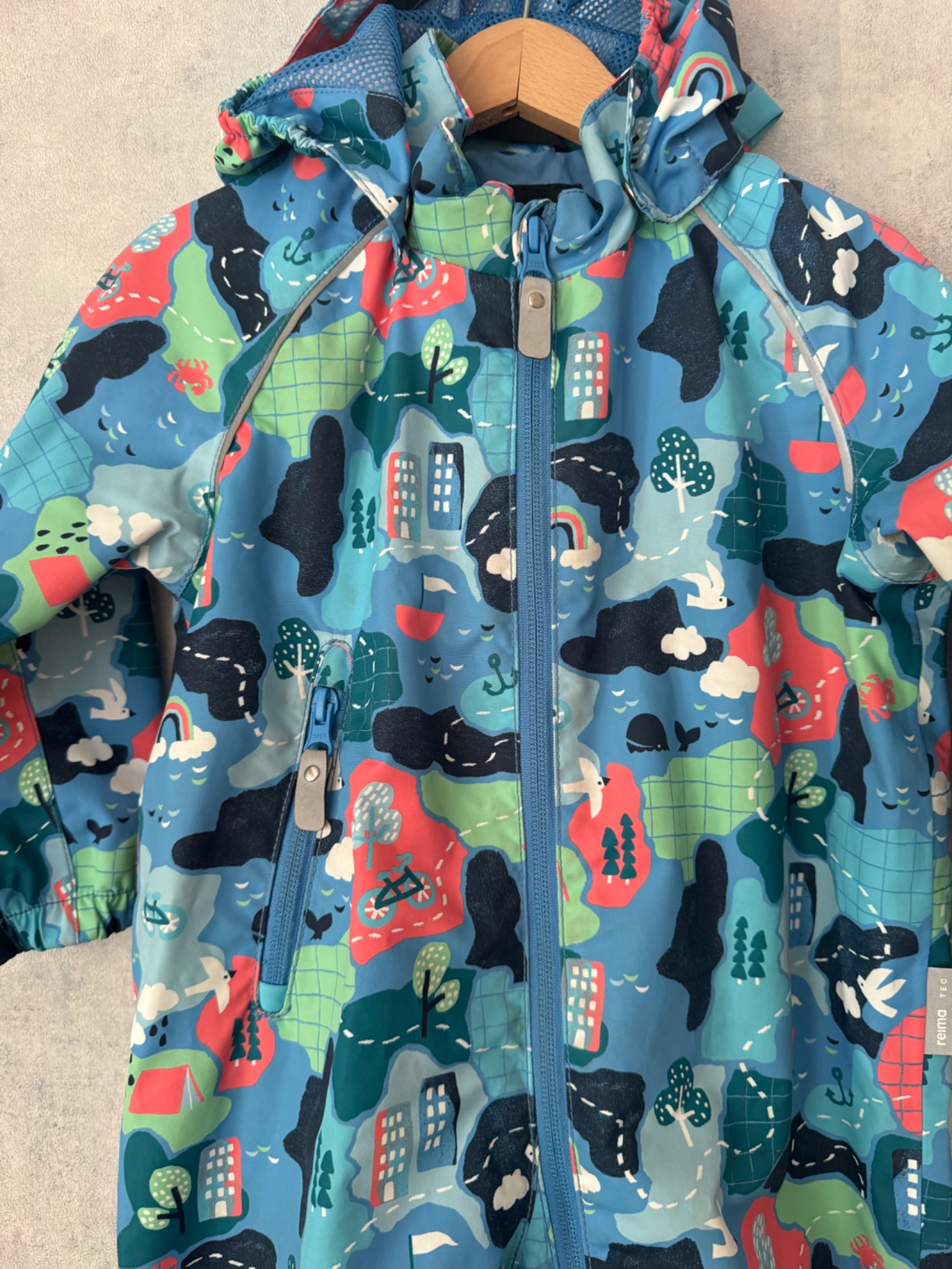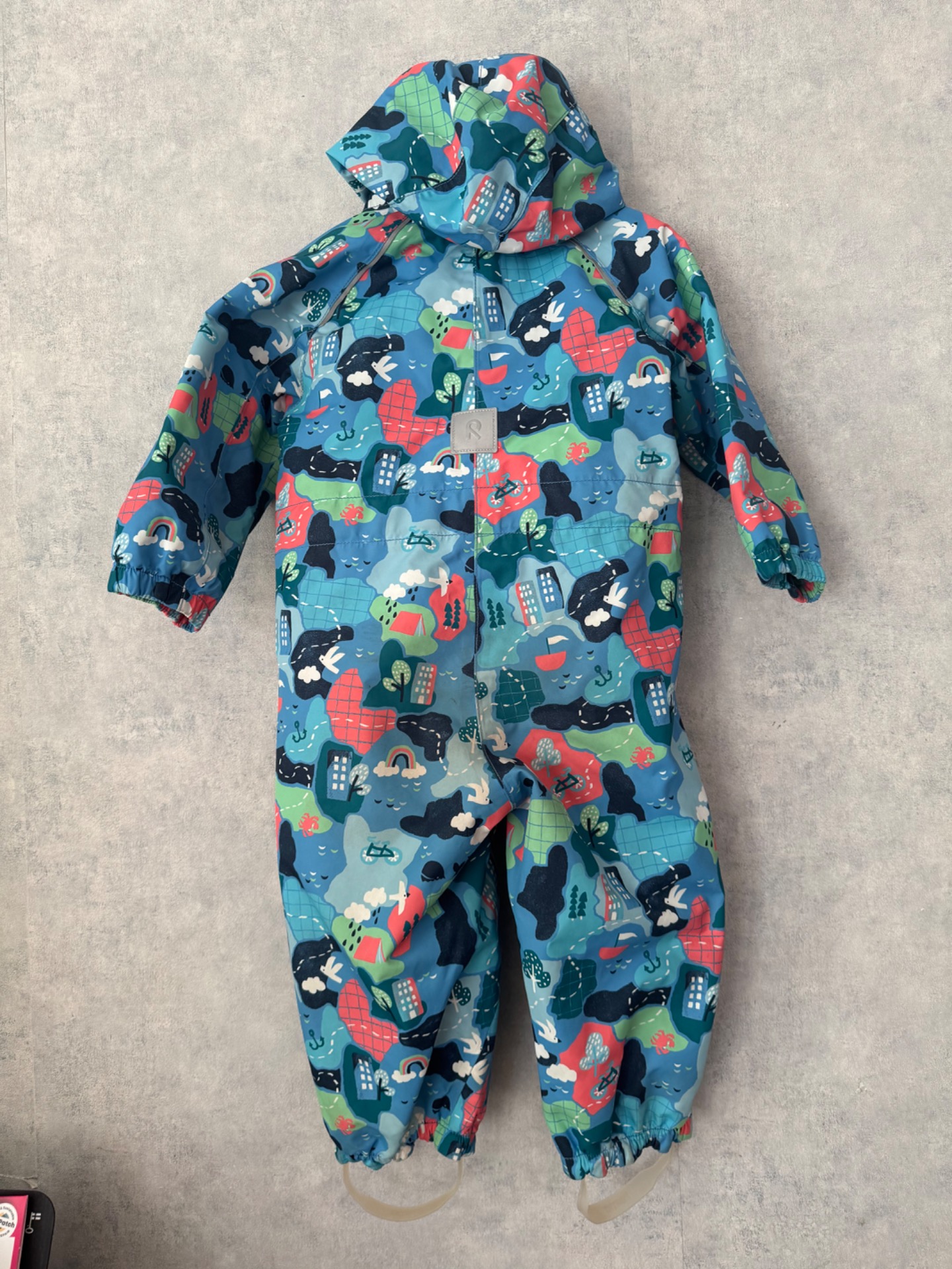 Erittäin hyväluntoinen Reiman välikausihaalari. Selvästi vähän käytetty, ei kulumaa. Aran värin vuoksi lahkeissa ja takamuksessa paikoin tummentumia kts. kuvat. Yleisilme puvussa erittäin siisti. Silikoniset jalkalenkit. Hajusteeton.