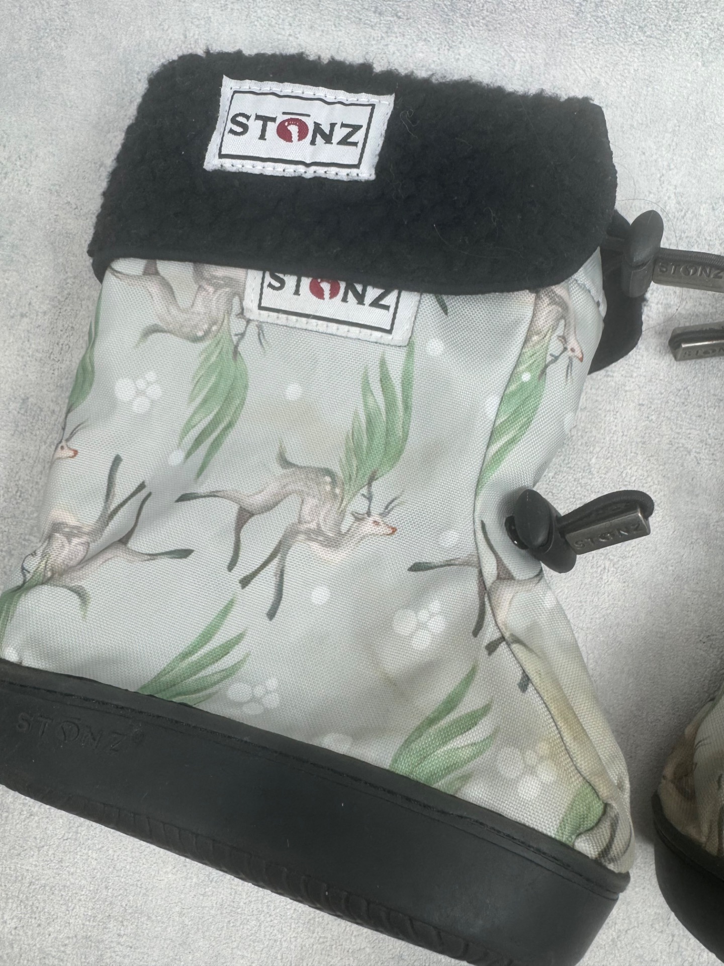 Erittäin hyväkuntoiset Stonzit sekä linerzit. Ei kulumaa. Kärjet hieman tummentuneet, mutta töppöset ovat muutoin lähes uudenveroisessa kunnossa ja selvästi vähän käytetyt.