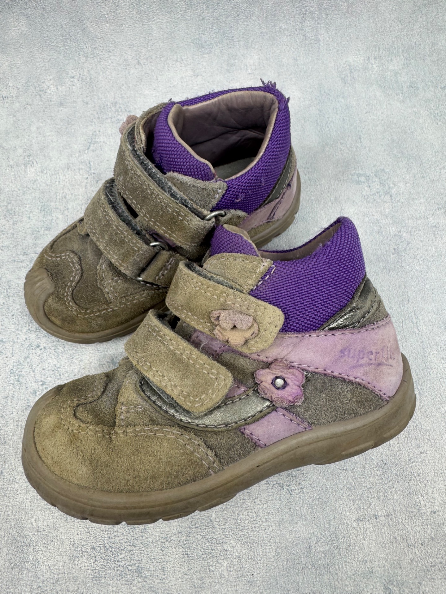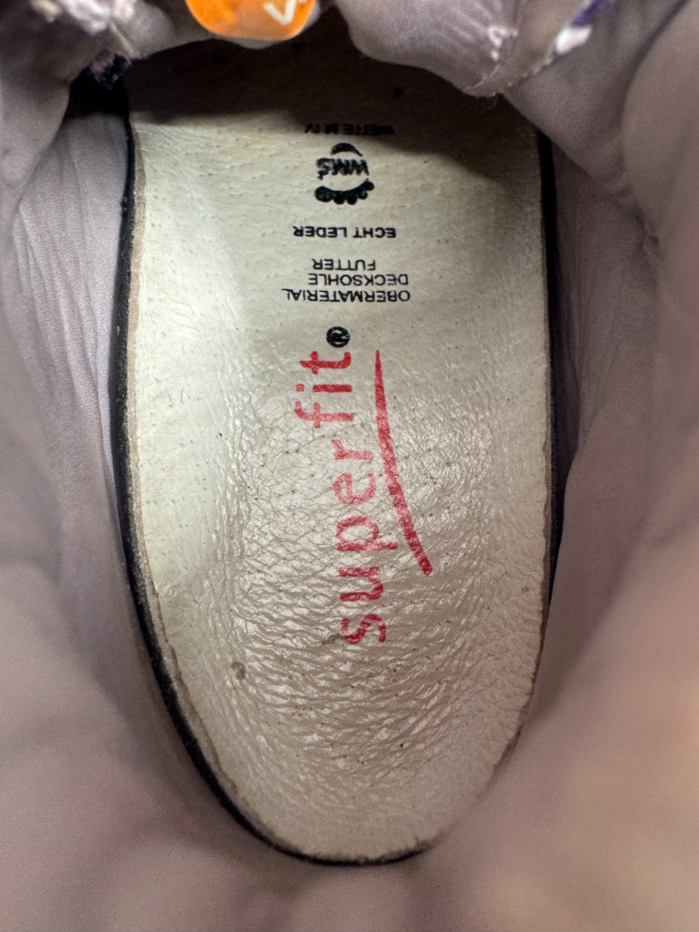 Hyväkuntoiset Superfitin kengät. Pientä käytönjälkeä, yleisilme oikein siisti. Tarrat pitää erinomaisesti.
