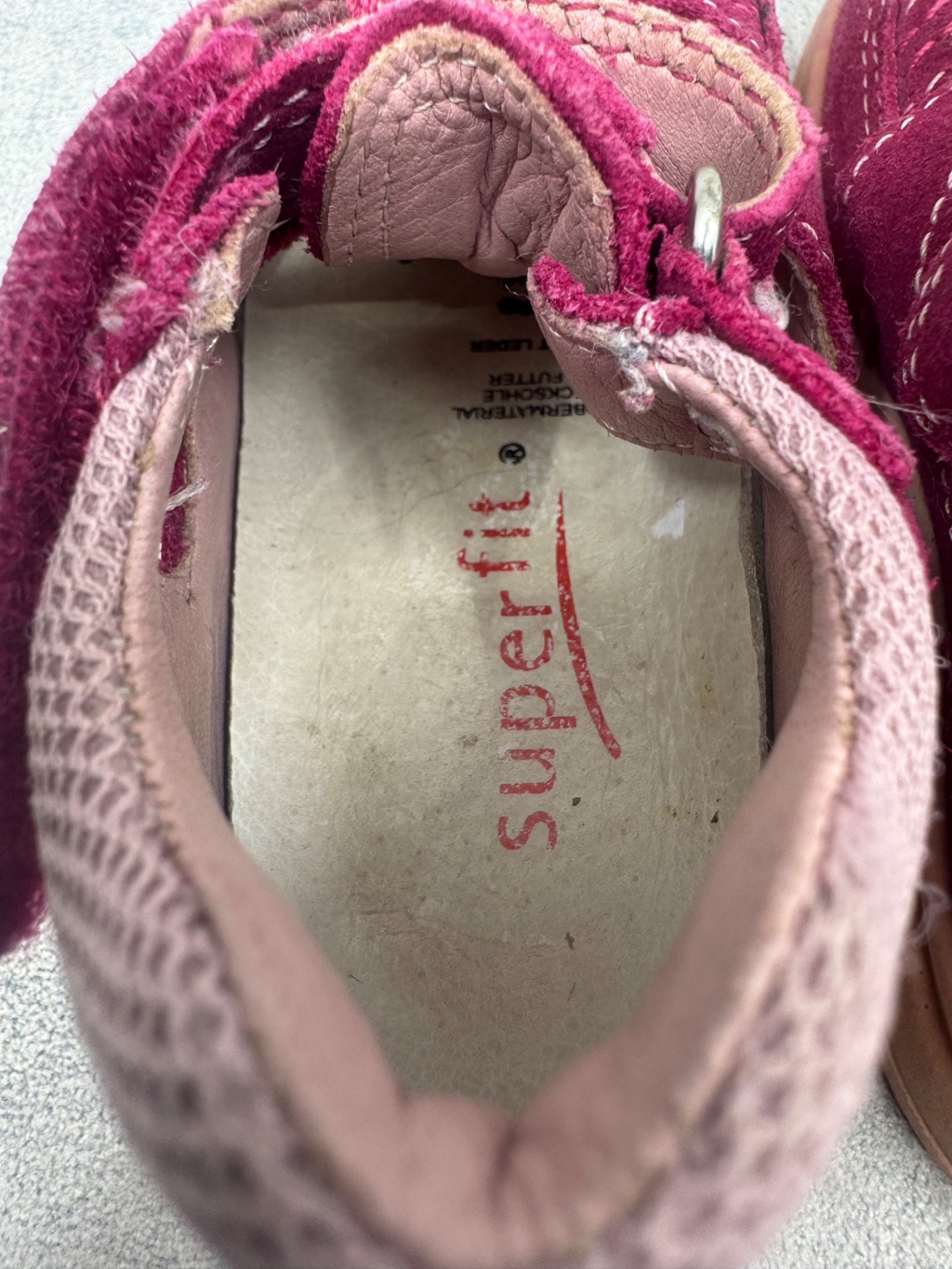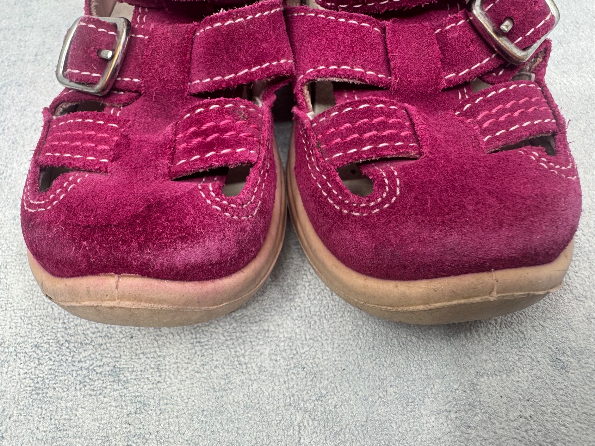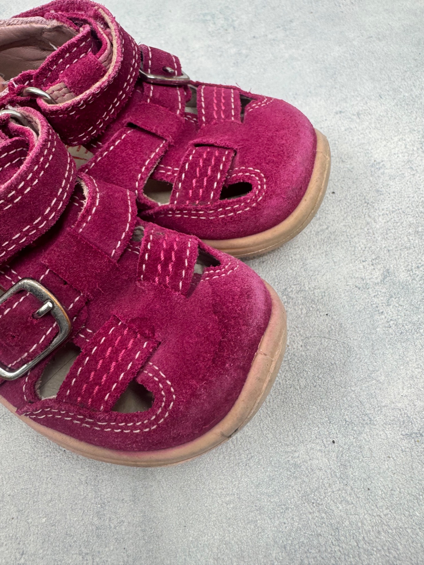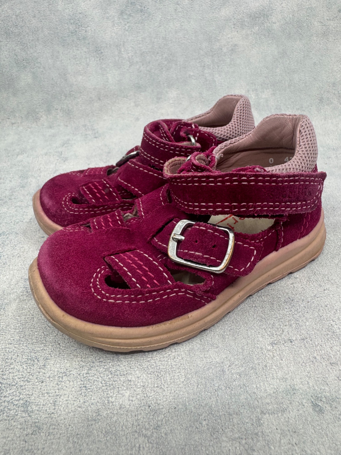 Hyväkuntoiset Superfitin sandaalit. Aavistus kulumaa kärjissä, mutta muutoin kengät ovat lähes uudenveroisessa kunnossa. Tarrat pitää erinomaisesti.