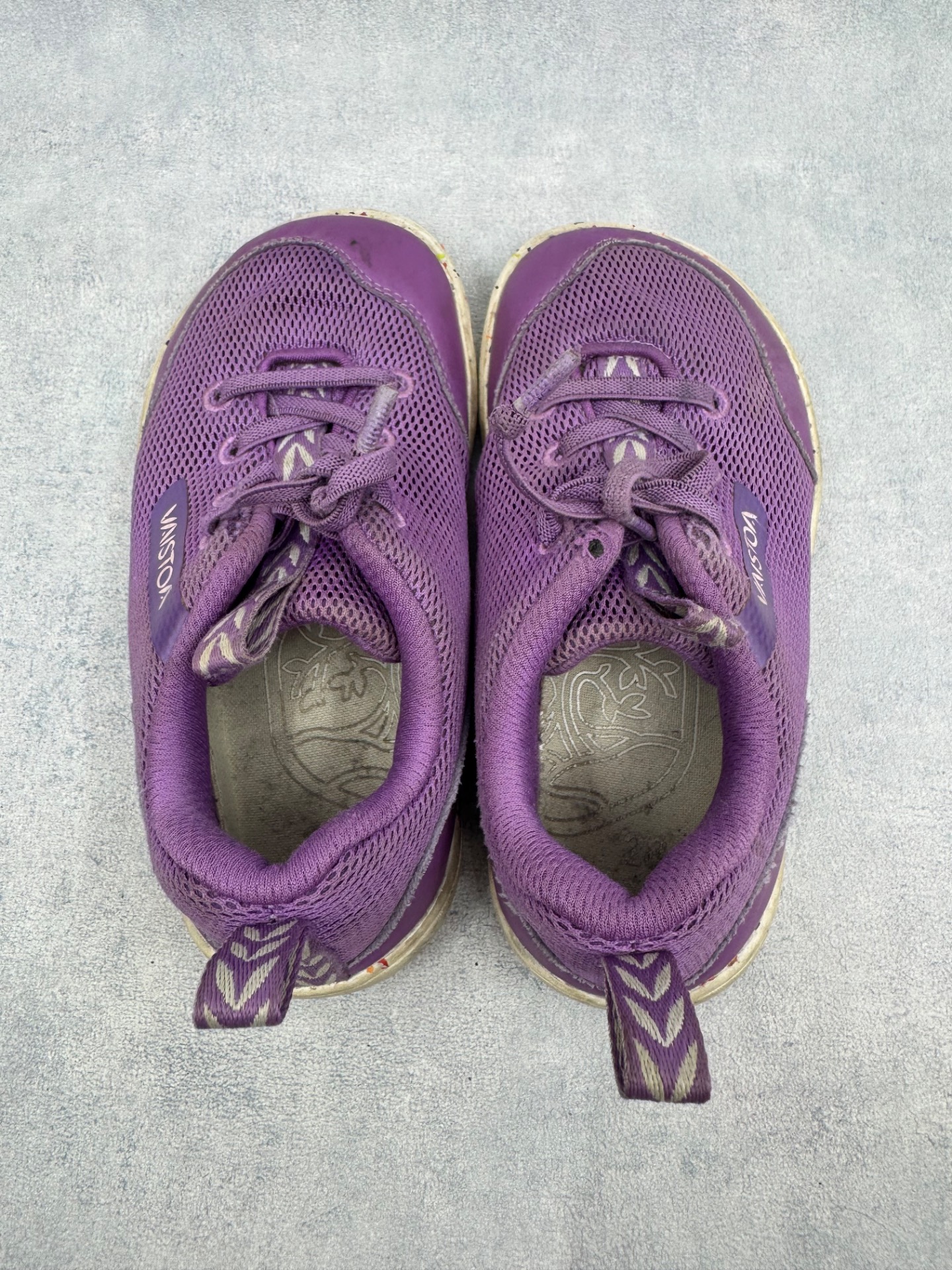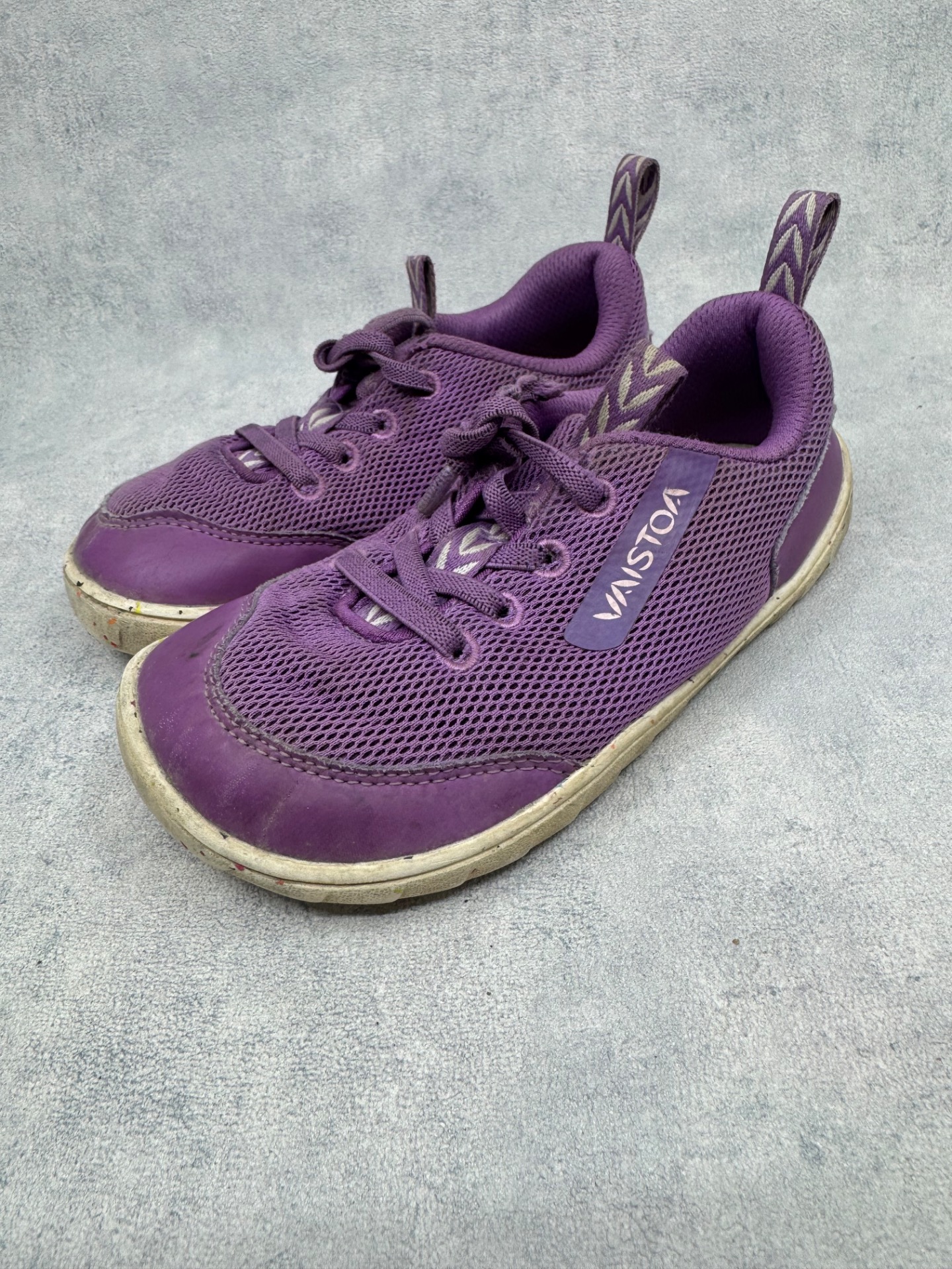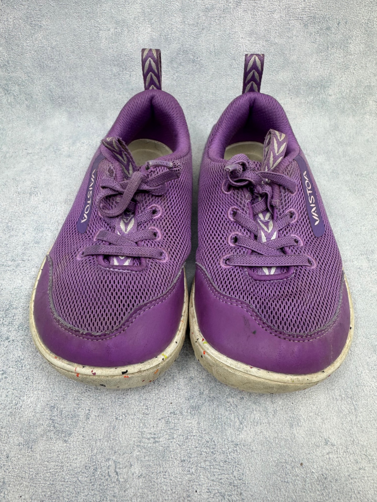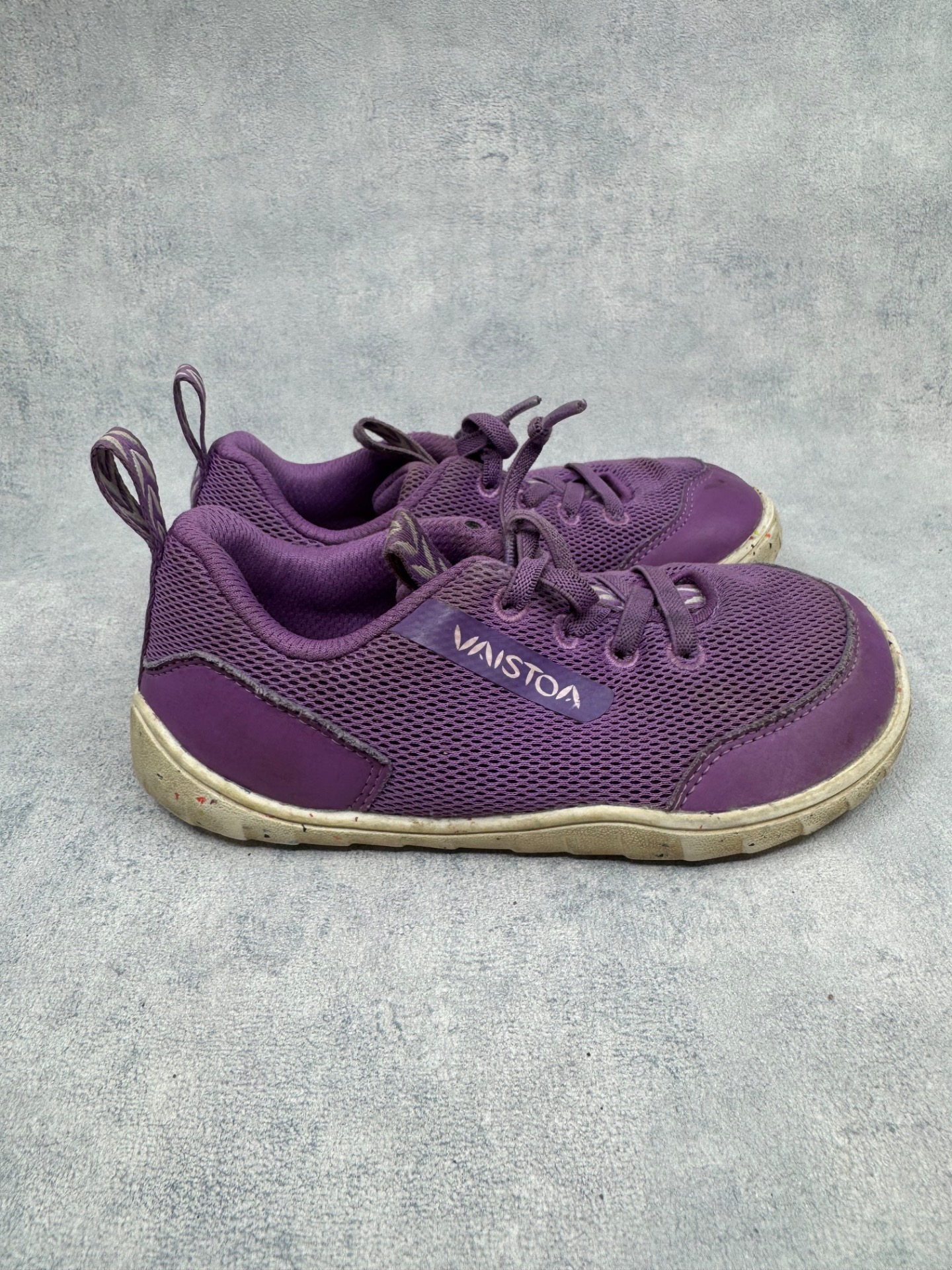 Erittäin hyväkuntoiset violetit Vaistoan paljasjalkakengät. Kengät ovat selvästi vähän käytetyt ja niissä on vain pientä käytönjälkeä.